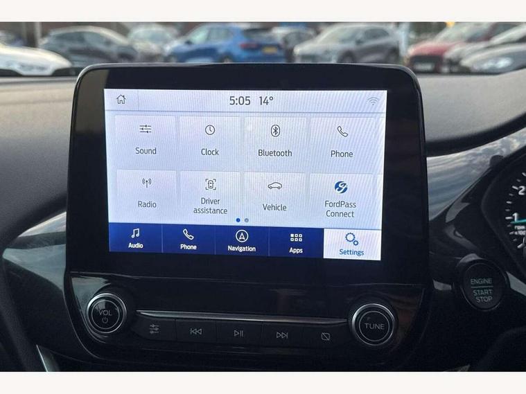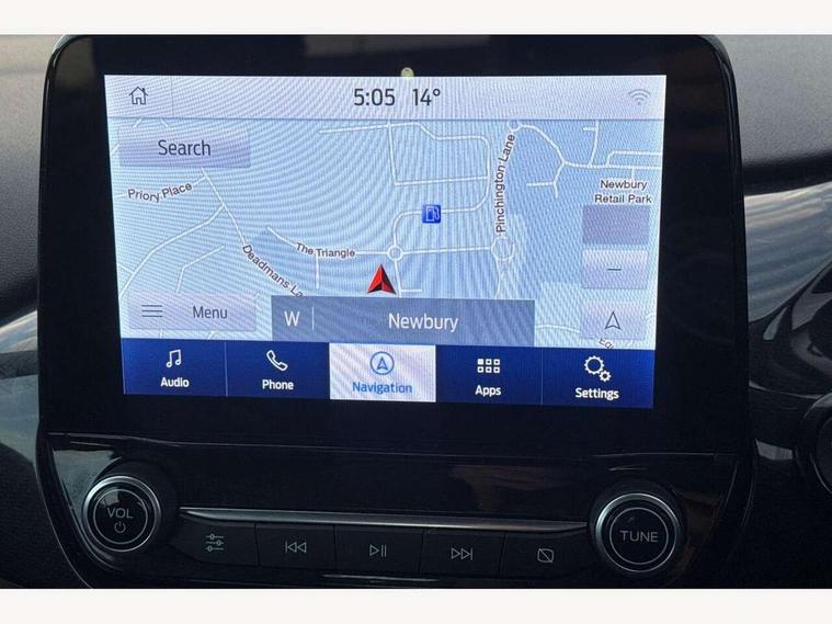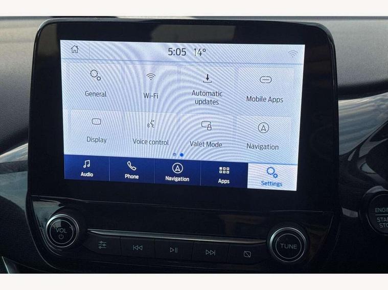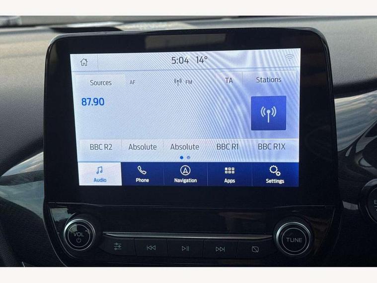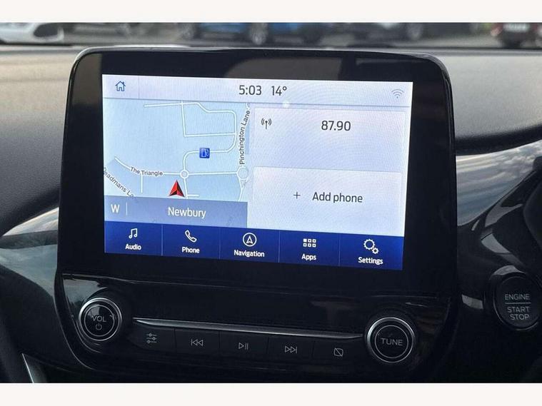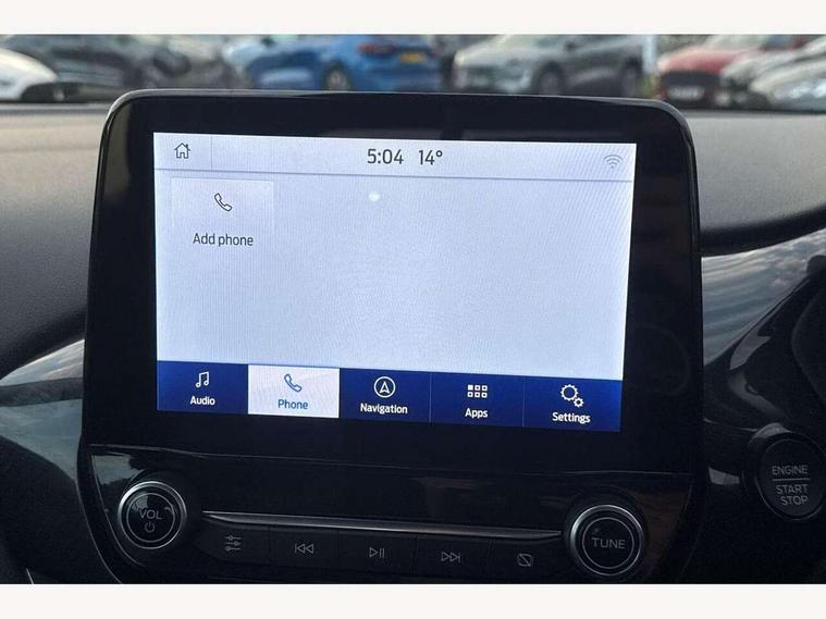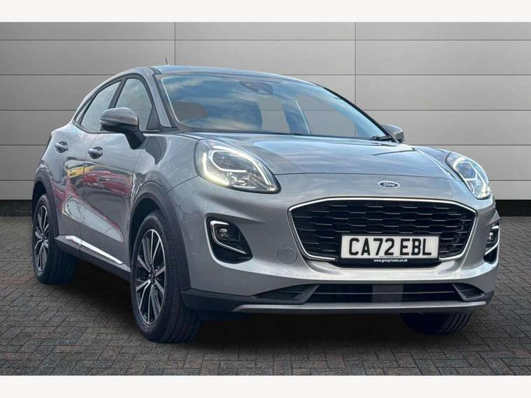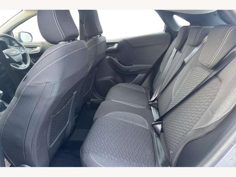 Driver impairment monitor, Emergency call service, Ford easy fuel, Lane keeping aid with lane departure warning, Power assist steering, Power start button, Rear parking sensor, Selectable drive modes(Normal, Eco, Sport, Slippery and Trail), Speed sign recognition, Standard suspension, Automatic headlights with auto high beam, Automatic rain sensing wipers, Body colour rear spoiler, LED rear lamps, Power foldable heated door mirrors with puddle lamps, Projector headlamps with LED day time running lights and front fog lamps, Quickclear heated windscreen, Rear side wing doors, Rear wiper, Third brake light, 3 seat bench in 2nd row, Centre console with armrest and stowage, Electronic automatic temperature control (EATC), Ford megabox extended bootspace, Front and rear head restraints, Front floor mats, Manual 2 way passenger seat adjustment, Manual 4 way driver seat adjust with lumbar adjustment, Sensico leather steering wheel/gear knob/handbrake, Single front passenger seat, Titanium cloth upholstery, Ford SYNC 3 navigation pack - Puma, 3 rear seatbelts, Child safety lock, Electronic stability control (ESC) and hill start assist, Pedestrian/cyclist detection & post-collision braking, Pre collision assist system, Tyre pressure monitoring system (TPMS), Thatcham alarm, 17" 10 spoke absolute black machined finish alloy wheel,