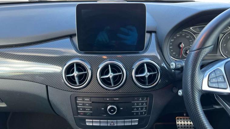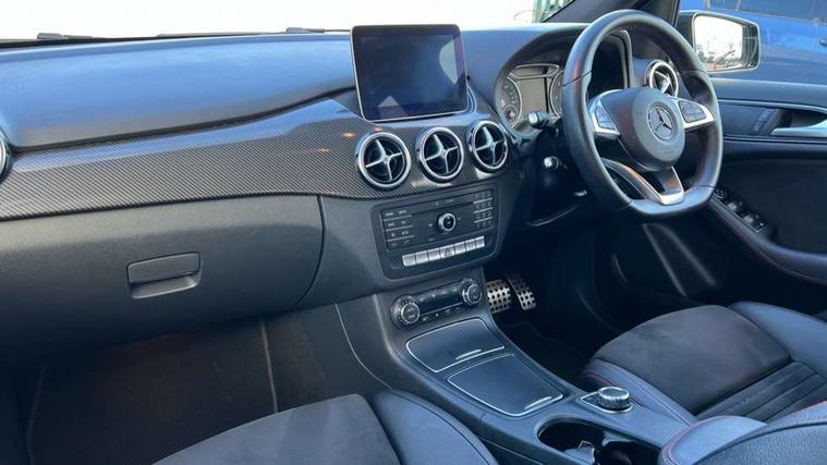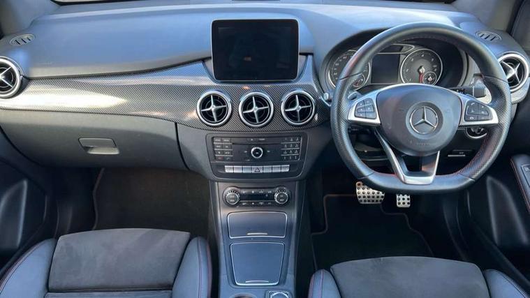 8" colour display screen, Attention assist, Collision prevention assist, Direct steering, Drive mode selector, External temperature gauge, Instrument cluster with 4.5-inch TFT colour display, Low fluid warning light, Mercedes-Benz emergency call, Multi function trip computer, Park assist pilot with front and rear park assist, Reversing camera, Service indicator (ASSYST PLUS), Smartphone integration with Apple CarPlay, Diesel particulate filter, Lowered suspension, Bluetooth audio streaming, USB port, Adaptive brake lights, Aluminium front door sills, AMG body styling, Auto dimming interior and driver's door mirror, Automatic headlamp activation, Body colour bumpers, Body colour door handles, Door sill plates with "Mercedes-Benz" lettering, Electric folding door mirrors, Electric front/rear windows/one touch operation, Electric heated + adjustable door mirrors, Heated rear window with timer, Heated windscreen wash system, High beam assist, LED daytime running lights, LED Headlights, LED rear lights, Rain sensor windscreen wipers, Rear wiper, Twin exhaust tailpipes with chrome finishers, 1/3 to 2/3 split folding rear seats, 12 colour Ambient lighting, 12V socket in rear centre console, 2 Position luggage floor, 3 spoke flat bottomed sports leather multi function steering wheel with red contrast stitching, AMG brushed stainless steel sports pedals with rubber studs, Auto Mercedes-Benz child seat recognition sensor, Black roof liner, Centre console with cupholders, Door centre panels in dinamica, Driver and passenger underseat storage box, Driver/front passenger seat height adjustment, Driver/passenger sunvisors and illuminated vanity mirrors, Dual zone automatic climate control, Footwell lights, Front headrests, Heated front seats, Height adjustable headrests, Height/reach adjustable steering column, Isofix rear child seat fastenings, Leather trimmed gearshift with chrome inserts, Load compartment cover, Luggage compartment lighting, Reading lights, Rear armrest with 2 cupholders and load through provision, Rear headrests, Red stitching on steering wheel, Seat cushion angle adjustment, Sliding front centre armrest with storage compartment, Sliding rear seats, Storage compartment in centre console, Storage compartment in front doors, 5 x 3 point seatbelts, ABS with Brake Assist, Brake calipers with Mercedes-Benz lettering + perforated brake discs, Child proof door locks, Crash responsive emergency lighting, Drivers knee airbag, Dual stage driver/passenger airbags, Electronic parking brake, ESP with ASR, Front and rear seatbelt reminder, Front passenger airbag deactivation, Front seat side impact airbags, Hill start assist, Seat occupancy sensor, Tyre pressure monitoring system, Warning triangle and first aid kit, Window airbags, Alarm system/interior protection/immobiliser, Locking wheel bolts, Remote central locking, Air vents in Silver-chrome, Carbon fibre dash trim, Tirefit sealant with electric air pump,