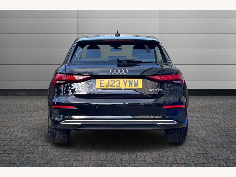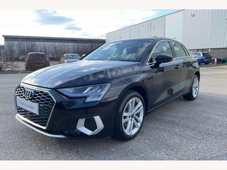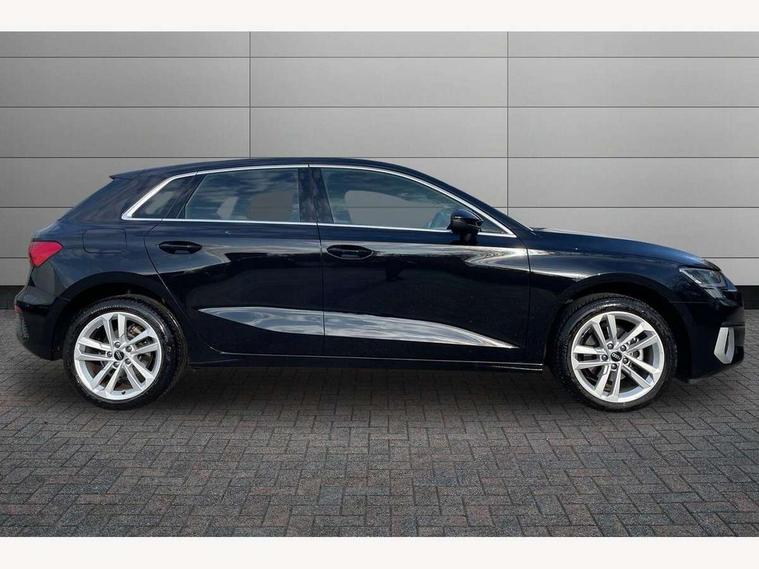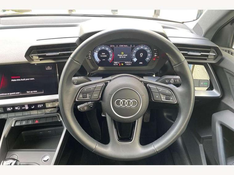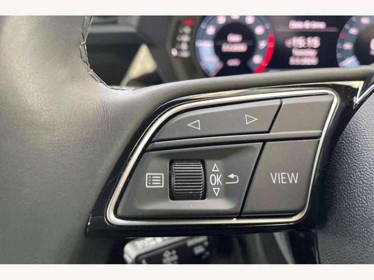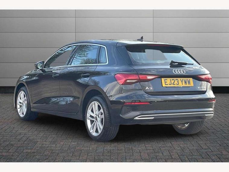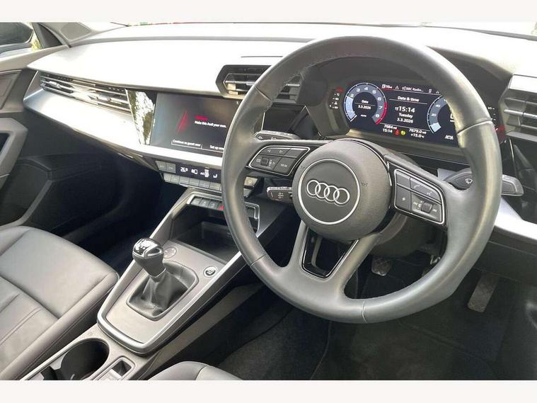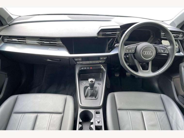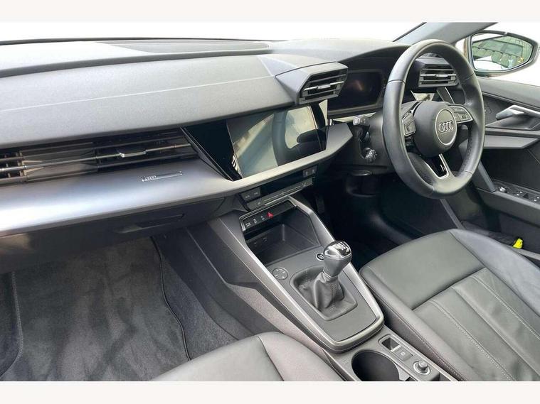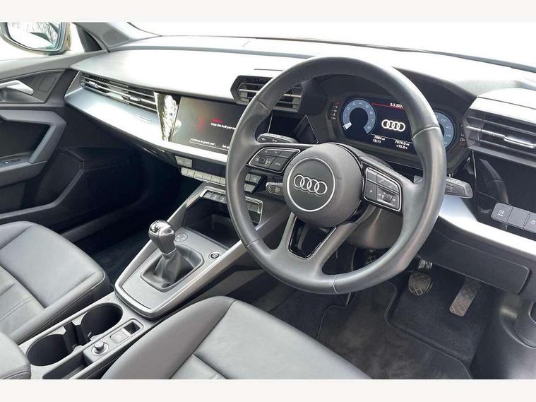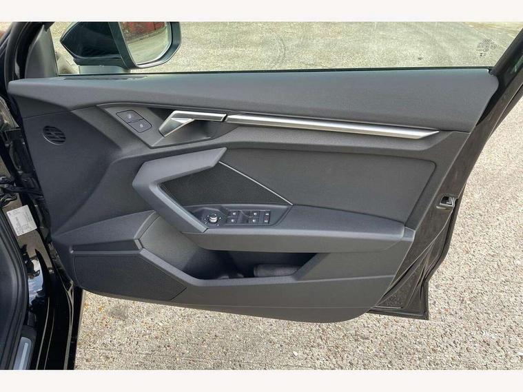 Audi drive select (Auto, Comfort, Dynamic and Individual), Audi smartphone interface, Audi Virtual Cockpit - 10.25" digital and colour instrument cluster, Automatic start/stop system with recuperation, Bluetooth interface, Camera based traffic sign recognition, Collision avoidance assistant, Cruise control, e-Call (emergency call), Electromechanical power speed sensitive steering, Lane departure warning system, MMI Navigation Plus with high resolution 10.1" colour touch screen display, Rear parking sensors, Service indicator, Trip computer, Voice control system with natural language interaction, Standard suspension, 2xUSB-C connection with data and charging functions, 6 passive loudspeakers, DAB Digital radio, 3rd brake light, Acoustic glass windscreen, Aluminium window trim, Auto dimming frameless rear view mirror, Body colour exterior mirrors, Body colour roof spoiler, Electrically adjustable/heated/folding/auto dimming door mirrors with integrated LED indications + kerb view function for passenger side, Front electric windows, LED daytime running lights, LED headlights and halogen rear lights, Light and rain sensors, Rear electric windows, Rear side wing doors, Rear window, rear door windows and rear side windows in clear glass, Rear wiper, 12V socket and storage compartment in front centre console, 3 seat bench in 2nd row, 3 spoke leather multifunction steering wheel, 4 way electrically adjustable lumbar support for driver and front passenger, 60/40 split folding rear seat bench, Dual zone electronic climate control, Front and rear headrests, Front centre armrest, Front door sill trims with aluminium inlay, Front/rear floor mats, Height and reach adjustable steering wheel, Interior lighting - Front and rear roof module including reading lights, glove compartment light and right hand side, Interior lighting - glove compartment light and right hand side, Luggage compartment floor covering, Manual boot compartment lid, Manually adjustable front seats, Routine cloth upholstery with front sports seats, Seat side bolsters, Single front passenger seat, Steel grey cloth headlining, Aluminium interior elements pack - A3 Sportback, LED interior lighting pack - A3 Sportback, Sport styling pack - A3 Sportback, 3x3 point rear seat belts, Driver and front passenger airbag with passenger airbag deactivation, Electronic Stabilisation Control (ESC) including ABS, ASR and EDL, First aid kit with warning triangle and 2 safety vests, Front side airbags with head airbags and interaction airbag, Pre-sense front with pedestrian and cyclist detection, Seatbelt monitoring, Tyre pressure loss indicator, Anti theft alarm, Anti-theft wheel bolts, Electronically operated child lock, Immobiliser, Remote control central locking, Inlays with silk effect paint in platinum grey,
