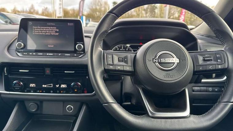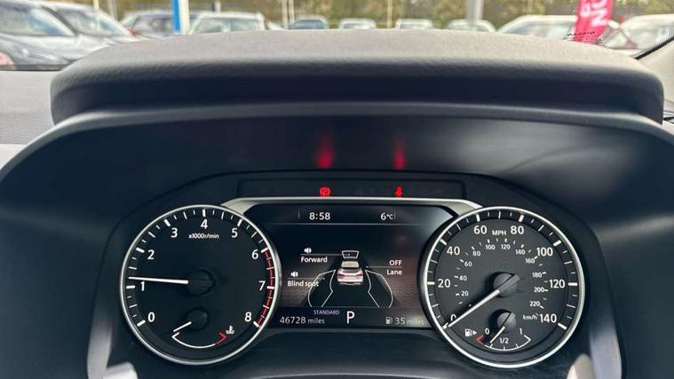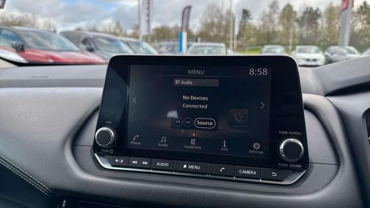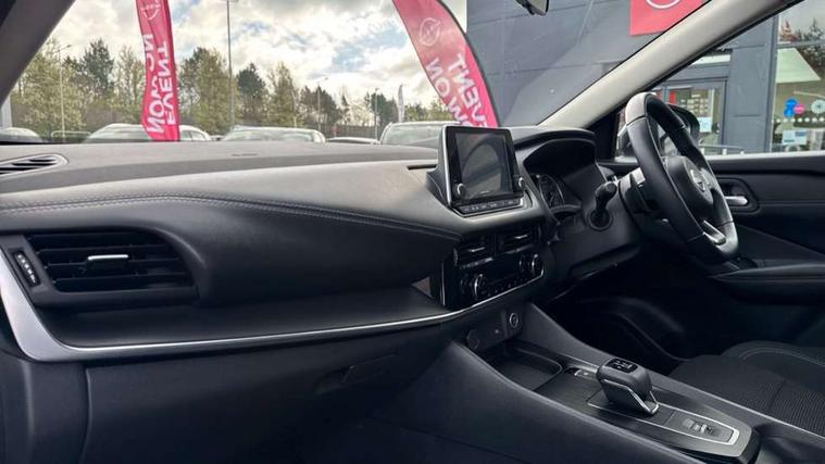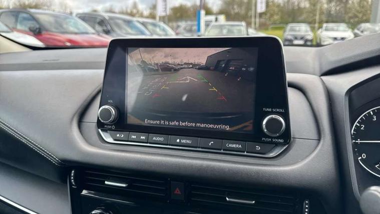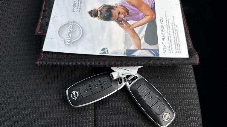 7" High definition full colour TFT screen combimeter, Android auto/Apple CarPlay (Wired), Blind spot warning, Drive modes (sport, normal, eco), Electric speed sensitive power steering, Emergency and breakdown call, Idle stop/start system, Intelligent Cruise control (ICC), Intelligent driver alert system, Intelligent forward collision warning, Intelligent lane intervention, Lane departure prevention, Lane departure warning system, Maximum speed limiter, Nissan connect 8" touchscreen infotainment system, Push button starter, Rear cross traffic alert, Rear parking sensors, Rear view camera, Traffic sign recognition with legal speed adjustment, Trip computer, 6 speakers, AM/FM audio system with DAB, Bluetooth audio streaming, Front USB connections (Type-A and Type-C), Auto dimming rear view mirror, Auto rear wiper when reversing, Automatic hazard signal with emergency stop signal, Body colour mirror caps, Body coloured door handles, Bodyside mouldings, Chrome side window finisher, Door handle with button, Electric auto folding door mirrors, Electrically adjustable and heated door mirrors with LED turn indicator, Follow me home headlights, High beam assist, Intelligent auto headlights, LED daytime running lights, LED Headlights, LED rear lights, One touch front and rear electric windows with remote opening and closing, Partially body coloured bumpers, Rear reversing light (bulb lighting), Rear roof spoiler, Rear side wing doors, Shark fin antenna, Splash free rain sensing wipers, Three blink turn signal, 12v power socket in dashboard and luggage, 2x Rear coat hooks, 3 bench rear seats in 2nd row, 3 rear headrests, 4 folding assist grip, 6-way manually adjustable driver's seat, 60/40 split folding rear seat bench, Centre console storage tray, Chrome interior door handles, Cloth monoform upholstery, Driver and front passenger sunvisors with illuminated vanity mirrors, Driver seat back pocket, Dual zone automatic climate control with pollen filter, Electrically adjustable lumbar support for driver, Front and rear door storage, Front centre console and armrest, Front cupholders x 2, Front door with bottle holders, Glovebox with light, Hard trunk cover, Height adjustable driver's seat, Height adjustable front headrests, Height adjustable passenger seat, Leather steering wheel, Luggage space lighting, Manually adjustable passenger (slide recline + lifter), Multifunction steering wheel, Passenger seat back pocket, Rear armrest with 2 cupholders, Rear door bottle holders, Single front passenger seat, Steering wheel gearshift paddles, Steering wheel switches, Sunglasses holder, Tilt/telescopic adjustable steering wheel, Two rear isofix child seat anchorage points with top tether, 3x3 point rear seatbelt pretensioners + load limiters, ABS with EBD and brake assist, Active brake limited slip, Auto hold function, Child locks on rear doors, Curtain and front side, far side airbags, Driver and passenger airbags, Driver, passenger and 2nd row rear seat belt reminder, Electronic parking brake, Front seatbelt pretensioners + load limiters, Height adjustable front seatbelts, Hill start assist, Intelligent blind spot intervention, Intelligent front emergency braking with pedestrian, cyclist recognition and junction assist, Intelligent rear automatic braking, Tyre pressure monitoring system, Vehicle dynamic control, Capless fuel filler, Engine immobiliser, Intelligent Key, Remote central door locking with deadlocking, Thatcham Cat.1 alarm, Interior instrumental panel A finisher, 17" Alloy wheels, Tyre puncture repair kit,