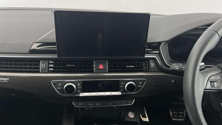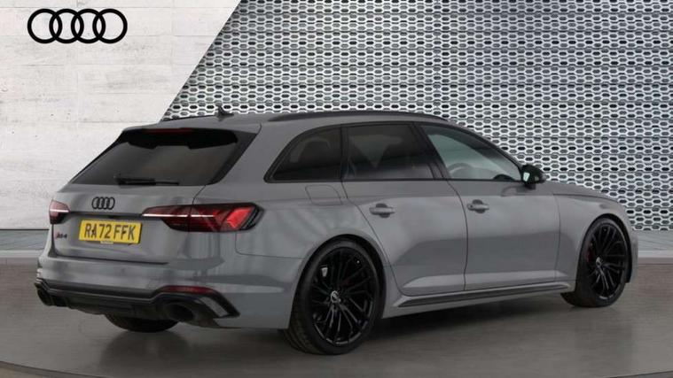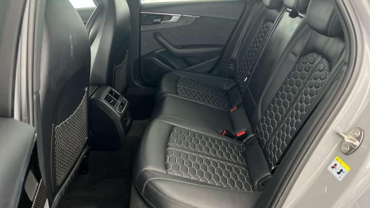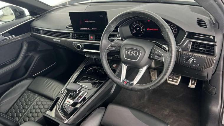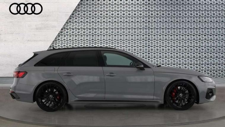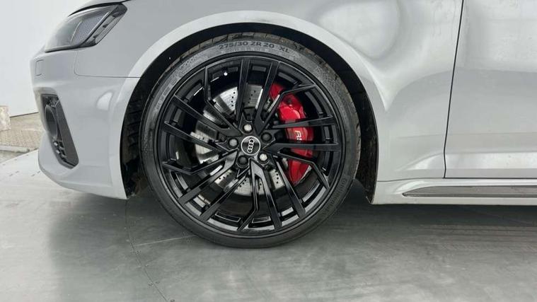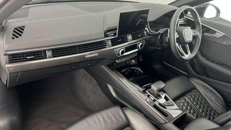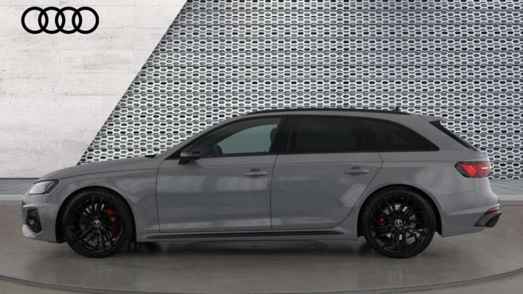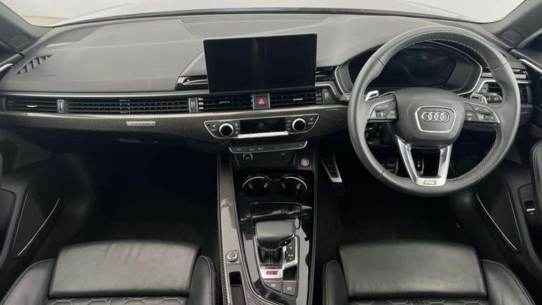 7" Colour driver information system, Amazon alexa Integration, Audi connect safety and service (e-call), Audi drive select, Audi side assist, Audi smartphone interface, Audi virtual cockpit with RS specific display, Automatic start-stop system with coasting functionality and efficiency programme, Bluetooth interface, Electromechanical power steering, Email, calendar and text messages displayed via MMI, MMI Navigation plus with MMI touch includes 10.1" high resolution colour MMI display, 3D map, Power opening/closing tailgate, Service interval indicator, Voice control system, 58 Litre fuel tank, Quattro sports differential, 2 USB charging ports, Audi sound system, DAB digital radio module, 3rd brake light, Acoustic windscreen, Audi Beam uses LEDs to project the RS logo onto ground as you exit your RS4, Audi matrix LED headlights with LED rear lights + dynamic front and rear indicators, Audi rings and lettering glossy black, Auto dimming rear view mirror, Automatic headlights + automatic windscreen wipers, Black roof rails, Blue tinted glass, Body colour door handles, Electric front windows, Electric rear windows, Electrically folding auto dimming/adjustable/heated door mirrors with memory function, LED side indicators and kerb view function for passenger side, Flared front and rear wheel arches, Front bumper with enlarged air inlets, Headlight range control, High beam assistant, High gloss black door mirror housing, High gloss black triangular aperture at rear door, Honeycomb design grille with quattro logo, Lateral air inlets next to front headlights, LED daytime running lights, LED indicators in door mirrors, Privacy glass with rear acoustic glazing, Rain and light sensors, Rear side wing doors, Rear wiper, Roof spoiler, RS 4 badges on grille and rear, RS4 dual branch chrome tailpipes with left and right oval pipes, 3 seat bench in 2nd row, 3 spoke multifunction plus leather steering wheel with heating and RS badging, 40/20/40 split folding rear seats with rear centre armrest, Black cloth headlining, Deluxe 3 zone electronic climate control, Electric load area cover, Electrically adjustable front seats, Fine nappa leather with contrast honey comb stitching + super sports seats with pneumatic massage function, Front centre armrest, Front headrests, Front/rear floor mats, Heated front seats, Height and reach adjustable steering wheel with full size airbag, Illuminated door sill trims with RS4 logo, ISOFIX child seat mounting and top tether, Leather door armrests and knee pad, Luggage compartment carpet, Perforated leather gear lever knob with contrast stitching, Rear headrests, Retractable load area cover, Single front passenger seat, Stainless steel pedals, Sunvisors with vanity mirrors, Carbon black styling pack - RS4, LED Interior light pack - RS4, Non Smokers pack, 3 point seatbelts on all rear seats, Adaptive driver and front passenger airbags, Electromechanical parking brake, Electronic stabilisation control including ABS, ASR and EDL, Enhanced braking system, Front head airbags, Front seatbelt pretensioners + load limiters, Front side airbags, Hill hold assist, Manual child lock in rear doors, Multi-Collision braking, Pop-up bonnet for pedestrian protection, Pre sense city, Rear side airbags, Seatbelt monitoring, Traction control, Tyre pressure warning, Variable restraint system, Warning triangle and first aid kit, Anti theft alarm, Anti-theft wheel bolts, Immobiliser, Keyless Go, Remote central locking, Remote control key with RS emblem, Carbon twill inlays, 20" 5 segment spoke evo design glossy black sport alloy wheels, Tool kit, Tyre repair kit,