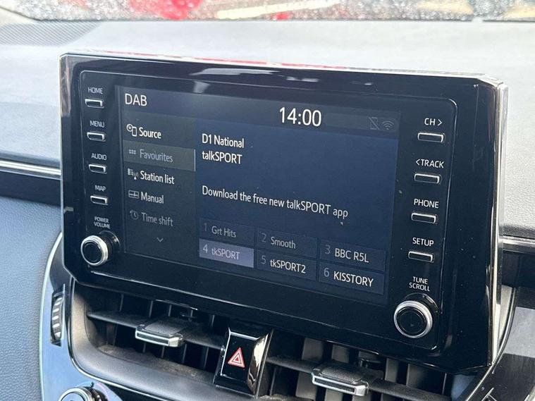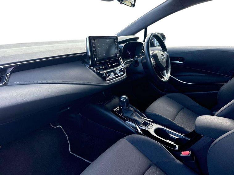 7" Multi information display screen, Bluetooth telephone connectivity, Connected car functionality upgrade, tracker, remote status and e-care, Dynamic radar cruise control (with RSA) including switch on steering wheel, E-call, Electrically assisted power steering, EV drive indicator, Intelligent park assist, Lane Departure Alert (LDA) switch on steering wheel, Memory on adjustable speed limiter, Push button start, Reversing camera, Smartphone integration with Apple CarPlay and Android auto, Gasoline particulate filter, Vehicle Stability Control (VSC), 6 speakers, 8" Touchscreen with MM19 Multimedia system and voice recognition, AM/FM radio, DAB Digital radio, Toyota touch 2 with go navigation system, USB and Aux in connectors + 12V front outlet, USB charging port in centre storage box, Aluminium roof rails, Anti-jam protection on power windows, Auto up and down function on all power windows, Automatic headlights with high beam assist, Black metallic surround on lower front grille, Black toyota logo in front, Body colour rear spoiler, Body coloured bumpers, Body coloured door mirrors, Body coloured outside door handles, Follow me home headlights, LED daytime running lights, LED front fog lights, LED Headlights, LED High mounted stop light, Manual day/night rear view mirror, Noise reduction layer on front windows, Power adjustable heated door mirrors, Power front windows, Power rear windows, Rain sensor, Rear side wing doors, Rear window defogger, Rear window wiper, Rear wing door, Shark fin antenna, Time adjustment on intermittent wiper, Turning signal integrated indicators in door mirrors, Unique lower skirt, Unique side rocker with black insert, UV-filter on driver and passenger windows, 12v power outlet - luggage side, 3 rear headrests, 3 seat bench in 2nd row, 3 spoke leather steering wheel + gear knob, 60/40 split folding rear seat, Adjustable speed limiter switch on steering wheel, Audio, multimedia and telephone switches on steering wheel, Boot light, Boot underfloor storage, Clean air filter, Driver and front passenger personal light, Driver and passenger assist grip, Driver and passenger sun visor with mirror and light, Dual sided deck board in boot, Dual zone automatic air conditioning with ECO mode switch, Fabric armrests, Front and rear cup and bottle holders, Front and rear door pockets, Front head restraints, Front passenger seat, Heated driver and front passenger seats, Illuminated entry system in room lamp, ISOFIX seat fixing (2 fixings on rear outer seats), Leather gear shift with satin chrome on gear shift console, Manual height adjustable for driver and front passenger seat, Passenger seat back pocket, Pollen filter, Power adjustable lumbar support on driver seat, Power window switches with satin chrome inserts, Quilted fabric upholstery with grey stitches seats, Rear armrest with 2 cupholders, Rear passenger air vents, Rear passenger coat hooks (2), Rear passenger personal lights, Retractable tonneau cover with luggage partition net, Satin chrome inside door handles, Shopping bag hooks in luggage compartment, Side storage in boot, Sliding armrest on centre console box, Slow opening glovebox with lights, Tilt/telescopic steering column, Tonneau cover with under floor storage, Voice recognition switch on steering wheel, Whiplash Injury Lessening (WIL) feature (active headrest) for seats, Parking pack - Corolla, Toyota safety sense 2 pack - Corolla, 3x3 point rear seatbelts, Adjustable driver and front passenger seat belt extender to top anchor point, Anti lock braking system + Electronic brake force distribution, Brake assist function, Child locks on rear doors, Downhill Assist Control (DAC), Electronic parking brake, Emergency brake light signal (EBS), Front passenger airbag on/off switch, Front seatbelt reminder, HAC - Hill start assist control, Rear seat belt reminder, Seatbelt pretensioners and force limiters, Supplemental restraint system (SRS) 7 airbags - dual driver, dual side curtain, side impact and driver knee airbags, Traction control, Tyre pressure warning system, Acoustic vehicle alert system (AVAS), Alarm with motion sensor and immobilizer, Remote central locking + deadlocks, Smart entry, Satin chrome dash trim, Soft touch texture on upper dashboard, Stitching on lower dashboard, Space saver spare wheel, Unique wheel finish with red wheel cap,