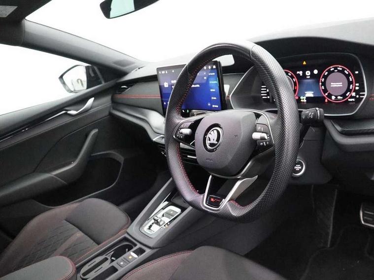 1x USB Typc C port in rear view mirror, 4x USB Type C ports - 2x in front centre console and 2x in rear (45W), Blind spot detection, Drive mode selection, Driver fatigue sensor, eCall emergency system, Electrically operated boot with virtual pedal, Front and rear parking sensors with manoeuvre assist, Front assist system, Predictive adaptive cruise control with traffic jam assist, Progressive dynamic steering, Traffic sign recognition, Turn Assist, Virtual Cockpit - 10.25" digital display, Voice control system, Wireless charging (15W) with cooling function, Wireless SmartLink for Apple CarPlay and Android Auto, Electronically controlled limited slip differential, vRS suspension, 13" touchscreen display with navigation, DAB Digital radio, Aero front windscreen wipers with intermittent function, Auto dimming rear view mirror, Black sport exhaust pipes, Body colour bumpers, Body colour door handles, Electric front and rear windows, Exterior gloss black sports styling including front grille, window surrounds, door mirrors and badging, Gloss black diffuser, Gloss black spoiler, Heated rear windscreen, High beam control, High level third brake light, Ice scraper in fuel cap, LED daytime running lights, Logo projection in front doors, Rain and light sensors, Rear fog light on one side, Rear privacy glass, Rear side wing doors, Unique vRS bumpers and exterior styling, 12 volt socket in boot, 3 rear headrests, 3 seat bench in 2nd row, 4 foldable roof handles, Aluminium pedals, Front head restraints, Front sport seats, Heated front seats, Illuminated glovebox, Interior door handles in dark chrome, Jumbo Box storage, Luggage compartment lighting x2 lights, Mechanical rear seat release from boot, Parcel shelf - folding, Single front passenger seat, Steering wheel in black leather with black stitching, Storage compartments in left and right of boot, Sun visors with mirrors, Sunglasses storage, Ticket holder, Umbrella in door panel, Unsplit rear bench seat, split folding backrest with centre armrest with cupholder, Waste bin in door panel, Comfort package - Octavia, Family package - Octavia, Light and view package plus - Octavia, vRS Design Selection pack - Octavia, 3x3 point rear seat belts, Alarm with interior monitoring, tilt sensor and back up horn, Curtain airbags and front side airbags, Driver and front passenger airbags, Drivers knee airbag, Electronic parking brake, ESC including ABS, EBV, MSR, ASR, EDS, HBA, DSR, Front central airbag, Hill hold assist, ISOFIX on front passenger seat and outer rear seats, Passenger airbag deactivate switch, Red brake calipers, Three point seat belts in front and rear, Two tone horn, Tyre pressure monitor, Visual and acoustic seat belt reminder, Warning reflectors in front door, Anti-theft wheel bolts, Keyless start/stop, Remote central locking, Gloss black air vent surrounds, 19" Elias anthracite alloy wheels,