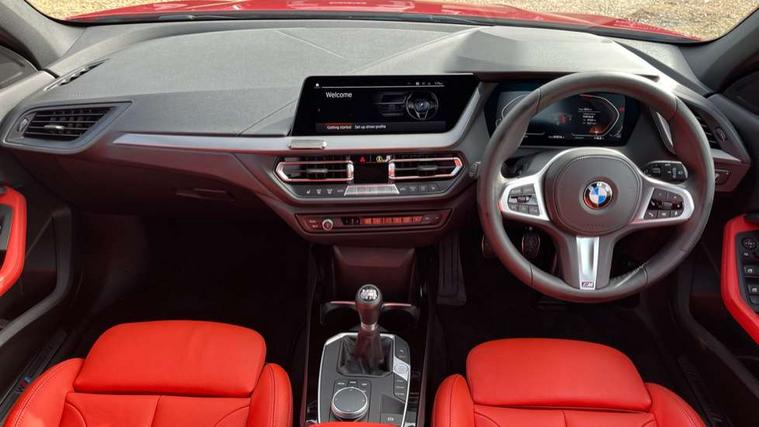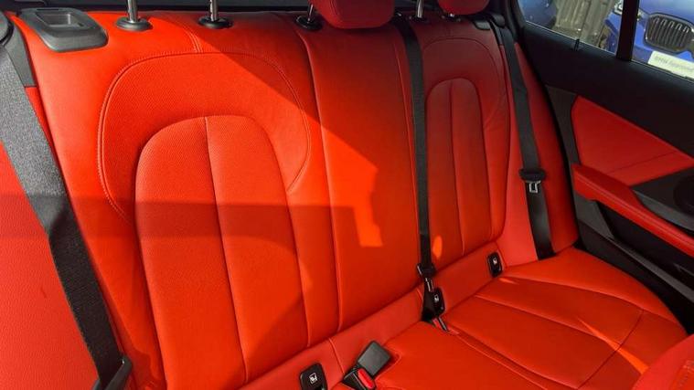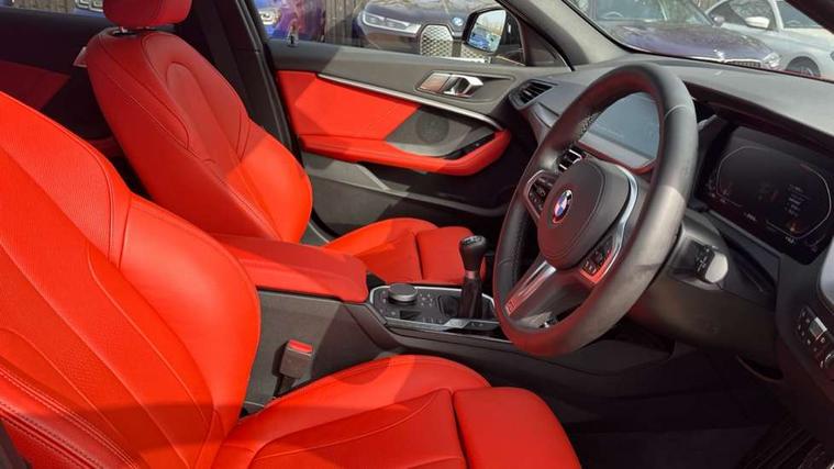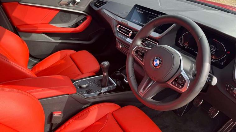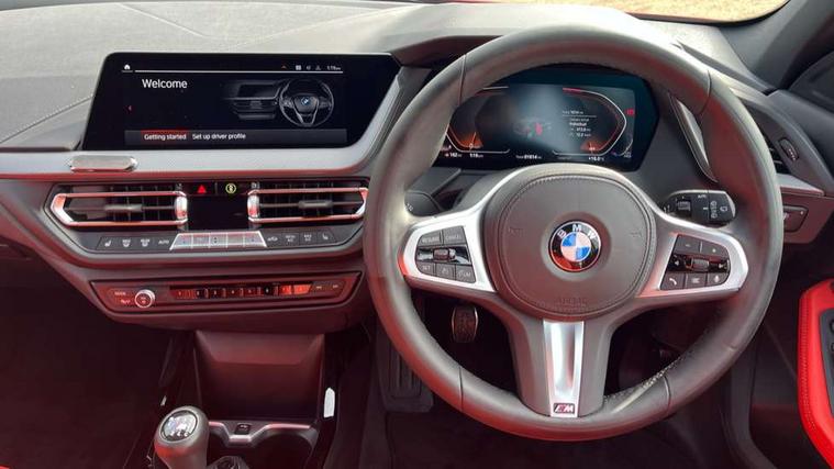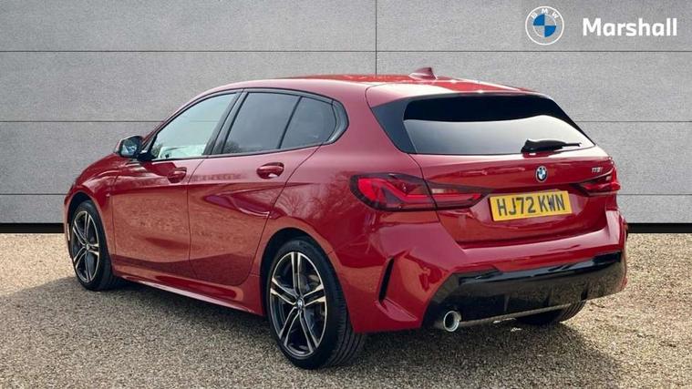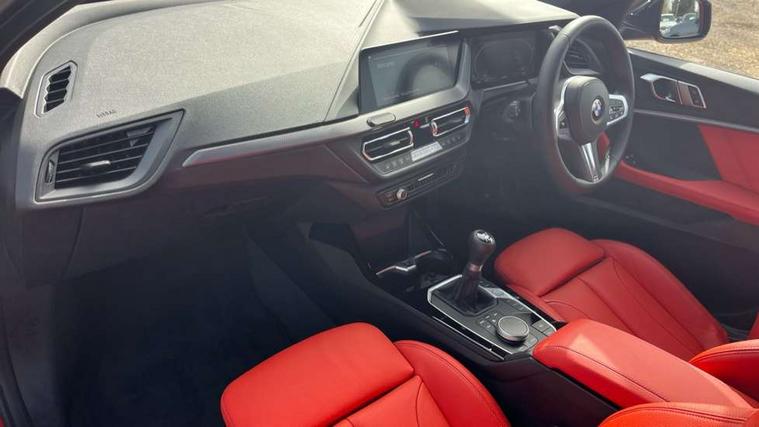 Active guard plus, Attentiveness assist, BMW ConnectedDrive online services, BMW Teleservices, Check Control warning system for monitoring of lights and door/luggage compartment open warning, Cruise control with brake assist, Eco pro mode, Front axle single joint with specific axle kinematics to minimise drive influences on steering + provide increased rigidity agile driving behaviour, Integrated owners handbook, Lane departure warning system, Oil sensor for level and grade, On board computer, Optimum shift indicator, Personal Profile, Pull away assistant, Rigidly mounted rear subframe - Multi link construction with separate spring / damper configuration and excellent driving characteristics, Speed limit Info including no-overtaking indicator, Speed limiter, Aluminium lightweight construction, Anti roll bar front and rear, Balancer shaft, Double VANOS twin scroll turbocharging system, Drive Performance Control, Electronic differential lock, High precision injection, M sport suspension, Petrol Particulate Filter, Twin tube gas filled shock absorbers with degressive characteristic curve, VALVETRONIC engine management, DAB Digital radio, Auto dimming rear view mirror, Automatic headlight beam throw control, Automatic windscreen wipers and automatic headlight, Body colour door handles, Body colour mirror caps, Body colour roof trims, Chrome 'M' logo side designation, Chrome exhaust twin tailpipes round 90mm in left, Chrome kidney grille frame with Satin Aluminium struts, Direction indicator side lights in exterior mirrors, Fading support, Folding side mirrors with auto dimming/folding wing mirrors with auto dimming, Follow me home headlights, Front and rear bumper system with replaceable deformation elements, Front and rear electric windows with open and close fingertip control, anti trap facility and comfort closing, Front door sill finishers in black plastic with M designation in metallic look, Green tinted heat protection glazing, Heated, electrically adjustable exterior mirror aspheric on driver side, convex on passenger side, High gloss shadowline window frame, Recess cover mirror frames and B/C pillar embelisher trim, High level third brake light, Integrated front windscreen with washer jets, LED daytime running lights, LED eyebrow turn indicators, LED front fog lights, LED Headlights, Lightweight engineering, Matt black air guide grilles, Matt black wheel arch trim, Model designation on electric bootlid, Nearside reverse light in rear light cluster, Preparation for high beam assistant, Rear fog lights, Rear side wing doors, Rear window wiper, Shark fin antenna, Trailer stabilisation logic, Visible VIN plate, Welcome lighting, 12V power socket in front centre console with blanking plug, 3 rear seat head restraints, 3 seat bench in 2nd row, 3 spoke sports leather steering wheel in black leather with black stitching and decorative finisher in pearl chrome, specific M badge + leather knob, Anthracite headlining, Black boot net with lashing eyes, Cargo function on 2nd seat row, Child seat ISOFIX attachment for two outer rear seats and front passenger seat with anchorage points, Conditioned based service, Driver and front passenger seat heating, Folding rear clothes hook, Four grab handles integrated in roof lining, Front and rear door pockets with bottle holders, Front and rear side armrest integrated into door trim, Front armrest, Front sports seats, Gearshift lever with M designation, Glove compartment, Height adjustable front head restraints, Luggage compartment for bag hooks on left and right, foldable luggage compartment liner and four lashing eyelets, Manual adjust steering wheel, Multi-function controls for steering wheel, Single front passenger seat, Storage compartment in centre console, Sun visors with vanity mirrors and insert tab, Two front centre console cupholders, Two zone automatic air conditioning, Velour floor mats, Additional interior lighting pack - 1 Series, BMW live cockpit professional pack- 1 Series, Connected pack professional - 1 Series, Interior lights pack - 1 Series, M Sport exterior styling aerodynamics pack - 1 Series, 2 tone horn, 3 point seatbelts on all seats, front pyrotechnic belt tensioners, stopper and belt force limiters, rear coded belt buckles, Airbags - Front driver/passenger, front and rear curtain head protection, front side, manual deactivation of front passenger airbag, Anti lock braking system (ABS) with brake assist, BMW emergency call, Brake drying, Braking readiness, Child proof locking system in rear door, City braking function, Comfort modes, Cornering brake control, Crash sensor activating central locking release, hazard warning lights, fuel cut off, interior lighting + activation of safety battery terminal clamp, Driver and front passenger seat belt security check, Dynamic stability control + (DSC+), Dynamic Traction Control - DTC, Electrically operated hand brake, Front and rear disc brakes, Seatbelt warning, Side impact protection, Tyre pressure monitoring system, Warning triangle and first aid kit, Central locking switch for all doors, fuel filler cap and luggage compartment, Deadlocking function system to all doors, Drive away locking system on all doors and luggage compartment with de-activated in iDrive settings, Locking wheel bolts, Remote control with integrated key with High-gloss Black inlay and M designation and 1 button for open/ close lock, window, open luggage compartment, Start/stop button illuminated in centre console with keyless engine start and auto start stop deactivation button, Thatcham Cat.1 alarm and immobiliser, Wheel slip limitation close to the actuator (ARB), Contrast stitching on instrument panel, Electrically powered 12V compressor, Reduced rolling resistance tyres,
