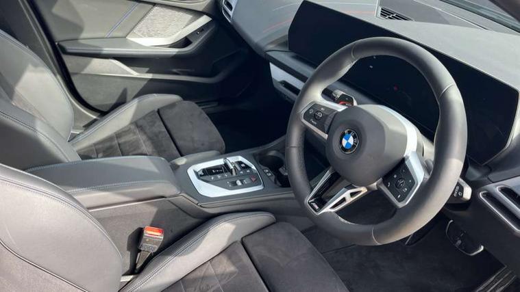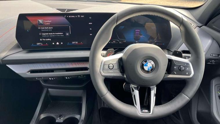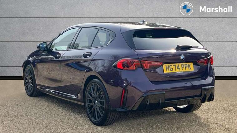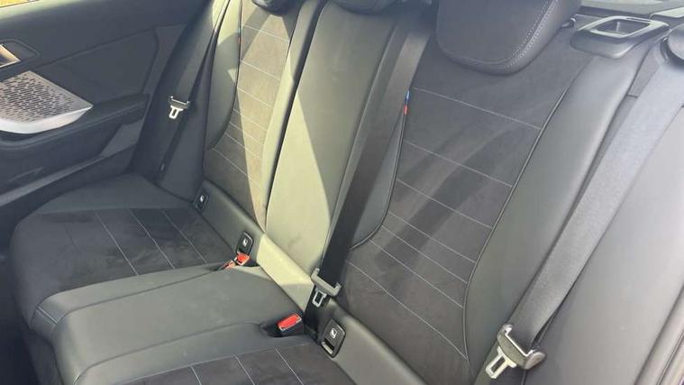 Active guard plus, Attentiveness assist, Bluetooth / WiFi interface for wireless connection of mobile terminal devices and audio streaming, BMW ConnectedDrive online services, BMW Live cockpit plus, BMW Teleservices, Check Control warning system for monitoring of lights and door/luggage compartment open warning, Cruise control with speed limiter, Eco pro mode, Electric power steering with Servotronic steering optimised at all speed ranges, Front and rear parking sensors, Front axle single joint with specific axle kinematics to minimise drive influences on steering + provide increased rigidity agile driving behaviour, Integrated owners handbook, Lane departure warning system, Oil sensor for level and grade, On board computer, Optimum shift indicator, Park assist including reversing assistant, lateral parking aid and reversing assist camera, Personal Profile, Pull away assistant, Rigidly mounted rear subframe - Multi link construction with separate spring / damper configuration and excellent driving characteristics, Speed limit Info including no-overtaking indicator, Speedometer, 49 litre fuel tank, Aluminium lightweight construction, Anti roll bar front and rear, Balancer shaft, Double VANOS twin scroll turbocharging system, Drive Performance Control, Electronic differential lock, High precision injection, M Adaptive suspension, Petrol Particulate Filter, Twin tube gas filled shock absorbers with degressive characteristic curve, VALVETRONIC engine management, DAB Digital radio, Auto dimming rear view mirror, Automatic headlight beam throw control, Automatic windscreen wipers and automatic headlight, Body colour door handles, Body colour mirror caps, Body colour roof trims, Chrome 'M' logo side designation, Chrome exhaust twin tailpipes round 90mm in left, Chrome kidney grille frame with Satin Aluminium struts, Direction indicator side lights in exterior mirrors, Electrically adjustable exterior mirror with mirror adjustment switch on drivers armrest and aspheric on driver side, convex on passenger side, Fading support, Folding side mirrors with auto dimming/folding wing mirrors with auto dimming, Follow me home headlights, Front and rear bumper system with replaceable deformation elements, Front and rear electric windows with open and close fingertip control, anti trap facility and comfort closing, Front door sill finishers in black plastic with M designation in metallic look, Green tinted heat protection glazing, High gloss shadowline window frame, Recess cover mirror frames and B/C pillar embelisher trim, High level third brake light, Integrated front windscreen with washer jets, LED daytime running lights, LED eyebrow turn indicators, LED front fog lights, LED Headlights, Lightweight engineering, Matt black air guide grilles, Matt black wheel arch trim, Nearside reverse light in rear light cluster, Preparation for high beam assistant, Rear fog lights, Rear side wing doors, Rear window wiper, Shark fin antenna, Trailer stabilisation logic, Visible VIN plate, Welcome lighting, 12V power socket in front centre console with blanking plug, 3 rear seat head restraints, 3 seat bench in 2nd row, 3 spoke sports leather steering wheel with black leather and stitching, pearl chrome decorative finish, specific M Badge, Anthracite headlining, Black boot net with lashing eyes, Cargo function on 2nd seat row, Child seat ISOFIX attachment for two outer rear seats and front passenger seat with anchorage points, Conditioned based service, Driver and front passenger backrest net on rear, Driver and front passenger seat heating, Driver side folding compartment in instrument panel, Folding rear clothes hook, Four grab handles integrated in roof lining, Front and rear door pockets with bottle holders, Front and rear side armrest integrated into door trim, Front armrest, Glove compartment, Height adjustable front head restraints, Luggage compartment for bag hooks on left and right, foldable luggage compartment liner and four lashing eyelets, Manual adjust steering wheel, Multi-function controls for steering wheel, Rear seat backrest with manual 60:40 split folding with 3 top tether clips integrated on rear of seat panels, Single front passenger seat, Storage compartment in centre console, Storage compartment in luggage compartment, Stowage of the parcel shelf in luggage compartment trim, Sun visors with vanity mirrors and insert tab, Two front centre console cupholders, Type C two USB ports in rear centre console, Velour floor mats, Connected pack professional - 1 Series, Interior lights pack - 1 Series, M Sport exterior styling aerodynamics pack - 1 Series, 2 tone horn, 3 point seatbelts on all seats, front pyrotechnic belt tensioners, stopper and belt force limiters, rear coded belt buckles, Airbags - Front driver/passenger, front and rear curtain head protection, front side, manual deactivation of front passenger airbag, Anti lock braking system (ABS) with brake assist, BMW emergency call, Brake drying, Braking readiness, Child proof locking system in rear door, Comfort modes, Cornering brake control, Crash sensor activating of airbags, Unlocking doors, hazard warning lights, interior light, safety battery terminal, Driver and front passenger seat belt security check, Dynamic stability control + (DSC+), Dynamic Traction Control - DTC, Electrically operated hand brake including automatic hold function, Front and rear disc brakes, Seatbelt warning, Side impact protection, Tyre pressure monitoring system, Warning triangle and first aid kit, Central locking switch for all doors, fuel filler cap and luggage compartment, Deadlocking function system to all doors, Drive away locking system on all doors and luggage compartment with de-activated in iDrive settings, Locking wheel bolts, Remote control with integrated key with High-gloss Black inlay and M designation and 1 button for open/ close lock, window, open luggage compartment, Start/stop button illuminated in centre console with keyless engine start and auto 
