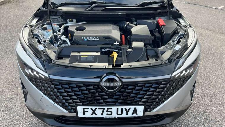 2 front USB-C ports, 2 rear USB-C ports, 360 degree Intelligent around view monitor with moving object detection, Blind spot warning, Drive assist custom mode, Drive modes (sport, normal, eco), Driver drowsiness and attention warning, e-Pedal step, Electric speed sensitive power steering, Emergency and breakdown call, Emergency lane keep assist, Emergency Stop Signal (ESS), Engine start/stop button, EV mode switch, Event data recorder, Front and rear parking sensors, Full Digital 12.3" TFT Digital Combimeter, Google virtual personal assistance, Idle stop/start system, In-car WIFI hotspot, Intelligent Cruise control (ICC), Intelligent driver alert system, Intelligent forward collision warning, Intelligent lane intervention, Intelligent speed assist, Lane departure warning system, Maximum speed limiter, Nissan connect 12.3 inch touchscreen infotainment system, Nissan connect navigation with google maps, Nissan connect services 2.0 (Google Automotive System), Outside temperature sensor, Propilot assist with Navi-Link, ProPilot park, Rear cross traffic alert, Remote control services - door locks, lights, horn and car locator, Reversing detection, Traffic jam pilot, Traffic sign recognition with legal speed adjustment, Trip computer, Wireless Apple CarPlay/Android Auto, Wireless charging pad, Limited slip differential, 6 speakers, AM/FM audio system with DAB, Bluetooth audio streaming, Auto dimming frameless rear view mirror, Auto rear wiper when reversing, Body colour mirror caps, Body coloured door handles, Bodyside mouldings, Chrome side window finisher, e-POWER badging, Electric auto folding door mirrors, Electrically adjustable and heated door mirrors with LED turn indicator, Follow me home headlights, High beam assist, Intelligent auto headlights, LED 3rd brake light, LED daytime running lights, LED Headlights, LED rear lights, One touch front and rear electric windows with remote opening and closing, One touch passenger window, Partially body coloured bumpers, Rain sensing wipers, Rear privacy glass, Rear roof spoiler, Rear side wing doors, Rear styling plate, Shark fin antenna, Silver roof rails, Splash free rain sensing wipers, Super UV and infrared cut glass, Three blink turn signal, 12v power socket in dashboard and luggage, 3 bench rear seats in 2nd row, 3 rear headrests, 60/40 split folding rear seat bench, Chrome interior door handles, Cloth upholstery, Driver and passenger sunvisors with illuminated vanity mirrors, Driver seat back pocket, Dual zone automatic climate control with pollen filter, e-POWER shifter, Electrically adjustable lumbar support for driver, Front centre console and armrest, Front cupholders, Front door with bottle holders, Height adjustable driver seat, Height adjustable front headrests, Height adjustable passenger seat, Luggage board system, Luggage space lighting, Multifunction steering wheel, Passenger seat back pocket, Rear door bottle holders, Rear seat armrest with 2 cupholders, RGB ambient light (Full area coverage), Single front passenger seat, Smooth leather steering wheel, Tilt/telescopic adjustable steering wheel, Two rear isofix child seat anchorage points with top tether, 3x3 point rear seatbelt pretensioners + load limiters, ABS with EBD and brake assist, Autonomous emergency braking, Child locks on rear doors, Curtain and front side, far side airbags, Driver and passenger airbags, Driver, passenger and 2nd row rear seat belt reminder, Electric handbrake with auto hold function, Front seatbelt pretensioners + load limiters, Height adjustable front seatbelts, Hill start assist, Intelligent blind spot intervention, intelligent front emergency braking, Intelligent rear automatic braking, Tyre pressure monitoring system, Vehicle dynamic control, Engine immobiliser, Intelligent key with walk away lock and approach unlock functions, Remote central door locking with deadlocking, Thatcham alarm, 18" Diamond cut alloy wheels, Tyre puncture repair kit,