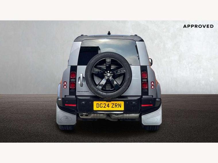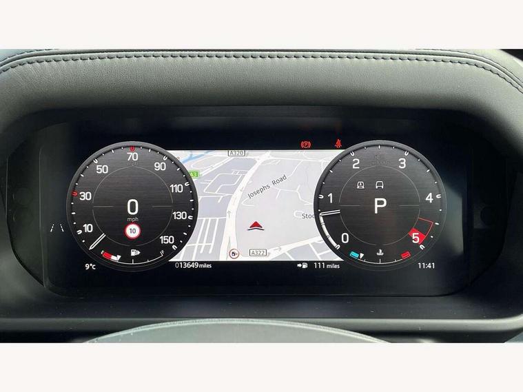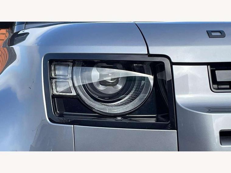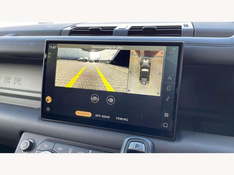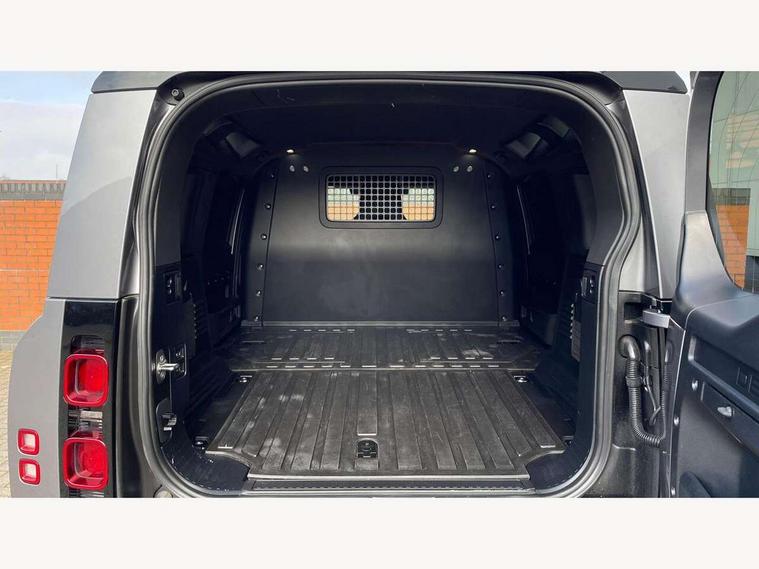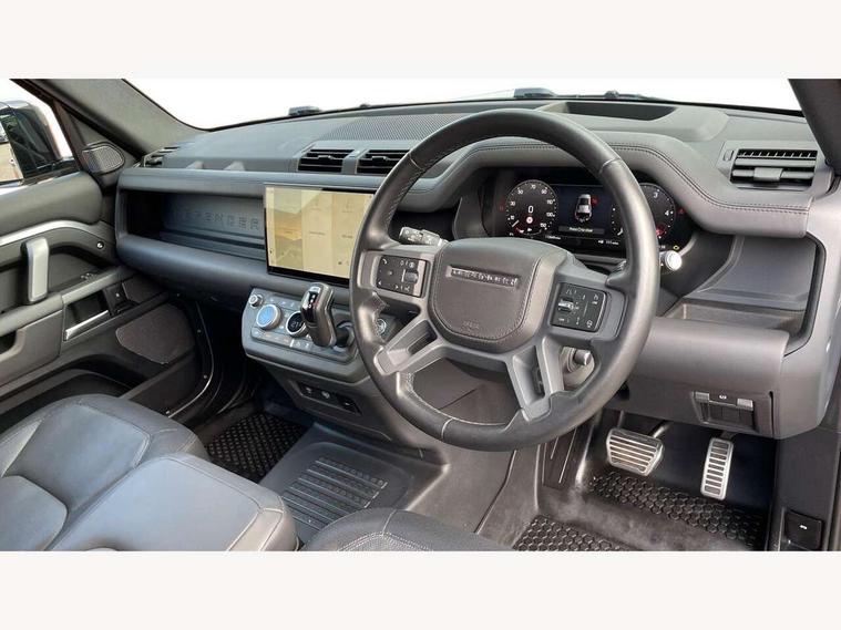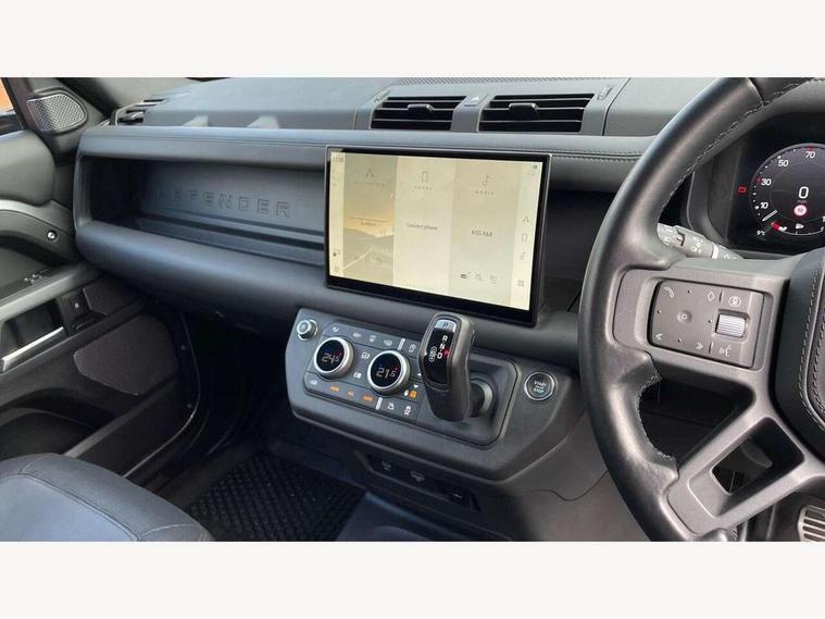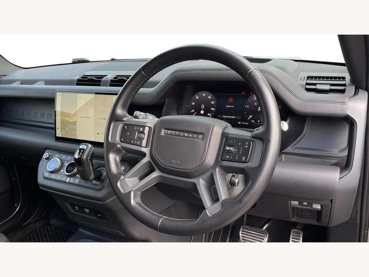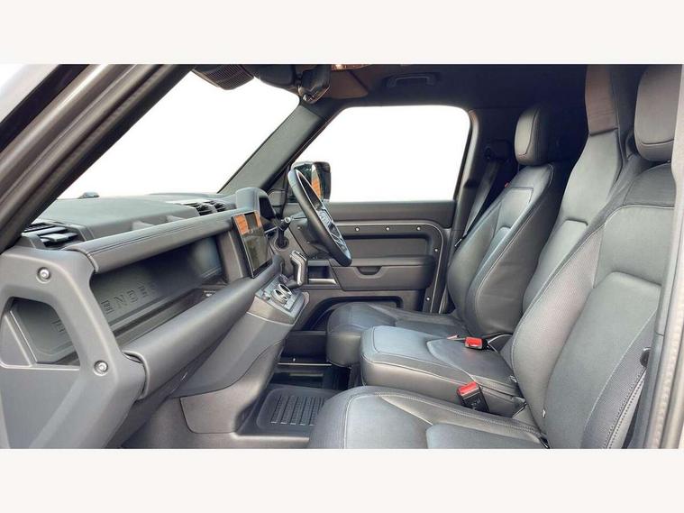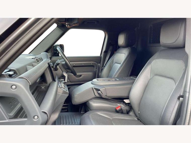 Customer Configurable Autolock, 11.4" touchscreen, 360 parking aid, 3D Surround Camera with 360 View, 180 Rear View, Front Traffic Detection, Forward Vehicle Guidance, Tow Hitch Assist and clear sight Ground View, Adaptive cruise control, Blind spot assist, Brake Hold, Driver condition monitor, Electric power assisted steering (EPAS), Lane keep assist, Low traction launch, Pivi pro connected, Rear collision monitor, Rear traffic monitor, Traffic sign recognition adaptive speed limiter, Trip computer, Tyre pressure monitor, Wade Sensing, Android Auto, Apple CarPlay, DAB Radio (Digital Audio Broadcasting), Meridian 280W sound audio system with 7 speakers with subwoofer, Alpine lights, Assisted tailgate, Auto High Beam Assist, Automatic headlight levelling, Automatic headlights and rain sensitive front wipers, Body coloured exterior Utility Panel, Centre high mounted stop light, ClearSight interior rear view mirror, Electric heated/power fold door mirrors with approach lights and auto dimming driver side, Electric windows with one touch open/close and anti-trap, Follow me home lighting, Front fog lights, Heated rear window with timer, Heated windscreen, LED tail light, Privacy glass, Puddle lights, Rear fog lights, Rear wash wiper, Side-hinged tailgate, Standard roof, X-Dynamic Badge, X-Dynamic Treadplate, 14 way heated and cooled electric adjustable memory front seats with 4 way manual headrests, Additional lashing points, Black exposed rear recovery eyes, Dual zone climate control, Durable rubber cabin flooring, Electric adjustable steering column, Footwell lights, Front jump seat and folding front centre armrest, Front passenger seat ISOFIX points, Full height bulkhead behind row 1 seats, Glovebox storage, High sided rubber mats, Loadspace cover, Loadspace hooks, Loadspace rubber mat, Lockable and illuminated underfloor storage compartment (x1 under boot floor and x1 accessible via rear doors), Overhead stowage for sunglasses, Premium cabin lighting, Rear centre headrest, Rear reading light, Signature graphic, Standard seating configuration, Sunvisors with illuminated vanity mirrors, Twin front cupholders with cover, Upgraded loadspace LED lighting, Online pack - Defender with data plan, Brake pad wear indicator, Electronic traction control, Emergency braking, Front airbags, with passenger seat occupant detector, Power operated child locks, Remote for (e-Call, Optimised assistance call, InControl app, Climate, beep and flash and door), Seat belt reminder, Intrusion sensor, Keyless entry system, Locking wheel nuts, 8 speed automatic transmission, ABS and EBA, All wheel drive, CBC - (Cornering brake control), Dynamic stability control, Electronic brake force distribution, Electronic park brake, Gradient acceleration control, Hill Descent Control, Hill start assist, Particulate filter (DPF), Push button start, Roll stability control, Trailer stability assist, Twin speed transfer box (high/low range), Extended leather upgrade,
