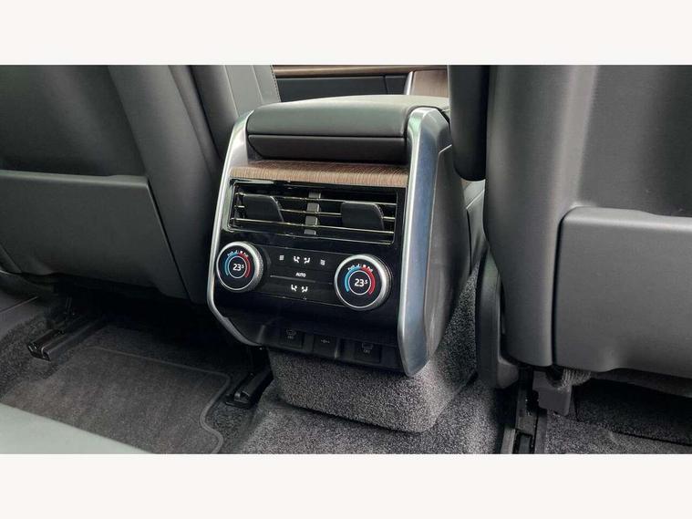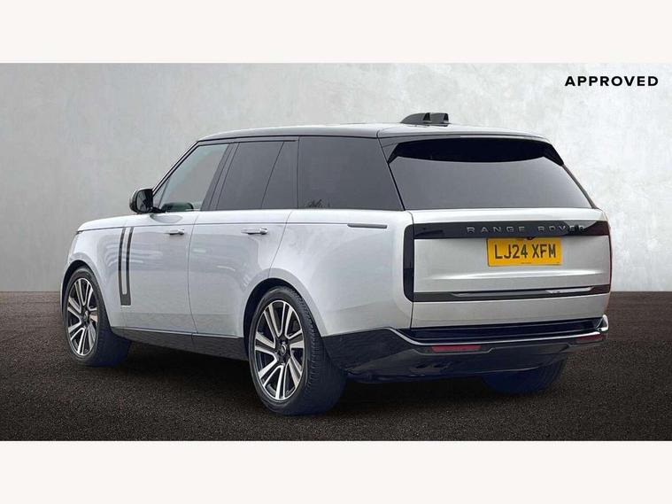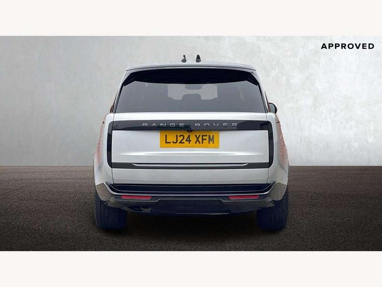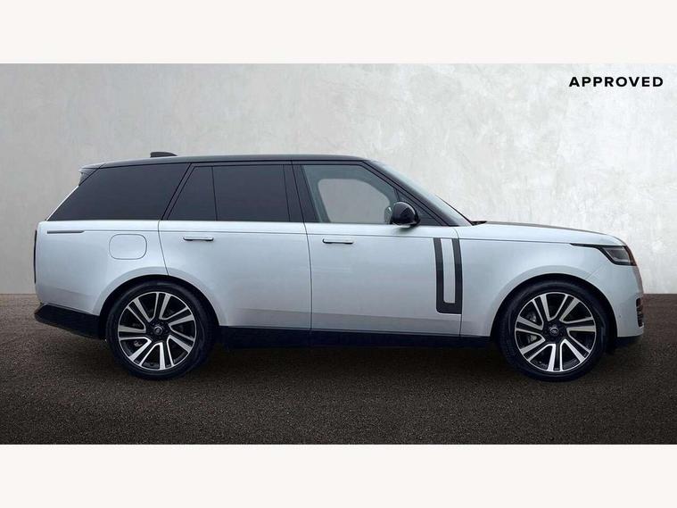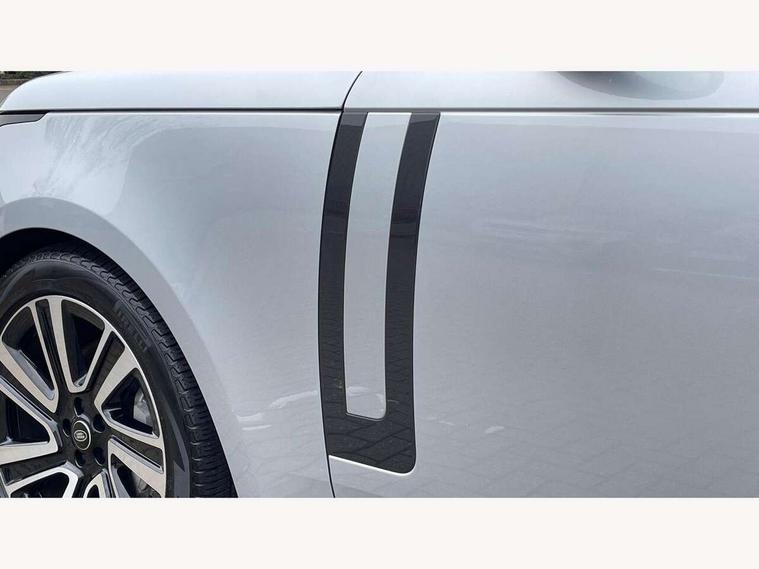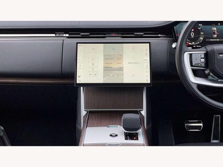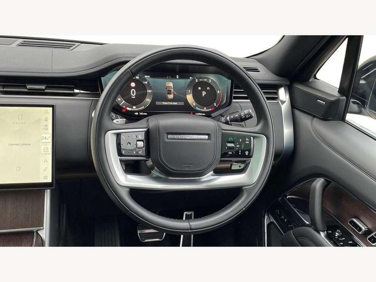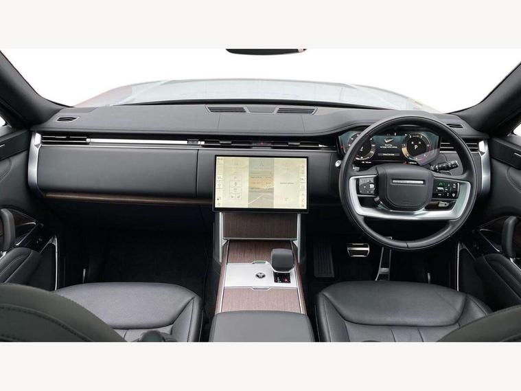 13.1" Touchscreen, 3D surround camera inc frwd traffic detection, vehicle clearance guidance, 3D view, clearsight ground view, manoevure light, 360 parking aid, wade sensing, All Terrain Info Centre, All wheel steering, Android Auto, Apple car play, Blind spot assist, Bluetooth connectivity streaming, Driver condition response, Eco mode, Electric power assisted steering (EPAS), Emergency call service, Front and rear parking aid, Interactive driver display, Lane keep assist, Park assist, Rear collision monitor, Rear traffic monitor, Remote, Traffic sign recognition with adaptive speed limiter, Wi-Fi Enabled with data plan, Wireless device charging with phone signal booster, 8 speed automatic transmission, Active damper technology system, Adaptive dynamics, All terrain progress control, All Wheel Drive (AWD), Automatic access height, Terrain Response 2 Auto, Twin speed transfer box, Digital Audio Broadcast radio-DAB, Pivi pro including smart settings, Connected navigation pro, nuance speech, USB socket, Acoustic laminated windscreen, Animated directional indicators, Automatic headlights, Automatic levelling headlights, Centre high mounted stop light, Electric windows with one touch open/close and anti trap, Engine cover, Flush deployable exterior door handles, Front and rear recovery eyes, Front fog lights, Headlamp power wash, Heated rear window, Heated washer jets, Illuminated aluminum treadplates with Range Rover script, LED tail lights, No badges, Pixel LED headlights with signature DRL, Power fold, auto-dimming, heated door mirrors with approach lights, Rain sensing windscreen wipers, Rear boot, Rear fog lights, Rear side wing doors, Side repeater indicators in mirror, Trailer stability assist, Winter wiper park position, 12V power sockets, 3 seat bench in 2nd row, Air quality sensor, Bright metal pedals, Cabin lighting, Customer configurable single point entry, Driver and passenger front seat armrests, Easy boot loading, Ebony Carpet, Front and rear cupholders, Front and rear grab handles, Front head restraints, Gearshift paddles, Heated steering wheel, Hook in load space, Loadspace light, Luggage tie down in loadspace, Multifunction steering wheel, Rear centre armrest, Rear head restraints, Rear ISOFIX, Single front passenger seat, Soft close doors, Upper and lower glovebox, Online pack with data plan - Range Rover, 3x3 point rear seat belts, Anti-lock braking system (ABS), Brake hold function, Cornering brake control (CBC), Customer configurable autolock, DSC - Dynamic Stability Control, Electronic brake force distribution, Electronic parking brake, Electronic traction control, Emergency braking, Front airbags with passenger seat occupant detector, Front side airbags, Hill descent control, Hill launch assist, Low traction launch, Occupant protection assist, Power operated child locks, Roll stability control, Tyre pressure monitoring system (TPMS), Immobiliser, Intrusion sensor and alarm, Keyless entry, Locking wheel nuts, Remote central locking, Noble chrome controls,