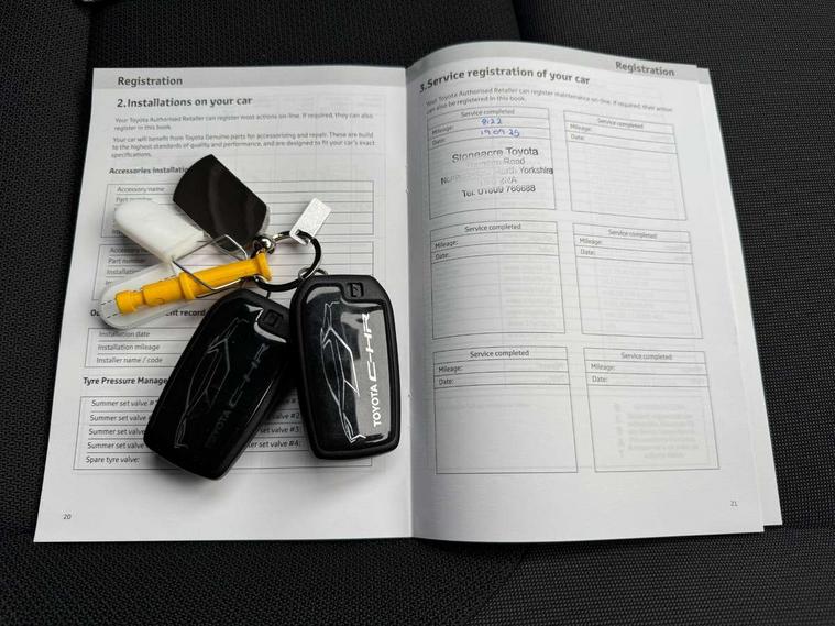 12.3" Digital Combimeter, 12.3" multimedia display screen, 4 rear parking sensors, Acceleration suppression at low speed, Adjustable speed limiter, Blind spot monitor, Bluetooth connectivity, Built-in and cloud navigation, Colour multi information display, Digital speedometer, Digital tachometer, eCall emergency call system, Electric power steering, Emergency driving stop system, Emergency steering assist, Front parking sensors with auto braking, Hybrid system indicator, I/P center cluster X, Instrument finish panel, Intelligent adaptive cruise control, Intelligent parking sensors (objects and vehicle), Lane Departure Alert (LDA) switch on steering wheel, Lane departure alert with steering control, Lane trace assist, Memory on speed limiter, MyT connected services, Power tailgate, Pre collision system with emergency steering assist, Pre collision system with intersection detection, Proactive driving assist (PDA), Push button tailgate release, Rear cross traffic alert, Remote boot door release in cabin, Reversing camera, Reversing camera display in audio screen, Road sign assist - RSA, Safe exit assist, Smart entry and push button start, Smart voice assist, Start and stop, Static guide lines on reversing camera, Toyota Smart Connect multimedia system with wireless Smartphone integration incl Apple CarPlay, Voice recognition, Wireless phone charger, Electric accelerator pedal, Fast charger 32A Mennekes cable, Front and rear stabilizers, Vehicle Stability Control (VSC), 6 speakers, Aux-in connector, DAB Radio (Digital Audio Broadcasting), Front USB Type-C connector, Rear USB Type-C connector, Road events, Toyota touch 2 with go navigation, USB connector integrated with radio and CD player, Anti-jam protection on power windows, Auto dimming rear view mirror, Auto high beam, Auto up and down function on all power windows, Auto wipers, Automatic headlights, Automatic headlights cut-off, Automatic rear flashing hazard lights, Automatically retractable door mirrors, B - Pillar in Black, Black centre air vent, Black painted insert on boot door, Black side air vents, Black wheel arch mouldings, Body colour door handles, Body coloured front bumper, Body coloured rear spoiler, Body coloured roof, Clear headlights design, Door scuff plates, Electric heated door mirrors, Emergency brake-light signal (EBS), exhaust tail pipe and diffuser, Flush front and rear door handles, Follow me home headlights, Front and rear power windows, Fuel caution label, Gloss black door belt moulding, Grained front side grille, Grained lower front grille, Grained rear bumper extension, Gunmetal surround on lower front grille, Headlight cut off reminder, LED daytime running lights, LED fog lights, LED High mounted stop light, LED rear brake lights, LED rear combination lights, LED reverse light, Manual headlight levelling, Noise reduction layer on windscreen, Power adjustable door mirrors, Pre wiring for towing hook, Privacy glass, Puddle lights, Rain sensor, Rear bumper with gunmetal insert, Rear fog lamps, Rear side wing doors, Rear tailgate, Rear window defogger, Rear window wiper, Reflective LED headlights, RHD aiming, Satin chrome centre air vent surrounds, Satin chrome insert on centre air vents, Satin chrome insert on side air vents, Satin chrome side air vent surrounds, Silver large centre cap surrounds, Standard Front Side Grille, Standard roof, Turning signal integrated in door mirrors (LED), UV-filter on driver and passenger windows, UV-filter on rear windows, Variable front intermittent wipers, Wing liner front with sil rear without sil, 12v power outlet - front, 2 rear coat hooks, 220v power output in luggage compartment, 3 bench rear seats in 2nd row, 3 rear headrests, 3 spoke synthetic leather steering wheel, 60/40 split folding 2nd row rear seats, Adjustable rear headrests, Ambient lighting on front doors, Assist grips front and centre pillar, Audio and telephone switches on steering wheel, Boot light, Boot under floor storage, Clean air filter, Cloth upholstery with grey stitching, Cover front console box, Dark grey interior door handles, Door Edge Protection Film, Driver and front passenger personal light, Driver and front passenger Whiplash Injury Lessening seats, Dual zone automatic air conditioning, Fabric door trim, Floor mats - border/stitching, Front console box, Front cupholders, Front door pockets, Front headrests, Front room light, Front sports seats, Full-flat loading, Glovebox with internal light, Hard tonneau cover, Heat pump system with humidifier, Heated driver and front passenger seats, Heated steering wheel, Hooks for luggage holding net, Hybrid key cover, Illuminated entry system, ISOFIX child restraint system, LED Overhead Console light, Light on driver sun visor, Light on passenger sun visor, Luggage floor board with protection mat, Manual telescopic steering wheel, Manual tilt steering wheel, Manually height adjustable driver seat, Manually height adjustable front passenger seat, Manually reclining driver seat, Manually reclining front passenger seat, Manually sliding driver seat, Manually sliding front passenger seat, Mat Fitment, Microphone on front personal light, Mirror on driver sun visor, Mirror on passenger sun visor, Multimedia switches on steering wheel, Pollen air filter with deodorising odour eliminator, Power adjustable lumbar support on driver seat, Rear door cup holder, Rear door pockets, Rear passenger personal lights, Remote air conditioning, Single compartment glovebox, Single front passenger seat, Slow opening on lower glovebox, Synthetic leather gear shift knob, Voice recognition switch on steering wheel, 3x3 point rear seat belts, ABS+EBD+Brake assist, Driver and passenger side airbag, Driver knee airbag, Electronic parking brake, Front and rear seatbelt reminder, Front passenger airbag on/off switch, Front to front oncoming car and motorbike daytime detection, Hill start assist control (HAC), Pre collision system with pedestrian, cyclist and motorbike day detection, 