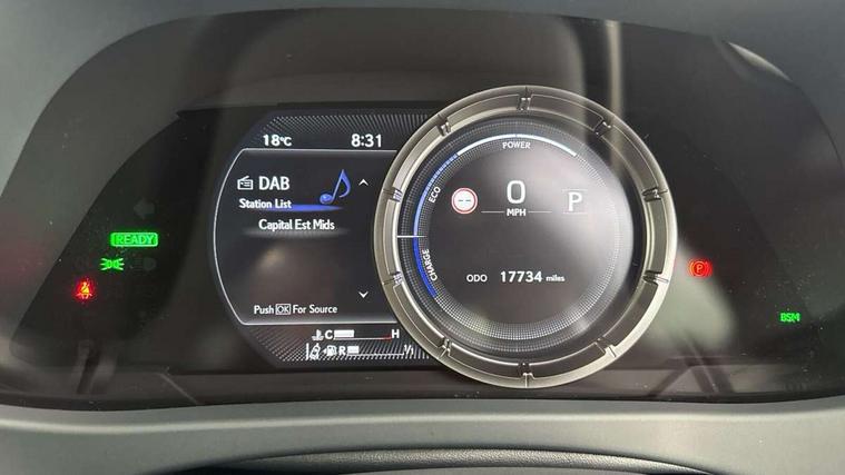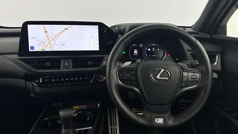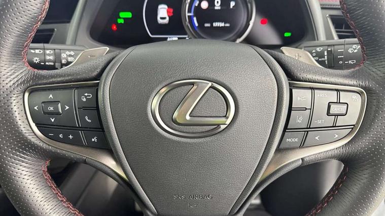 4 driving modes EV/Eco/Normal/Sport, 7" Lexus media display, 8" LFA inspired TFT meters with movable meter ring, Analogue clock with GPS function, Apple car play/Android Auto, Compatible mobile phone bluetooth with audio streaming, E-call, Electric power steering (EPS) with speed sensitive features, Front and rear parking sensor with intelligent clearance sonar, Lane change flasher function, Lexus link connected services, Lexus navigation system, Lexus safety systems + includes dynamic radar cruise control, pre collision system day and night, lane tracing assist, road sign assist, Push button start, Remote touch interface, Reversing camera with back guide lines, Trip computer, F Sport suspension tuning and rear performance dampers, Vehicle Dynamics Integrated Management (VDIM), Vehicle Stability Control (VSC), 2 front USB and 2 rear USB charging points, 6 speakers, AM/FM and DAB radio, AUX socket with VTR compatibility, CD player, Acoustic windscreen, Aero stabilising arch mouldings, Aero stabilising rear lights, Aero ventilated wheels, Aluminium roof rails, Auto dimming interior rear view mirror, Bi-LED (low and high beam) headlights with Auto High Beam (AHB), Black roof drip mouldings, Body adhesive, laser screw welding and laser brazed roof structure, Body coloured bumpers, Colour coded wheel arches, Electric adjustable/heated door mirrors, F SPORT exterior styling consists of black Mesh front grille, enhanced side rockers, metallic coated front bumper and F SPORT badging, Front and rear one touch power windows, with anti-jam protection, Headlight cleaners, LED cornering headlights, LED daytime running lights, LED front and rear fog lights, LED tail lights, LED third brake light, Privacy glass, rear doors and tailgate, Rain sensor windscreen wipers, Rear side wing doors, Rear wiper, Shark fin roof aerial, Single hidden exhaust pipe, Towing preparation, Variable front intermittent wipers, 12V accessory port centre console and luggage compartment, 2 cup holders in the front and rear centre console, 2 way electrical lumbar adjustment for driver, 2 x folding shopping bag hooks in boot, 2 x sun visors with vanity mirror and lamp, 3 seat bench in 2nd row, 4 x tie down hooks in the boot, 5 headrests, 60/40 split folding rear seat, 8 way driver/passenger electrically adjustable front seats, Active sound control, Card holder installed in driver and passengers sun visors, Centre armrest with storage, Driver and passenger door pocket, Dual zone electronic climate control + Nano-E humidity sensor, F Sport aluminium sports pedals, F SPORT dimpled leather gear lever, F SPORT front seat headrest adjustable forwards and backwards, F Sport interior styling, F Sport leather steering wheel with paddle shifts, Fabric/Tahara leather upholstery, Glovebox, Heated steering wheel, Illuminated entry system, LED interior illumination, Map pockets in the rear of passenger's front seat, Rear air vents with 2 USB chargers, Rear armrest with 2 cupholders, Single front passenger seat, Storage tray under audio panel, Textile carpet mats, Tilt/reach adjustable steering column, Under deck storage, Under desk side storage, 2 x Isofix child rear seat restraints, 3x3 point rear seatbelts, Anti-lock braking system (ABS), BAS (Brake Assist System), Driver and front passenger 2 stage airbag, Driver and front passenger knee airbag, Driver/front passenger side airbags, EBD - Electronic brakeforce distribution, ECB (Electronically Controlled Brake System), Electric child locks, Electric parking brake, Front adjustable seatbelt anchor points, Front and rear curtain shield airbags, Front outer seatbelt+pre-tensioners, force limiter+tension reduction: 3-point with active safety link to PCS, Hill start assist control (HAC), Passenger airbag cut-off device, Rear outer seatbelt+pre-tensioners, force limiter+tension reduction: 3-point with active safety link to PCS, Centre belt w/o pre tensioner+force limiter, Secondary Collision Brake (SCB), TRC (Traction Control), Tyre pressure warning, 2 x remote key fobs, Anti theft system : Alarm instruction sensor, glass breakage sensor and engine immobiliser, Locking wheel nuts, Remote central door locking, Speed sensitive auto door locking, Two motion door lock with double lock, VIN Window etching, 18" F Sport alloy wheels with run flat tyres,