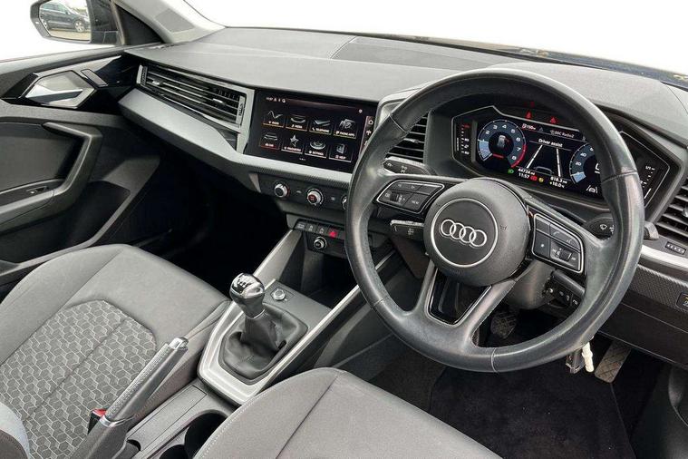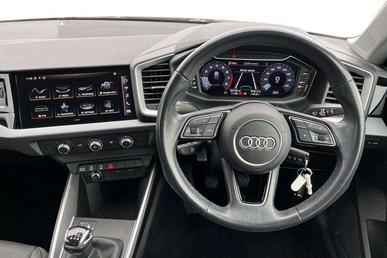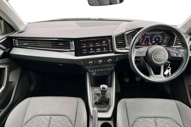 10.25" Digital instrument cluster display classis style instrument dials + speed, odometer, time, outside temperature, telephone menu + fuel level warning, Audi drive select - power steering assistance + engine, Audi smartphone interface with connect compatible smartphone via USB directly MMI display + Nav, music, third party apps controlled via MMI controller, Automatic start/stop system, Bluetooth interface, Cruise control, Driver's information system, Electromechanical power steering, Emergency e-call, Lane departure warning system, Rear parking sensor, Service interval indicator, Speed limiter, Voice control system, Washer fluid level indicator, Dynamic suspension, 2 x USB type C connection points, 6 passive loudspeakers, DAB Digital radio, MMI radio plus with 10.1" colour MMI display screen and MMI touch, Auto dimming rear view mirror, Body coloured bumpers, Body coloured door mirrors, Electric front and rear windows, Electrically adjustable, heated, folding door mirrors with integrated LED side indicator, Front side air inlets in grained matt black and C frame in anthracite black, Heat insulating glass windscreen and side windows, Heated rear windscreen, High level LED brake light, LED headlights with LED rear lights + dynamic rear indicators + headlight adjustment and high beam, turning light + LED daytime running lights, Radiator grille and rear diffuser in matt anthracite black, Radiator protective grille frame in matt aluminium silver, Rain and light sensors, Rear fog lights, Rear side wing doors, Rear wiper, Side front spoiler lips in grained matt black, 12V socket in centre console with two cup holders, 3 rear seats with headrests, 3 seat bench in 2nd row, 3 spoke leather multifunction plus steering wheel, 40:60 Split folding rear seat or folded fully, Black front and rear floor mats, Door sill trims with aluminium inlay, Driver and passenger seat with manual height adjust with forward and backwards adjustment, Front head restraints, Front passenger seat, Grey cloth headlining, Height and reach adjustable steering wheel, ISOFIX child seat mounting for front passenger and outer rear seats including top tether attachment point of outer rear seats, Leather gear knob with aluminium trim, Leatherette handbrake grip, Luggage compartment light with front and rear reading lights, Manual air conditioning, Manually adjustable lumbar support in front seats, Novum cloth upholstery with front sport seats, Luggage compartment pack - A1, 3x3 point rear seatbelts, Audi pre-sense front with pedestrain and cyclist recognition, Brake assist function, Driver and front passenger airbag with front side and head airbags, Electronic Stability Control including ABS, EBD, ASR and EDL, Front passenger airbag deactivation switch, Hill hold assist, Manual rear child locks, Seatbelt height adjustment for front seats, Seatbelt monitoring, Tyre pressure warning light, Warning triangle and first aid kit, Anti theft alarm, Anti theft wheel bolts and loose wheel warning, Immobiliser, Remote central locking with 2 foldaway keys, Aluminium trim for control switches, air vents and digital instrument cluster, Black dashboard, Silver grey accent areas including air vents, door handle recesses and centre console in diamond paint finish, Slate grey inlays polygon structure in fine paint finish,