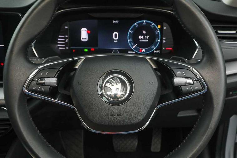 1x USB Type C port in rear view mirror (charging only), 2x USB Type C ports in rear of front centre armrest (charging only), Bluetooth system, Boot lid release from inside vehicle (electrically), Columbus satellite navigation with 10" touchscreen display, Driver fatigue sensor, eCall emergency system, Electro-mechanical power steering, Front and rear parking sensors with manoeuvre assist, Front assist system, Speed limiter, Turn Assist, Virtual Cockpit - 10.25" digital display, Voice control system, Wireless SmartLink for Apple Car Play, 2x USB Type C ports (for charging and data transfer), 8 Speakers, DAB Digital radio, Aero front windscreen wipers with intermittent function, Black roof rails, Black window surrounds, Body colour door mirrors and handles, Chrome grille surround, Dimming rear view mirror, Electric front and rear windows, Electrically adjustable and heated door mirrors, Heated rear windscreen, High level third brake light, Ice scraper in fuel cap, Rain and light sensors, Rear fog light on one side, Rear side wing doors, Rear spoiler, Rear window wiper, 3 seat bench in 2nd row, 4 foldable roof handles, Chrome inner door handles, Climatronic dual-zone electronic air conditioning, Cloth upholstery, Front centre armrest, Front head restraints, Grey headlining, Height adjustable driver and front passenger seat with lumbar support, Illuminated glovebox, Leather trimmed gearshift lever, Luggage compartment lighting with two side lamps, Parcel shelf - rolling, Satin black textured with artificial stiching in dash board pads, Single front passenger seat, Sunglasses storage, Textile floor mat set, Ticket holder, Two-spoke leather multi function steering wheel with paddles, Umbrella in door panel, Unsplit rear bench seat and split folding backrest, 3 point front/outer rear seatbelts+pre-tensioners, Alarm with interior monitoring, tilt sensor and back up horn, Automatic door unlocking in case of crash, Automatic fuel cut off in case of crash, Automatic warning lights in case of emergency braking, Curtain airbags and front side airbags, Driver and front passenger airbags, Drivers knee airbag, Electronic parking brake, ESC including ABS, EBV, MSR, ASR, EDS, HBA, DSR, Front central airbag, Hill hold control, Hill start assist, ISOFIX on front passenger seat and outer rear seats, Manual rear child locks, Passenger airbag deactivate switch, Pro active services, Rear disc brakes, Two tone horn, Tyre pressure monitor, Visual and acoustic seat belt reminder, Warning reflectors in front door, Door locks with immobiliser, Keyless start/stop, Remote central locking, Aluminium decorative inserts,