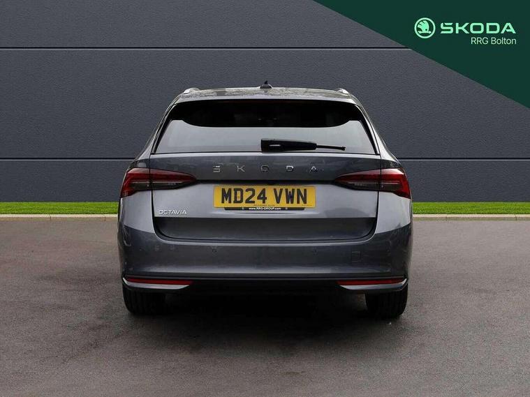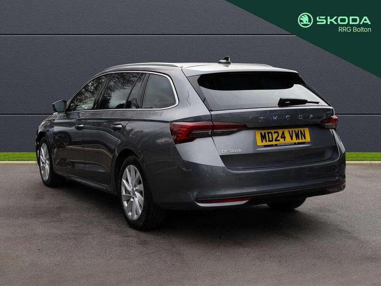 1x USB Typc C port in rear view mirror, 4x USB Type C ports - 2x in front centre console and 2x in rear (45W), Drive mode selection, Driver fatigue sensor, eCall emergency system, Electro-mechanical power steering, Front and rear parking sensors with manoeuvre assist, Front assist system, Traffic jam assist, Traffic sign recognition, Turn Assist, Virtual Cockpit - 10.25" digital display, Voice control system, Wireless charging (15W) with cooling function, Wireless SmartLink for Apple CarPlay and Android Auto, 13" touchscreen display with navigation, 8 Speakers, DAB Digital radio, Aero front windscreen wipers with intermittent function, Auto dimming rear view mirror, Body colour bumpers, Body colour door mirrors and handles, Chrome grille surround, Chrome roof rails, Chrome strip in lower front bumper, Chrome window surrounds, Driver side auto-dimming door mirrors, Electric front and rear windows, Heated rear windscreen, High level third brake light, Ice scraper in fuel cap, LED daytime running lights, Logo projection in front doors, Preparation for tow bar, Rain and light sensors, Rear fog light on one side, Rear privacy glass, Rear side wing doors, Rear spoiler, Rear window wiper, Sunblinds for rear side windows, 12 volt socket in boot, 3 rear headrests, 3 seat bench in 2nd row, 4 foldable roof handles, Dual zone air conditioning, Front head restraints, Heated front seats, Illuminated glovebox, Interior door handles in dark chrome, Jumbo Box storage, Luggage compartment lighting x2 lights, Mechanical rear seat release from boot, Single front passenger seat, Steering wheel in black leather with black stitching, Storage compartments in left and right of boot, Sun visors with mirrors, Sunglasses storage, Ticket holder, Umbrella in door panel, Unsplit rear bench seat, split folding backrest with centre armrest with cupholder, Waste bin in door panel, Assisted drive package - Octavia, Comfort package - Octavia Estate, Family package - Octavia, Light and view package plus - Octavia, Lounge Design Selection pack - Octavia, Simply clever package premium with Storage compartment under passenger seat - Octavia, Winter package plus - Octavia, 3x3 point rear seat belts, Alarm with interior monitoring, tilt sensor and back up horn, Curtain airbags and front side airbags, Driver and front passenger airbags, Drivers knee airbag, Electronic parking brake, ESC including ABS, EBV, MSR, ASR, EDS, HBA, DSR, Front central airbag, Hill hold assist, ISOFIX on front passenger seat and outer rear seats, Passenger airbag deactivate switch, Three point seat belts in front and rear, Two tone horn, Tyre pressure monitor, Visual and acoustic seat belt reminder, Warning reflectors in front door, Anti-theft wheel bolts, Keyless start/stop, Remote central locking, Chrome air vent surrounds, 17" Mensa aero alloy wheels, Tyre repair kit,