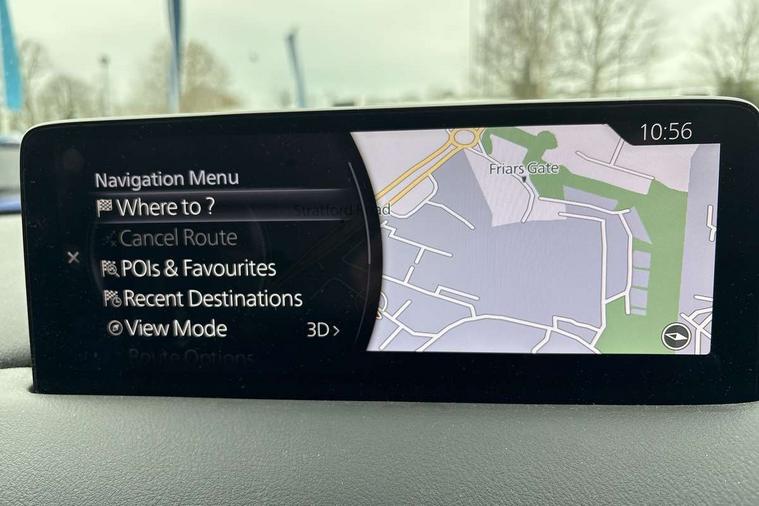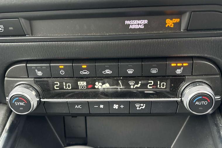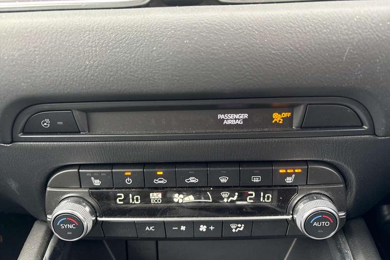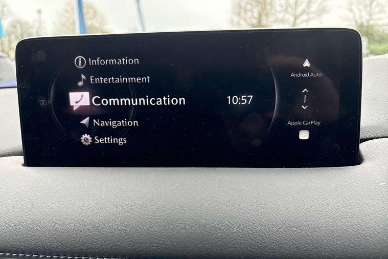 10.25" display with Mazda Connect infotainment, 7" colour TFT display, Advanced blind spot monitoring, Bluetooth connectivity with voice control, Collision prevention assist, Connected services, Cruising Traffic Support, Drive mode selector, Electric power steering, Emergency stop signalling system, Engine start/stop button, Forward collision warning, Front and rear parking sensors, Integrated navigation system, Intelligent speed assist, Lane departure warning system, Lane keep assist, Power liftgate, Qi wireless phone charging, Radar cruise control with Stop and Go, Rear cross traffic alert, Reversing camera, Service indicator, Traffic sign recognition (TSR), Trip computer, Windscreen projected colour active driving display (HUD) with memory, Wireless apple car play/android Auto, Cylinder Deactivation, i-stop, AM/FM radio, Bluetooth audio streaming, Bose premium sound system with 10 speakers, DAB Digital radio, Multimedia Commander including separate volume dial, Steering wheel mounted audio controls, Adaptive front lighting system, Auto dimming rear view mirror, Automatic headlights, Black inlay dashboard panel, Body colour door mirrors, Body colour roof spoiler, Body coloured front and rear black lower bumper mouldings, Coming/leaving home lighting function, Door mirror integrated indicators, Dual chrome tailpipes, Dusk sensitive headlamps, Electric front/rear windows with one touch auto up/down, Front grille in gloss black finish, Front grille in gloss black finish with chrome signature wing, Gloss black B and C pillars garnish, High beam assist, Intermittent rear wash/wipe, LED auto levelling, LED daytime running lights, LED front fog lights, LED Headlights, LED third brake light, Power folding and heated door mirrors, Power tilt/slide sunroof, Privacy glass (rear side windows only), Rain sensing front wipers, Rear side wing doors, Satin black side mouldings, Scuff plates, Shark fin antenna, Signature LED rear combination lights, Variable intermittent front wash/wipe, Vinyl with wood grain metal inlay door trim panel, Windscreen wiper de-icer, 12v electrical power outlet, 3 seat bench in 2nd row, 3 stage heated front seats, 40:20:40 Karakuri fold-flat seat system, 6 way electric adjustable passenger seat, 8 way electric driver seat with lumbar support + memory, Cargo room flat floor board with waterproof undertray, Driver seat power slide, recline and height adjustment, Driver, Front passenger and two rear grab handles with coat hooks, Driver/passenger front seatback pockets, Driver/passenger sunvisors + illuminated vanity mirrors (drivers with ticket holder), Dual zone climate control, Folding centre armrest with 2 cup holders, Front and rear door pockets, Front centre storage with two cupholders, Front passenger seat power slide, recline and height adjustment, Heated steering wheel, Humidity sensor, Illuminated glovebox, Interior dome light with integral spotlight, ISOFIX child seat anchorage points attached on outer rear seats, Karakuri tonneau cover, Leather upholstery, Leather wrapped steering wheel and gear knob, Light roof lining, Luggage compartment LED lighting, Luggage compartment power outlet, Paddle shifts, Rear air vents, Rear headrests, Rear seat recline, Roof mounted sunglasses holder, Single front passenger seat, Three height adjustable head restraints, Tilt/height adjustable steering wheel, USB Connectivity (2x front Type-C, 2x rear Type-B), White interior LED illumination lighting, 3 point front seatbelts with pre-tensioners, 3 rear 3 point seatbelts, ABS, Advanced Smart City Brake Support - SCBS, Child locks on rear doors, Driver and front passenger side airbags, DSTC-Dynamic Stability and Traction Control, Dual front airbags, Electronic brake force distribution, Electronic parking brake with auto hold, ESP, Front and rear curtain airbags, Front passenger airbag deactivation, G-Vectoring control, Hill hold assist, Seatbelt reminder front and rear, Single stage passenger airbags, Smart brake support with forward obstruction warning, Tyre pressure monitoring system, Automatic door locking when moving off, Deadlock, Immobiliser, Power door locks, Remote central locking, Smart keyless entry, Thatcham Cat.1 alarm, 19" diamond cut black alloy wheels, Tyre repair kit,