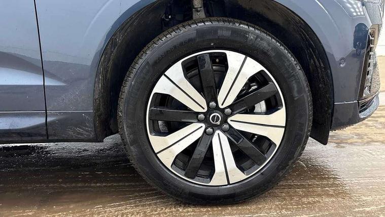 12.3" Progressive Driver Display, 360 degree surround view parking camera with side proximity sensors, 9" centre console touch screen, Adjustable steering wheel force, Apple carplay (wired), Bluetooth handsfree system, Drive mode settings, Driver alert control with lane keeping aid, Driver assistance (pilot assist and adaptive cruise control), Emergency services call system, Front and rear park assist, Google Automotive Services, Oncoming Lane Mitigation, PAS, Service interval indicator, Speed limiter, Speed sensitive steering, Trip computer, Volvo on call with App, Wireless/Inductive Mobile Phone Charging, 3.7 kW monophase on board charger, 7m 10amp charge cable with 3 pin plug and 6m 3 phase 16amp type 2/mode 3 charge cable, 8 speed automatic transmission with start/stop + manual change functions, Dynamic chassis, Electric rear axle drive, Recharging port located in nearside front wing, DAB Digital radio, Low speed exterior sound speaker, Premium Sound by Harman Kardon, dirac unison, dolby pro logic II surround sound, 13 speakers/600W output and fresh air subwoofer, Steering wheel remote infotainment controls, Adaptive brake lights with high level LED brake lights, Auto dimming interior + exterior mirrors, Automatic headlight levelling system, Automatic LED Headlights + Active high beam incorporating daytime running lights, Electric adjustable/heated/auto power folding door mirrors, Electric front+rear windows, Heated front windscreen, High gloss black door mirrors and window surround, High gloss black front and rear bumper decoratives, High gloss black mesh front grille with high gloss black surround, Home safe and approach lighting, Integrated roof rails in high gloss black, Power glass tilt and slide panoramic sunroof with sun curtain, Puddle lights, Rain sensor with automatic windscreen wiper activation, Rear side wing doors, Rear wiper, Roof antenna, Roof spoiler, Tinted windscreen, Visible VIN plate, 12V socket in front tunnel console and luggage compartment, 2 zone electronic climate control with Clean zone air quality system and pollen filter, 3 seat bench in 2nd row, A-pillar parking ticket holder, Air purifier particulate matter (PM) 2.5 filter, B Pillar ventilation, Bright metal luggage threshold, Centre console cupholders and storage, Charcoal floor mats, Front and rear courtesy lights, Front and rear door pocket illumination, Front cupholder illumination, Front footwell illumination, Front reading lights, Front seat cushion extensions, Glovebox compartment with illumination, Head restraints for all seats, Heated front seats, Heated steering wheel, Height/reach adjustable steering column, Illuminated luggage compartment, Illuminated vanity mirrors + ticket holder, ISOFIX attachment on outer rear seats, Load cover, Load protection net, Multi directional lumbar support, Power driver seat with memory + exterior mirrors memory, Power height adjustable passenger seat, Rear armrest with cupholder, Rear footwell and front and rear side step illumination, Rear seat concealed storage, Recharge aluminium tread plates, Single front passenger seat, Tailgate illumination and ambient door lighting, Underfloor stowage compartment, Versatile split folding rear seat - 60/40, 5 three point seatbelts, City safety with steering support with Pedestrian + cyclist + front collision warning with full auto brake and rear auto brake, Drivers knee airbag, Dual stage driver/passenger airbags, Electronic parking brake with auto hold, First aid kit, Front seats SIPS airbags, Hill descent control - Off-road drive mode, Hill start assist, IC (Inflatable Curtains) - Full Length, Passenger airbag cut-off device, Power child locks on rear doors, Road sign information display, Run off Road Mitigation, Run off Road Protection, Seatbelt reminder and pretensioners, SIPS (Side Impact Protection System), Slippery road and hazard light alert, Stability and Traction Control with Spin control, Engine Drag Control and Corner Traction Control, Tyre pressure monitoring system, Vehicle deceleration control with Anti-lock Brake System, Electronic Brake Distribution and Emergency Brake Assist, Warning triangle, WHIPS whiplash protection system - front, Anti-theft alarm including immobiliser/volume sensor + level sensor, Care key with user defined top speed, Key integrated remote control central locking + fuel flap with deadlocking system and auto open/close power windows, Keyless Drive (includes Keyless Entry and Keyless Start) with Handsfree Tailgate Opening/Closing, Locking wheel nuts, Private locking for tailgate, Tyre sealant kit + 12v compressor,