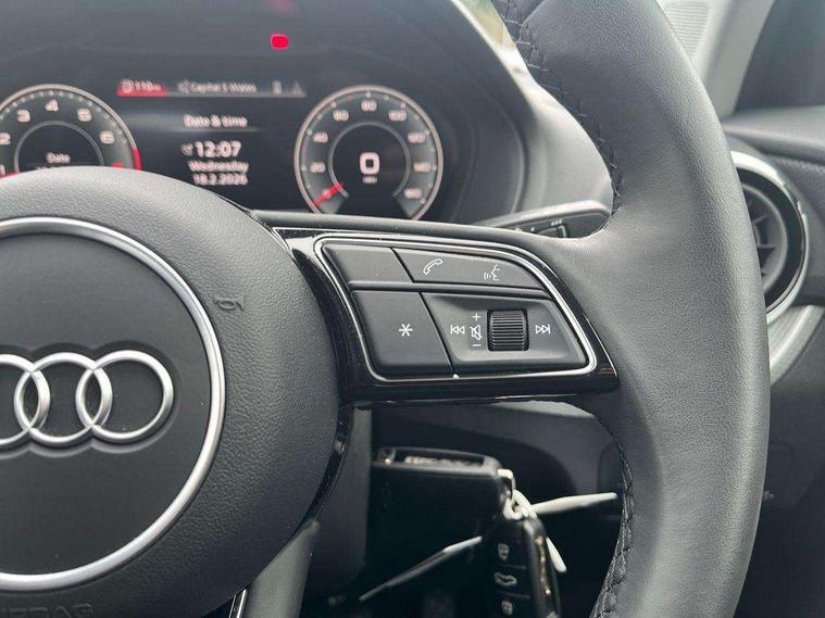 3D map display, Audi connect navigation and infotainment includes innovative services, Audi connect remote and control connects your vehicle to your smartphone, Audi drive select: S tronic - power steering assistance + engine + gearshift (modes: comfort, auto, dynamic, efficiency, individual), Audi smartphone interface - Apple carplay/Android Auto, USB connect, 2xSDXC card readers, voice control for navi, telephone, music and 3rd party apps, Audi virtual cockpit, Automatic start/stop system with recuperation, Bluetooth interface includes bluetooth audio streaming, Camera based traffic sign recognition, Cruise control, Distraction and Fatigue warning, E-call, Jukebox hard drive memory for music (10GB), Lane departure warning, MMI navigation plus with 8.8" touchscreen, Natural voice recognition, Power operated tailgate, Progressive steering, Rear parking sensors, 6 passive loudspeakers, DAB Digital radio, USB type C port, Auto dimming rear view mirror, Black window trims, Body colour door mirrors, Contrast bumpers in Manhattan grey, Electrically adjustable, folding, auto dimming and heated door mirrors with integrated LED side indicators, Front windscreen with grey tinted sunband, LED daytime running lights, LED headlights with dipped beam, high beam, position lights, indicators, LED third brake light, Rear side wing doors, Rear wiper, Side skirts in manhattan grey, Variable front intermittent wipers, Wheel arch trims in manhattan grey, 12V socket in front, 3 seat bench in 2nd row, 3 spoke leather trimmed multi-function steering wheel with height and reach adjustable, 4-way electric lumbar support for front seats including manual seat height adjustment for both front seats, 60/40 split folding rear seat bench, Black carpets, Front and rear head restraints, Front centre armrest, Front sport seats, Front/rear floor mats, Grey cloth headlining, Height/reach adjust steering wheel, Index cloth upholstery, ISOFIX child seat mounting in front passenger and rear outer seats, Manual air conditioning, Single front passenger seat, 3x3 point rear seatbelts, 6 airbags - Front, curtain and front side airbags, Electromechanical parking brake, Electronic stabilisation control including ABS, ASR and EDL, Front passenger airbag deactivation, Hill hold assist, Pre-sense front with pedestrian recognition, Seatbelt monitoring, Tyre pressure warning light with visual and acoustic warning, Warning triangle and first aid kit, Anti theft wheel bolts, Electronically operated child locks, Remote central door locking, Thatcham category 1 alarm, Aluminium interior element, Black dashboard, Gloss black centre console, Inlays in silver grey diamond paint, Tool kit,