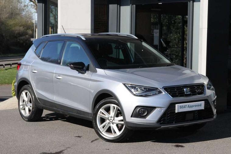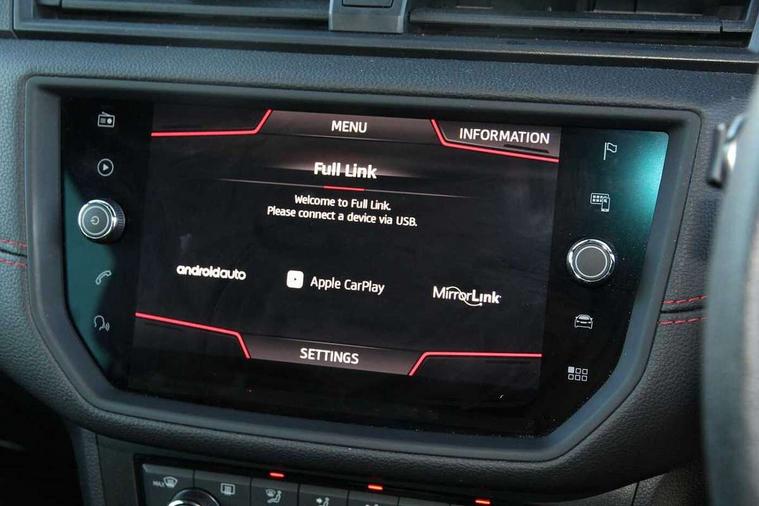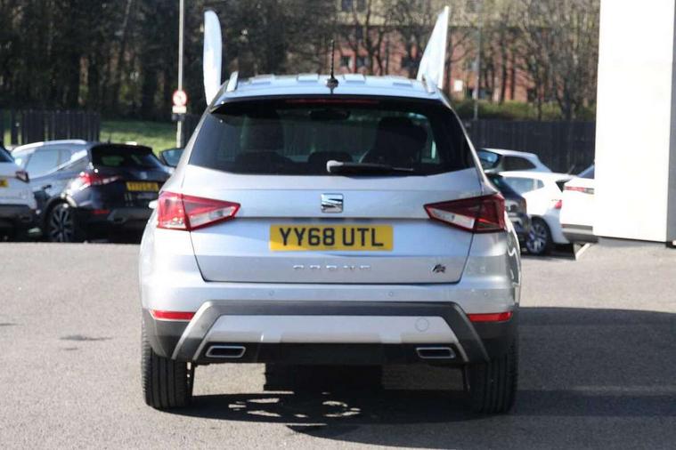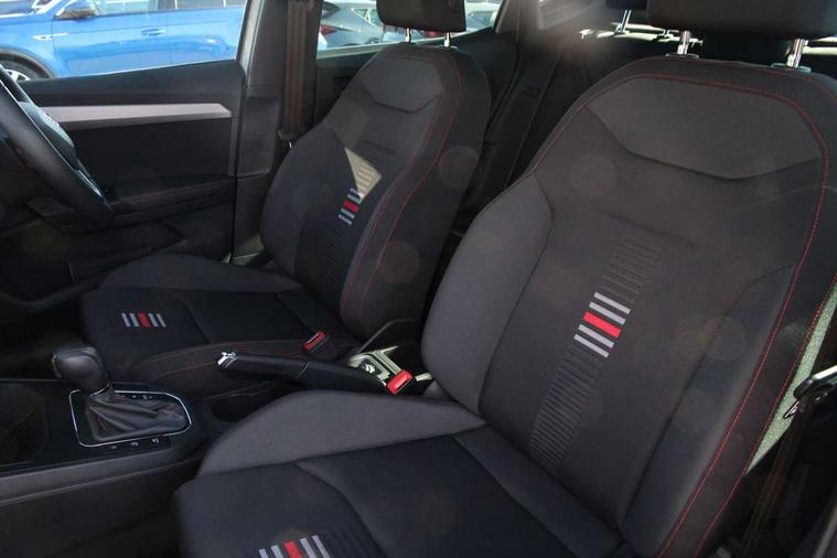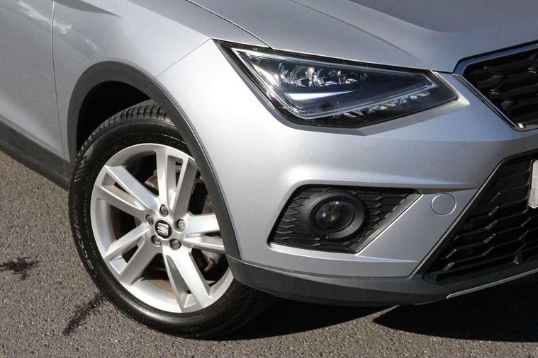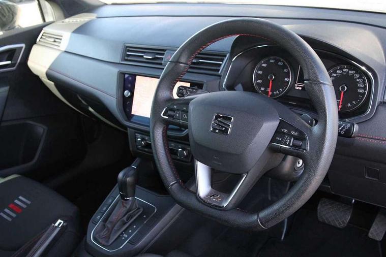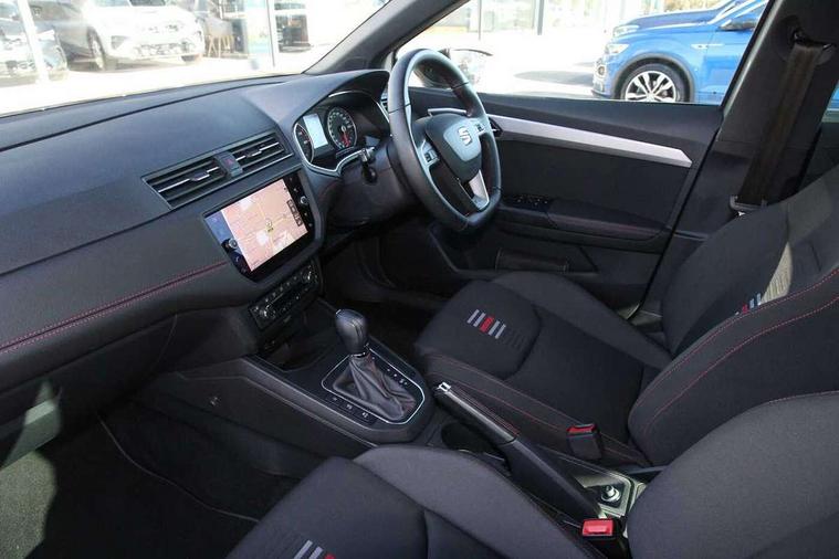 'Lights On' Reminder warning buzzer, Cruise control, Digital clock, Electric speed sensitive power steering, Front assistant collision mitigation, Full Link Smartphone Integration with Mirror Link, Apple Car Play, Google Android Auto, Low fuel warning light, Outside temperature display, Rear parking sensor, RPM counter, SEAT Drive profile, Trip computer, Sports suspension, 6 speakers, Bluetooth interface for hands free and audio streaming, DAB Digital radio, SEAT USB media cable, Steering wheel mounted audio controls, Anti theft roof antenna, Auto dimming interior rear view mirror, Automatic activation of hazard warning lights, Automatic headlights, Body coloured bumpers, Body coloured door handle inserts, Chrome grille surround, Chrome roof rails, Chrome window surround, Coming/leaving home lighting function, Dark tinted rear windows, Electric front/rear windows with one touch/auto up/down, Electrically adjustable and heated door mirrors, Electrically folding wing mirrors, Front fog lights, Full LED headlights, LED daytime running lights, LED licence plate lighting, LED tail lights, Rain sensor windscreen wipers, Rear fog lights, Rear window wash/wipe, Roof colour door mirrors, Twin exhaust pipes, Visible VIN plate, Windshield wiper with intermittent control and potentiometer, 2 cupholders, 3 rear height adjustable headrests, 60/40 split folding rear seat, Active head restraints, Ambient interior lighting, Card holder, Double boot floor, Driver and passenger sunvisors, Driver/front passenger seat height adjustment, Dual zone climate control, Dust/pollen filter, Flat bottomed steering wheel, Footwell ambient lighting, Front courtesy lights, Front reading light, Gear shift indicator, Gearshift paddles on steering wheel, Height/reach adjustable steering column, Illuminated boot, Instrument lighting with brightness control, Isofix attachments on outer rear seats, Leather handbrake, Leather steering wheel and gear knob, Multi-colour ambient interior lighting, Nora cloth upholstery, Sports seats, Connectivity pack plus - Arona, 3 point seatbelts on all rear seats, ABS+EBA, Child locks on rear doors, Driver/Front Passenger airbags, Electronic stability control, Front and rear seatbelt reminder, Front side/curtain airbags, Height adjustable active front headrests, Hill hold control + Tyre Pressure monitor, Multi-Collision braking, Passenger airbag deactivate switch, Tiredness recognition system, Traction control, 2 folding remote keys with window open/close function, Alarm with back-up horn, Immobiliser, Locking wheel bolts, Remote central locking + deadlocks, Tow away protection, Interior chrome line trim, 17" Dynamic alloy wheels,