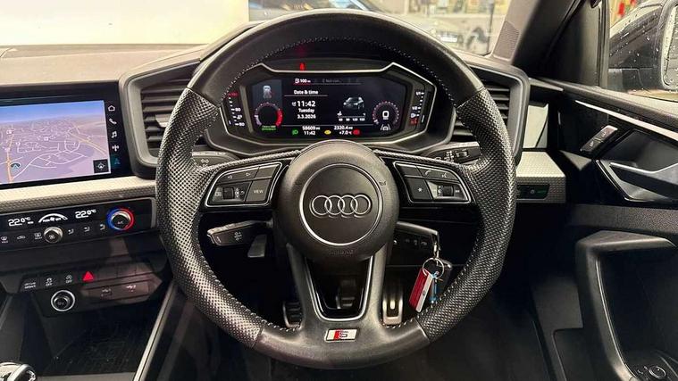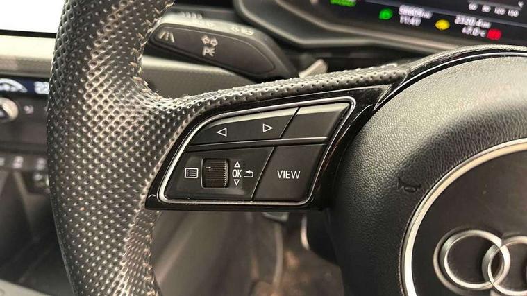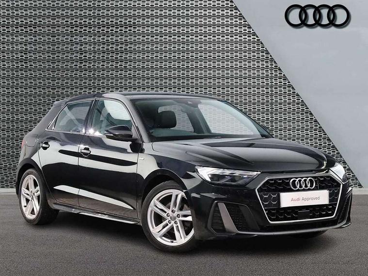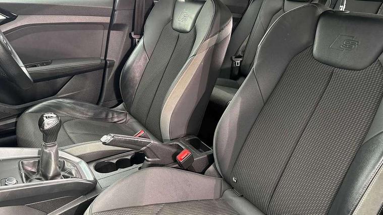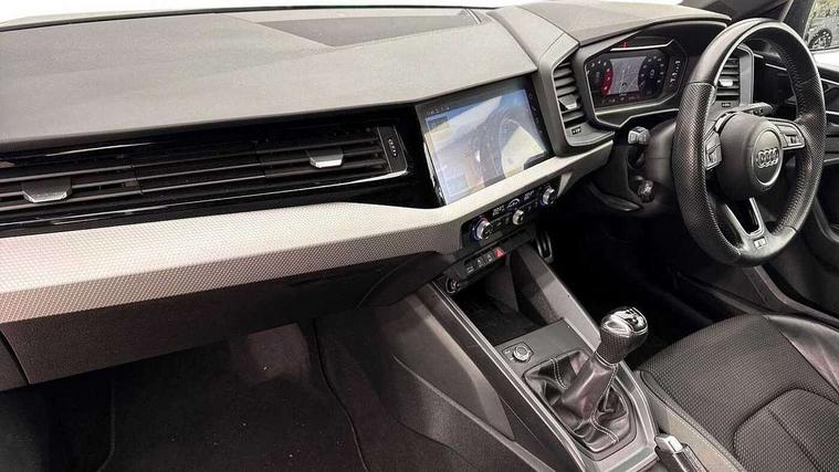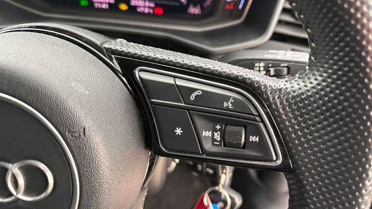10.25" Digital instrument cluster display screen, Audi connect safety emergency and service including E-call, Audi drive select, Audi smartphone interface, Automatic start/stop system, Bluetooth interface, Driver's information system, Electromechanical power steering, Lane departure warning system, Service interval indicator, Speed limiter, Voice control system, Washer fluid level indicator, Sports suspension, 1 x SDXC card reader, 1 x USB type C and 1 USB type A charging points, Audi music interface, Bluetooth audio streaming, DAB Digital radio, MMI radio plus with 8.8" colour MMI display screen and MMI touch, Auto dimming rear view mirror, Body colour side sill mouldings, Body coloured bumpers, Body coloured door mirrors, Door sills with aluminium inlays and S Line logo, Electric front and rear windows, Front side air inlets in grained matt black and C frame in titanium black, Heat insulating glass windscreen and side windows, Heated rear windscreen, LED headlights with LED rear lights + dynamic rear indicators, Matt aluminium silver tailpipe trim, Matt black radiator grille frame, Matt platinum grey in front spoiler clip and rear diffuser clip, Rain and light sensors, Rear fog lights, Rear wiper, S line badges on front wings, S line exterior bumpers, S line roof spoiler, Side air inlet frames titanium black, Side front spoiler lips in grained matt black, 12V socket in centre console with two cup holders, 3 rear seats, Black cloth headlining, Driver and passenger seat with manual height adjust with forward and backwards adjustment, Front and rear black floor mats with contrast stitching in fine silver, Front head restraints, Height and reach adjustable steering wheel, ISOFIX child seat mounting in front passenger and rear outer seats, Leather gear knob with aluminium trim, Leatherette handbrake grip, Luggage compartment light with front and rear reading lights, Lumbar adjustment for front seats, Rear head restraints, Split folding rear seats, Stainless steel pedals, 3x3 point rear seatbelts, Audi pre-sense front with pedestrain and cyclist recognition, Brake assist function, Driver and front passenger airbag with front side and head airbags, Electronic Stability Control including ABS, EBD, ASR and EDL, Front and rear seatbelt reminder, Front passenger airbag deactivation switch, Hill hold assist, Seatbelt height adjustment for front seats, Seatbelt monitoring, Tyre pressure warning light, Warning triangle and first aid kit, Anti theft alarm, Anti theft wheel bolts and loose wheel warning, Immobiliser, Remote central locking with 2 remote folding keys, Aluminium trim for control switches, air vents and digital instrument cluster, Silver grey inlays polygon structure in diamond paint finish, Structured grey accent areas including air vents, door handle recesses and centre console in quartz paint finish,