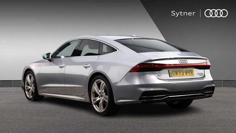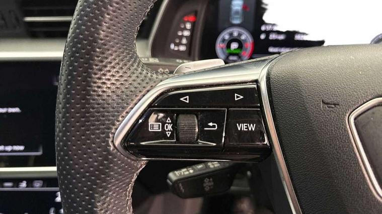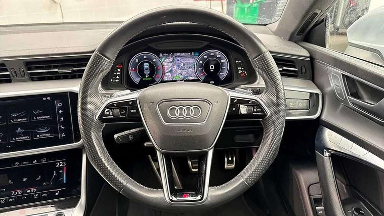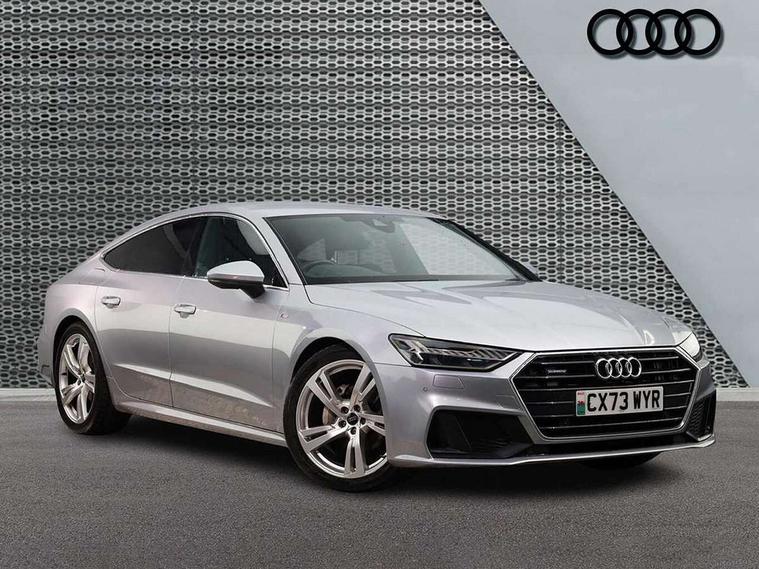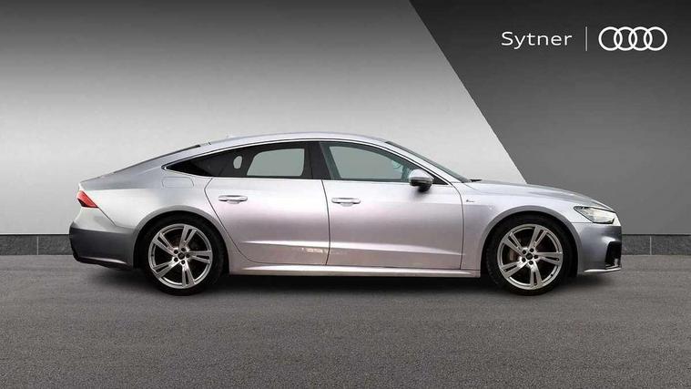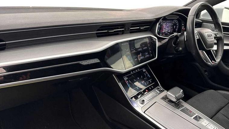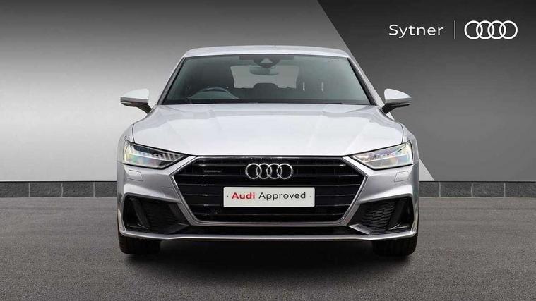 Audi connect safety and service (e-call), Audi connect with Amazon Alexa Integration, Audi drive select, Audi parking system plus - acoustic and visual park assist system for front and rear, Audi smartphone interface, Audi virtual cockpit - 12.3" high resolution LCD digital instrument cluster display, Automatic start/stop system with coasting functionality, Bluetooth interface, Colour driver's information system display, Electric boot lid release, Lane departure warning system, MMI nav plus with MMI touch + 10.1" and 8.6" HD haptic touch screen/3D city models/country information/online map/route info and personal route assist, Operating buttons in black, glass look with haptic feedback, Power operated tailgate, Progressive steering, Rear view camera, Service indicator, Voice control system, 24 litre AdBlue tank, Diesel particulate filter, Sports suspension, Audi music interface - 2 USB ports with charger and data functions, Audi sound system with 6 channel amplifier, 180 watt amplifying capacity and 10 loudspeakers including subwoofer, Auxiliary input socket, DAB digital radio module, Body coloured door mirrors, Coming/leaving home animations in front and rear, Frameless auto dimming interior rear view mirror, Front and rear electric windows, HD Matrix LED headlights with dynamic front and rear indicators, Headlight washers, Heat insulating darkened glass in side and rear windows, High gloss black radiator grille with chrome single frame surround, Privacy glass with side and rear windows, Rain and light sensors, Rear side wing doors, Rear wiper, Retractable rear boot spoiler, S line air inlet design with inlay in high gloss black, S Line badge on front fender, S line badge on front grille, S Line Black rear diffuser with chrome inlays and rear grille, S Line front and rear bumpers, S Line side skirts, Signature LED daytime running lights, Third brake light, Towbar preparation, Windscreen with heat-insulating glass, 2 zone deluxe electronic climate control, 4-way electric lumbar support, 40/20/40 split folding 3 seater rear seat bench with rear centre armrest, Black cloth headlining, Electrically adjustable front seats - driver seat with memory, Front and rear headrests, Front centre armrest, Heated front seats, Height/reach adjust steering wheel, Illuminated door sill trims with S logo, Illuminated sun visors with vanity mirrors, ISOFIX child seat mounting and top tether in front and outer rear seats with front passenger airbag deactivation, Leather gear knob, Leatherette upper instrument panel and door shoulders, Luggage compartment floor, Perforated leather steering wheel with contrast stitching, S line front and rear floor mats with contrast stitching, Single front passenger seat, Stainless steel pedals and foot rest, Tool kit and car jack, LED interior ambient lighting pack - A7, Non smoking pack - A7, 3 point seatbelts on all seats, Audi pre-sense front, Driver and passenger airbags, Electromechanical parking brake, Electronic stabilisation control including ABS, ASR and EDL, Extended pedestrian protection measures, Hill hold assist, Manual child lock in rear doors, Seatbelt monitoring, Tyre pressure warning light, Warning triangle and first aid kit, Anti theft alarm with tow away protection, Anti-theft wheel bolts and wheel loosening detection, Immobiliser, Keyless Go, Preparation for tracking system, Remote central locking, Dark matt brushed aluminium inlay,