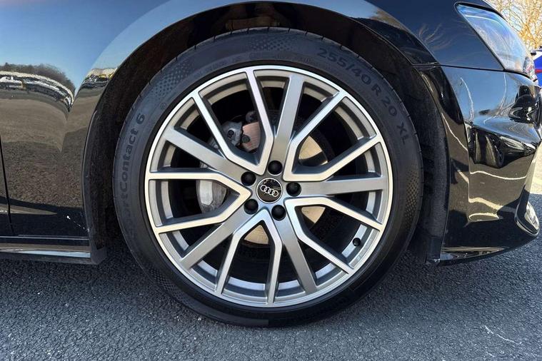 7" high resolution colour driver information display system, Audi connect safety and service (e-call), Audi connect with Amazon Alexa Integration, Audi drive select, Audi parking system plus - acoustic and visual park assist system for front and rear, Automatic start/stop system with coasting functionality, Bluetooth interface, Electric boot lid release, Lane departure warning system, Progressive steering, Rear view camera, Service interval indicator, Smartphone interface includes wireless Apple carplay/Android Auto, Voice control system, 12V Mild hybrid, 24 litre AdBlue tank, Diesel particulate filter, Quattro on demand, Sports suspension, Audi front music interface, Audi sound system, Auxiliary input socket, DAB Digital radio, USB connection, All weather LED headlights, Electric front/rear windows, Frameless auto dimming interior rear view mirror, Front intermittent wipers, Gloss black highlights on the exterior area of the Audi Single frame, Gloss black highlights on the front and rear bumpers, Gloss black highlights on the radiator grille, Gloss black highlights on the side windows trim strips, Headlight washers, Heat insulating darkened glass in side and rear windows, Heat insulating glass in windshield, LED rear lights, LED signature front daytime running light, LED third brake light, Matt black rear diffuser with diffuser strip and tailpipes in chrome, Matt black side air intake grille with inlay in matt aluminium, Privacy glass, Rain and light sensors, Rear boot, Rear side wing doors, 2 zone deluxe electronic climate control, 4 way electric lumbar support for driver and front passenger, 40/20/40 split folding 3 rear seat bench in 3 parts with rear centre armrest, Black cloth headlining, Black front and rear carpet floor mat, Black steering wheel insert, Electrically adjustable front seats with driver memory, Front centre armrest, Front head restraints, Heated front seats, Height/reach adjust steering wheel, Illuminated door sill trims with S logo, Illuminated sun visors with vanity mirrors, ISOFIX child seat mounting and Top Tether with front passenger airbag deactivation, Leather gear knob, Rear headrests, Single front passenger seat, Stainless steel pedals and foot rest, LED Interior Ambient Lighting Pack - A6, Non smoking pack - A6, Technology pack - A6, 3 point seatbelts on all seats, Airbags - Front side, front and rear including head, Audi pre-sense front, Black seatbelts, EBD - Electronic brakeforce distribution, Electromechanical parking brake, Electronic Stability Control (ESC) including ABS, ASR and EDL, Extended pedestrian protection measures, Manual child proof rear door locks, Seatbelt monitoring, Tyre pressure warning light, Warning triangle and first aid kit, Anti theft alarm with tow away protection, Anti-theft wheel bolts and wheel loosening detection, Immobiliser, Keyless Go, Remote central locking, Carbon twill inlays, 20" 5 V spoke star design Audi sport cast aluminium alloy wheels in matt titanium look,