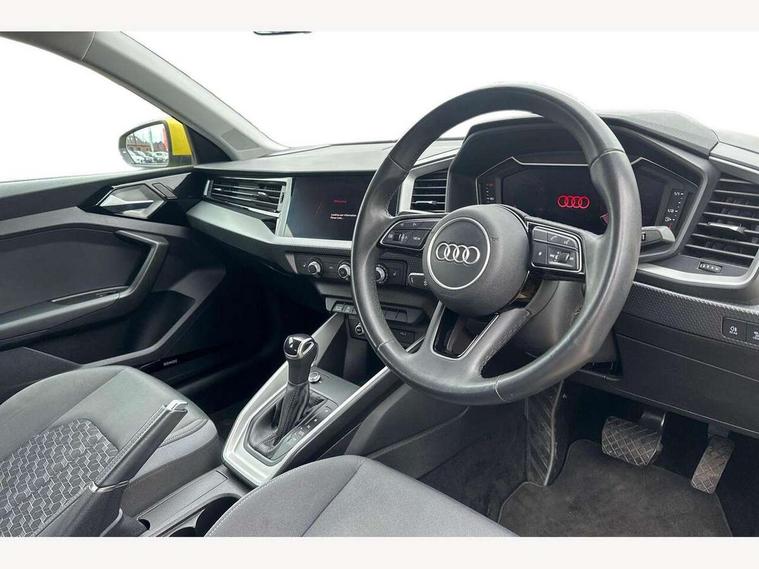 10.25" Digital instrument cluster display classis style instrument dials + speed, odometer, time, outside temperature, telephone menu + fuel level warning, Audi drive select - power steering assistance + engine + gear shift 3 preset modes (auto, dynamic, efficiency and an Individual mode), Audi smartphone interface with connect compatible smartphone via USB directly MMI display + Nav, music, third party apps controlled via MMI controller, Automatic start/stop system, Bluetooth interface, Cruise control, Driver's information system, Electromechanical power steering, Emergency e-call, Lane departure warning system, Rear parking sensor, Service interval indicator, Speed limiter, Voice control system, Washer fluid level indicator, Dynamic suspension, 2 x USB type C connection points, 6 passive loudspeakers, DAB Digital radio, MMI radio plus with 10.1" colour MMI display screen and MMI touch, Auto dimming rear view mirror, Body coloured bumpers, Body coloured door mirrors, Electric front and rear windows, Electrically adjustable, heated, folding door mirrors with integrated LED side indicator, Front side air inlets in grained matt black and C frame in anthracite black, Heat insulating glass windscreen and side windows, Heated rear windscreen, High level LED brake light, LED headlights with LED rear lights + dynamic rear indicators + headlight adjustment and high beam, turning light + LED daytime running lights, Radiator grille and rear diffuser in matt anthracite black, Radiator protective grille frame in matt aluminium silver, Rain and light sensors, Rear fog lights, Rear side wing doors, Rear wiper, Side front spoiler lips in grained matt black, 12V socket in centre console with two cup holders, 3 rear seats with headrests, 3 seat bench in 2nd row, 3 spoke leather multifunction plus steering wheel, 40:60 Split folding rear seat or folded fully, Black front and rear floor mats, Door sill trims with aluminium inlay, Driver and passenger seat with manual height adjust with forward and backwards adjustment, Front head restraints, Front passenger seat, Grey cloth headlining, Height and reach adjustable steering wheel, ISOFIX child seat mounting for front passenger and outer rear seats including top tether attachment point of outer rear seats, Leather gear knob with aluminium trim, Leatherette handbrake grip, Luggage compartment light with front and rear reading lights, Manual air conditioning, Manually adjustable lumbar support in front seats, Novum cloth upholstery with front sport seats, Luggage compartment pack - A1, 3x3 point rear seatbelts, Audi pre-sense front with pedestrain and cyclist recognition, Brake assist function, Driver and front passenger airbag with front side and head airbags, Electronic Stability Control including ABS, EBD, ASR and EDL, Front passenger airbag deactivation switch, Hill hold assist, Manual rear child locks, Seatbelt height adjustment for front seats, Seatbelt monitoring, Tyre pressure warning light, Warning triangle and first aid kit, Anti theft alarm, Anti theft wheel bolts and loose wheel warning, Immobiliser, Remote central locking with 2 foldaway keys, Aluminium trim for control switches, air vents and digital instrument cluster, Black dashboard, Silver grey accent areas including air vents, door handle recesses and centre console in diamond paint finish, Slate grey inlays polygon structure in fine paint finish,