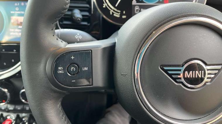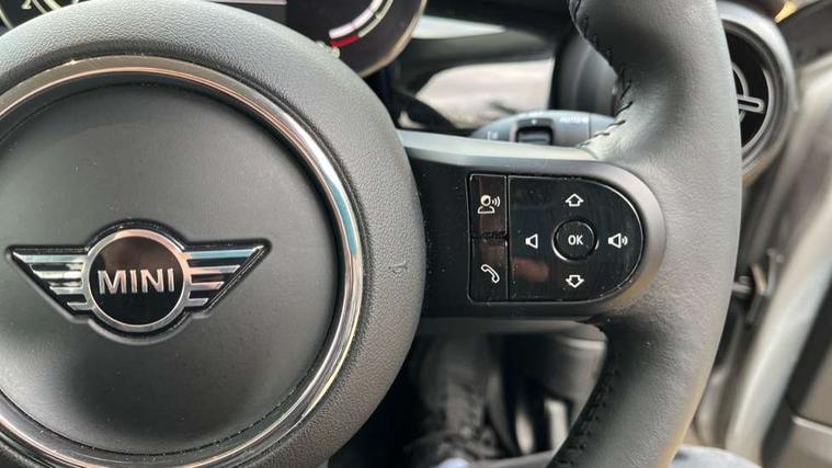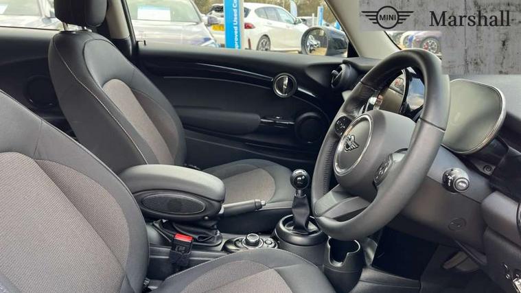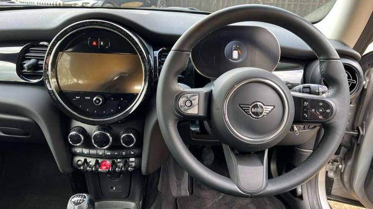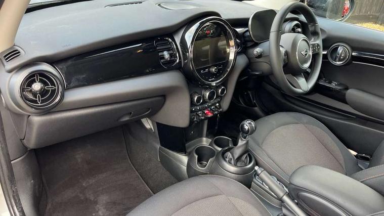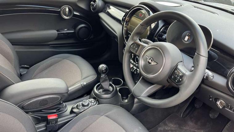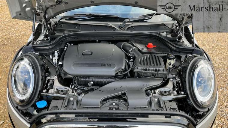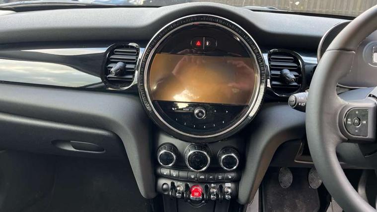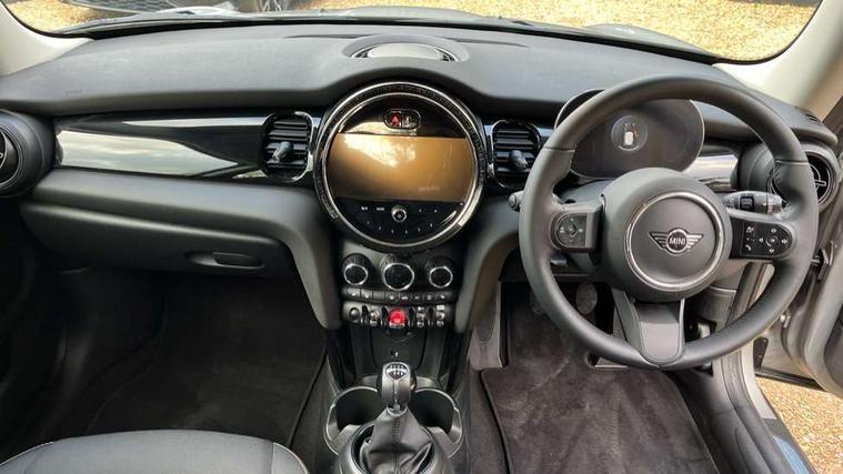 Apple CarPlay, Automatic start/stop function with brake energy recuperation, Compatible mobile phone bluetooth with audio streaming, Digital dashboard display, Electro-mechanical speed dependant steering assistance, Flexible car sharing preparation, Instrument cluster, Mini E-call, MINI TeleServices, On board computer, Service interval indicator, Double Vanos system, Fully variable valve control, High precision injection, Performance Control, 4 speakers in front door trims and underneath front seats, 8.8" touchscreen with LED ring, FM tuner and DAB digital radio, 3rd brake light, Automatic headlight activation switch, Body colour fuel filler cap, Chrome border high gloss black slats radiator grille, Dynamic brake lights, Electric front windows, Exhaust tailpipe on left with chrome finisher, Heated rear window, Heated windscreen washer jets, LED headlight with closed ring and daytime driving lights, Metal door sill strips with MINI imprint, Model logo Cooper on right of tailgate, Rain sensor window wipers, Rear fog lights, Rear LED lights with union jack design, Rear window wiper, Side scuttle panel with integrated indicator, Sun/heat protection glass, White indicator lenses, 12V Accessory socket in centre console, 2 seat bench in 2nd row, 4 lashing eyes in luggage compartment, 60/40 split folding rear seat, Ambient lighting, Chrome interior highlights, Cupholders, Front and rear head restraints, Front and rear isofix with front passenger airbag deactivation, Front floor mats in velour, Glove compartment, Height and length steering column adjustment, Interior lighting with 12 different colours across the dashboard, underneath door bezel with illuminated laser-engraved design on central display, Leatherette gearshift lever and handbrake gaiters, LED reading lights, vanity mirror lights, front foot well light and spotlight on front seats, Mechanical seat adjustment - forward/back & backrest for front seats and driver seat height adjust, Multifunction steering wheel, Passenger seat height adjuster, Satellite grey headlining including grab handles and clothes hooks, Single front passenger seat, Sport leather steering wheel with speed limiter and audio/communication controls, Storage compartments in doors, Sunvisors with vanity mirrors, Driving assistant pack - Mini Hatchback, Premium pack - Hatchback, 3 point seatbelts on all four seats, 6 Airbags - front, side, head and seat belt tensioners, Anti-lock braking system (ABS), DSC - Dynamic Stability Control, Front and rear disc brakes, Single tone fanfare horn, Tyre pressure monitoring system, Alarm system with tilt sensor, monitoring doors, bonnet interior and tailgate, Electronic vehicle immobiliser, Start/stop toggle with keyless go, Piano black interior trim, Tool kit, Tyre repair kit,