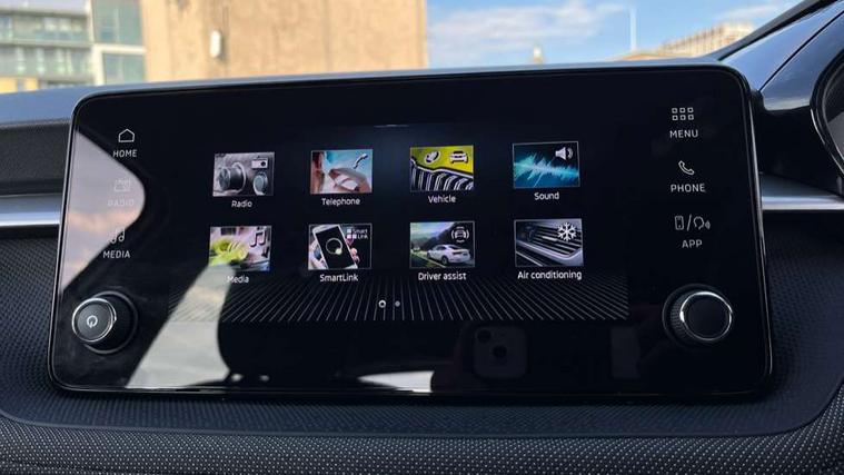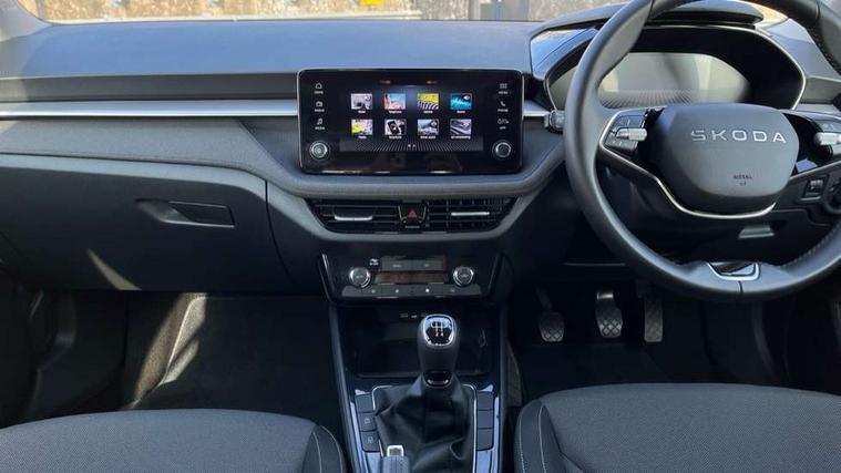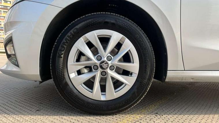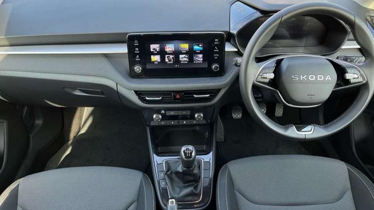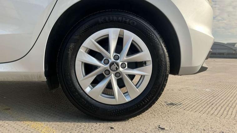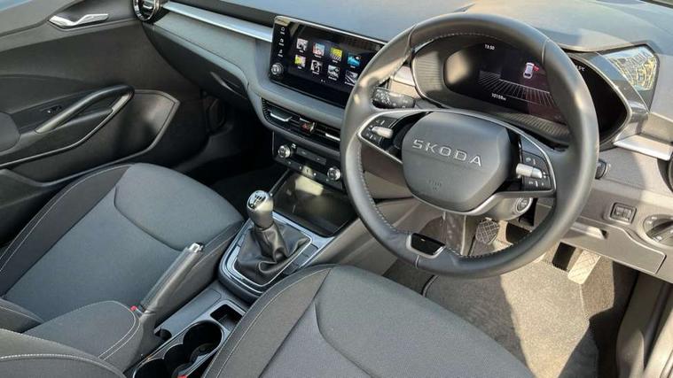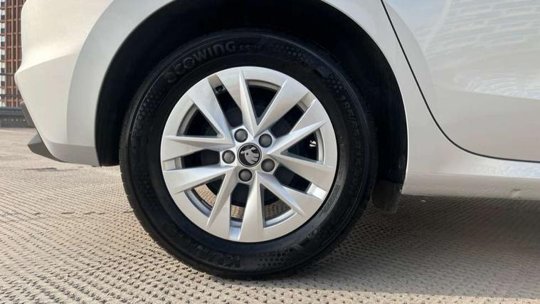 8" Digital instrument display, Advanced driver attention and drowsiness monitor, Bluetooth connection, Electromechanical power steering, Exterior temperature gauge, Service interval indicator, Traffic sign recognition, Wireless SmartLink for Apple CarPlay and Android Auto, 6 Speakers (4 in front and 2 in rear), 8.25" Skoda infotainment touchscreen display, Auxiliary socket for external MP3 player, DAB digital radio reception, Auto dimming rear view mirror, Body colour door mirrors, Body coloured bumpers, Door mirror integrated indicators, Front and rear electric windows, Front window wiper intermittent control, Headlight range control - Automatic, Ice scraper in fuel cap, LED 3rd brake light, LED daytime running lights with coming and leaving home feature, LED rear lights, Rear LED fog light, Rear side wing doors, Rear window wiper with washing nozzles, Roof mounted spoiler, SKODA tailgate lettering in chrome, Unique dark chrome design logo on alloy wheels, 2 reading lights in front and 2 reading lights in rear, 3 rear headrests, Backrest split and folding, Central console with removable cup holder and storage box, Chrome handbrake release button, Dual zone air conditioning with climatronic electronic control, Fabric upholstery, Front centre armrest, Gearshift knob/handle in leather, Grain satin black interior door handles, Hand brake lever handle in leather, Height adjustable front headrests, Height adjustable front seats, Height adjustable steering wheel, ISOFIX and TopTether anchorage points to the outer rear seats, ISOFIX and TopTether on the front passenger seat, Luggage compartment lighting, Manually adjustable lumbar support in front seats, Pollen filter, Rear seat bench unsplit, Single front passenger seat, Skoda lettering on steering wheel, Storm grey headlining, Sun visors with mirror and airbag label on passenger side, Textile floor mats, Ticket holder, Umbrella in drivers door, 3-point height adjustable front seats belts with pretensioner and force limiter, Automatic warning lights in case of crash, Driver and passengers airbag with switch off function, e-Call+, ESC including ABS, MSR, ASR, EDS, HBA and XDS, Front and rear seat belt warning, FRONT ASSIST (AEB City and AEB Inter Urban), Front side airbags, Head airbags, One tone horn, Pedestrian protection, Three rear 3-points safety seat belts with pretensioner and force limiter including stop function for outer rear seat belts, Tyre pressure monitoring system, Anti-theft alarm system including immobiliser, interior monitoring, backup horn, and towing protection, Central locking with radio remote control, interior controls, SAFE function and 2 foldable keys, Black painted air vents, Grain satin black central console cover, Metallic grey upper decorative trim, Satin black door and side trim panel in front, Textile Kota grey lower decorative inserts, Anti-theft wheel bolts protection, Super-low rolling resistance tyres,