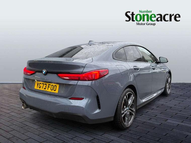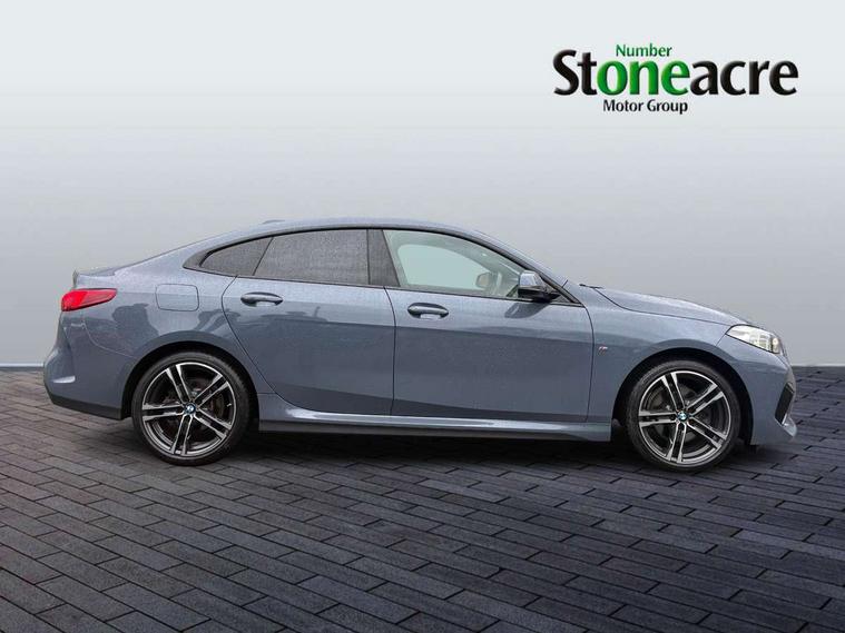 Active guard plus, Attentiveness assist, Auto start-stop, BMW ConnectedDrive online services, BMW Intelligent Personal Assistant, BMW Live Cockpit Professional with 10.25" high resolution instrument and control display, BMW Online services, BMW operating system with 7.0 mid interface, BMW Teleservices, Check Control warning system for monitoring of lights and door/luggage compartment open warning, Cruise control with braking function, iDrive controller with 7 short cut favourite buttons on centre console, Integrated navigation data with map data via USB +features such as 3D landmarks and micro city models, Integrated owners handbook, Intelligent voice assistant, Lane departure warning system, M Sports steering, On board computer - average speed+fuel consumption, service interval, clock/date, odometer/trip meter, outside temperature display and ice warning, Optimum shift indicator, Personal Profile, Pull away assistant, Speed limiting function, Aluminium lightweight construction, Balancer shaft, Double VANOS, Drive performance control with ECO PRO comfort + sport mode, Dual clutch automatic transmission, Electronic differential lock, High precision injection, M Sport suspension with stiffer spring/damper set-up and vehicle lowered by 10mm + twin tube gasfilled shock absorbers and Anti roll bars, Performance Control, Petrol Particulate Filter, VALVETRONIC engine management, 2x USB Type C ports (for charging and data transfer), 4G LTE Connectivity with hard wied 4G network sim card, DAB digital radio, MP3 players and RDS double tuner, Auto wipers, Automatically dimming rear view mirror, Body colour door handles, Body colour mirror caps, Chrome 'M' logo side designation, Chrome exhaust single tailpipe, round, Direction indicator side lights integrated exterior mirrors, Electric windows - front and rear, with open/close fingertip control and trap release, Exterior mirrors - electrically folding with anti-dazzle, Fading support, Follow me home headlights, Front and rear bumper system with replaceable deformation elements, Front door sill finishers in black plastic with M designation in metallic look, Heated, electrically adjustable exterior mirror aspheric on driver side, convex on passenger side, High gloss black B pillar finish, High gloss shadow line exterior trim, High level third brake light, LED daytime running lights, LED front fog lights, Lightweight engineering, Model designation on right side of tailgate, Preparation for high beam assistant, Rain sensor with automatic headlight activation, Rear boot, Rear fog lights, Rear side wing doors, Reversing light in rear light cluster, Welcome lighting, 12V power socket in centre console, 2 cupholders in front centre console, 3 rear seat head restraints, 3 rear seats, 3 spoke M sports design leather steering wheel finished in nappa leather with specific M badge, Anthracite finished floor mats with contrasting surround, Anthracite headlining, Automatic two zone climate control air conditioning, Child seat ISOFIX attachment for two outer rear seats and front passenger seat with anchorage points, Conditioned based service, Driver and front passenger seat heating, Front and rear door pockets including bottle trays, Front and rear side armrests integrated into door trim, Front armrest foldable with integrated storage compartment, Front centre interior light over interior mirror and rear centre automatic interior light when door is opened/ignition switched off or via remote key, Front head restraints, Front passenger seat, Front sports seats with electric side bolster adjustment, Glove compartment, Luggage compartment lighting, Manually adjustment steering wheel column, Multi-function controls for steering wheel, Sun visors with vanity mirrors and insert tab, Through loading system with 40/20/40 split folding rear seat, Two lashing eyes, Additional interior lighting pack - 2 Series Gran Coupe, Connected pack professional - 2 Series Gran Coupe, Extended storage pack - 2 Series Gran Coupe, M Sport exterior styling aerodynamics pack - 2 Series Gran Coupe, 2 tone horn, Airbag - Front driver and passenger, front and rear head, front side, curtain head protection, manual deactivation of front passenger airbag possible, Anti lock braking system (ABS) with cornering brake control, BMW emergency call, Brake drying, Braking readiness, City braking function, Crash sensor activating of airbags, Unlocking doors, hazard warning lights, interior light, safety battery terminal, Dynamic stability control + (DSC+), Dynamic Traction Control - DTC, Electrically operated hand brake, Rear brake discs, Rear child proof door locks, Seat belt security check for driver and front passenger, Seatbelt warning, Side impact protection, Three point seat belts on all seats including front belt stopper, pyrotechnic belt tensioners and belt force limiters, Trailer stability control, Tyre pressure monitoring system, Ventilated front disc brakes, Warning triangle and first aid kit, Central locking switch for all doors, fuel filler cap and luggage compartment, Deadlocking function system to all doors, Drive away locking system on all doors and luggage compartment, Locking wheel bolts, Start/Stop button (illuminated) in centre console with keyless engine start and Auto Start-Stop deactivation button, Thatcham Cat.1 alarm and immobiliser, Two remote control key with integrated key - open/close doors/fuel flap/tailgate +1 button for unlock compartment with M design high gloss black inlay, Contrast stitching on instrument panel, 18" Burnished M double spoke bi-colour alloy wheels finished in orbit grey - style 819M, Reduced rolling resistance tyres,