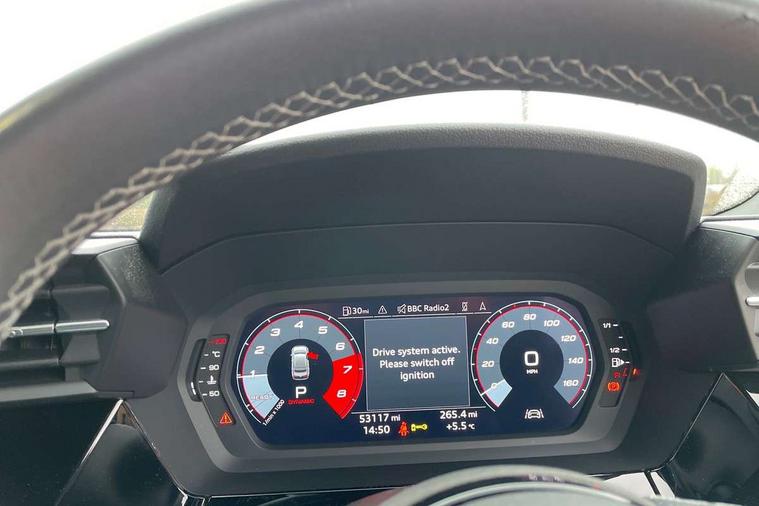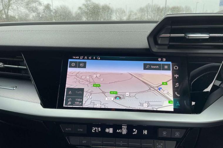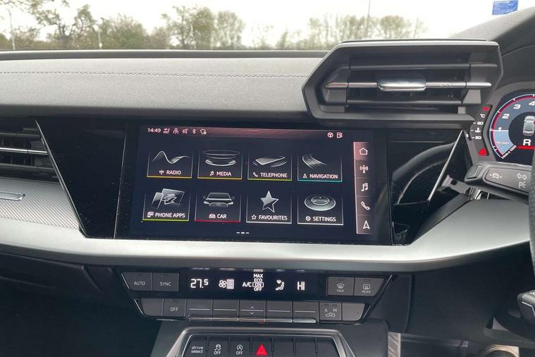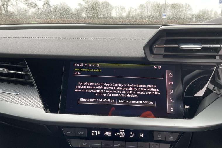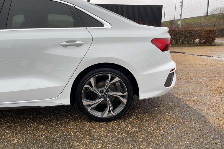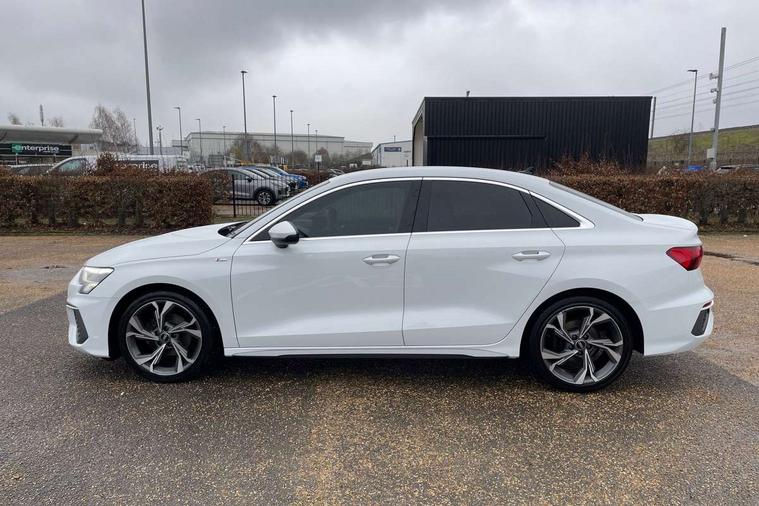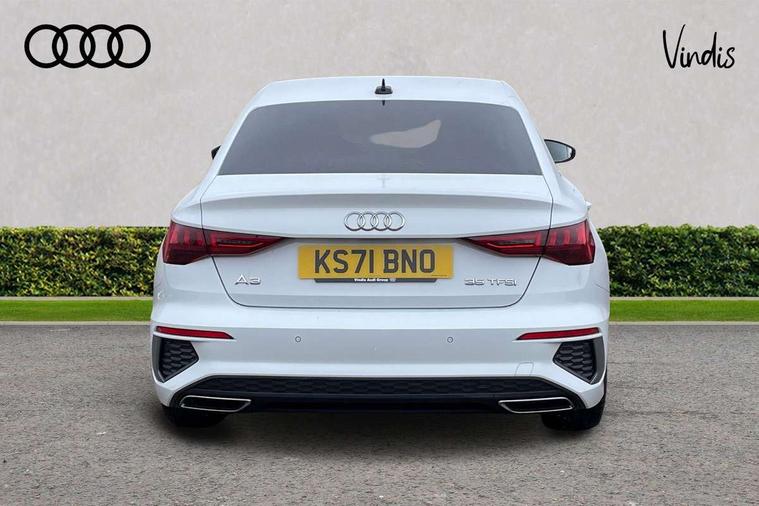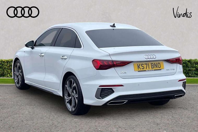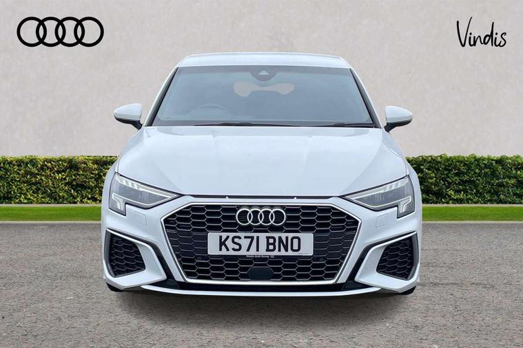 Audi connect emergency call and service, Audi drive select (Auto, Comfort, Dynamic, Efficiency and Individual), Audi smartphone interface, Audi Virtual Cockpit - 10.25" digital and colour instrument cluster, Automatic start/stop system with recuperation, Bluetooth interface, Collision avoidance assistant, Electromechanical power speed sensitive steering, Lane departure warning system, MMI Navigation Plus with high resolution 10.1" colour touch screen display, Service indicator, Voice control system with natural language interaction, 2x USB Type C ports (for charging and data transfer), 6 passive loudspeakers, CD player, DAB Digital radio, 3rd brake light, Acoustic glass windscreen, Aluminium window trim, Auto dimming frameless rear view mirror, Electrically adjustable/heated/folding/auto dimming door mirrors with integrated LED indications + kerb view function for passenger side, Front electric windows, Illuminated door sills with aluminium inserts at the front with S logo, LED daytime running lights, LED headlights with LED rear lights and dynamic rear indicators, Light and rain sensors, Model and engine designation badges at rear, Privacy glass - dark tinted rear window, rear door and side windows, Rear electric windows, S line bumpers, S roof spoiler, 12V socket and storage compartment in front centre console, 40/20/40 split folding rear seat bench with cupholder, Black cloth headlining, Dual zone electronic climate control, Front and rear centre armrest in leather, Front and rear headrests, Front/rear floor mats, Height and reach adjustable steering wheel, Interior lighting - glove compartment light and right hand side, Luggage compartment floor covering, Manual boot compartment lid, Manually adjustable front sport seats, Seat side bolsters, Stainless steel pedals and front footrest in black, Twin leather upholstery with front sports seats S embossed logo, Aluminium interior elements pack - A3, S line styling pack - A3 Saloon, 3x3 point rear seat belts, Driver and front passenger airbag with passenger airbag deactivation, Electronic Stabilisation Control (ESC) including ABS, ASR and EDL, First aid kit with warning triangle and 2 safety vests, Front side airbags with head airbags and interaction airbag, Hill hold assist, Pre-sense front with pedestrian and cyclist detection, Seatbelt monitoring, Tyre pressure loss indicator, Anti theft alarm, Anti-theft wheel bolts, Electronically operated child lock, Immobiliser, Remote control central locking, Aluminium air vent surrounds, Aluminium trim elements, Dark spectrum aluminium inlays, accent surfaces in the dashboard and centre console in platinum grey silk effect paint finish,