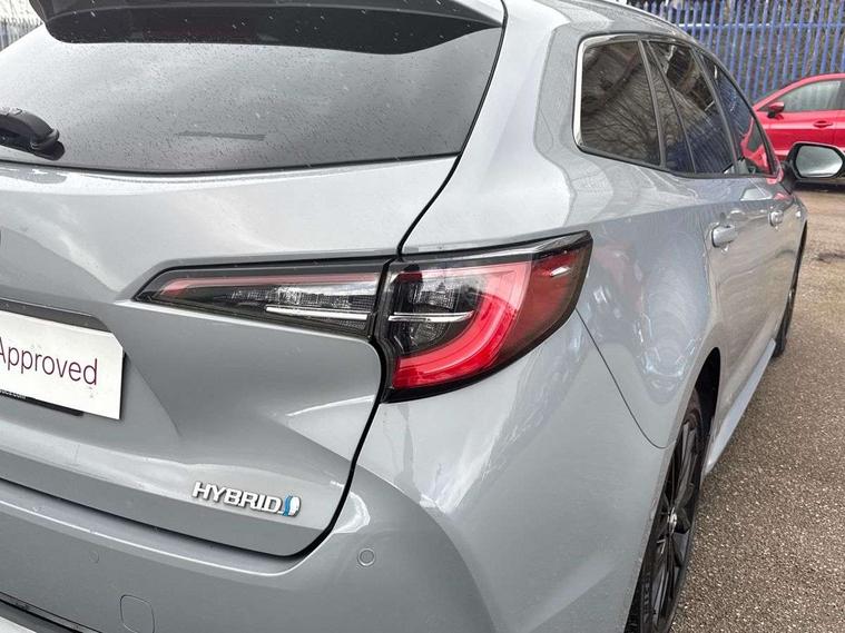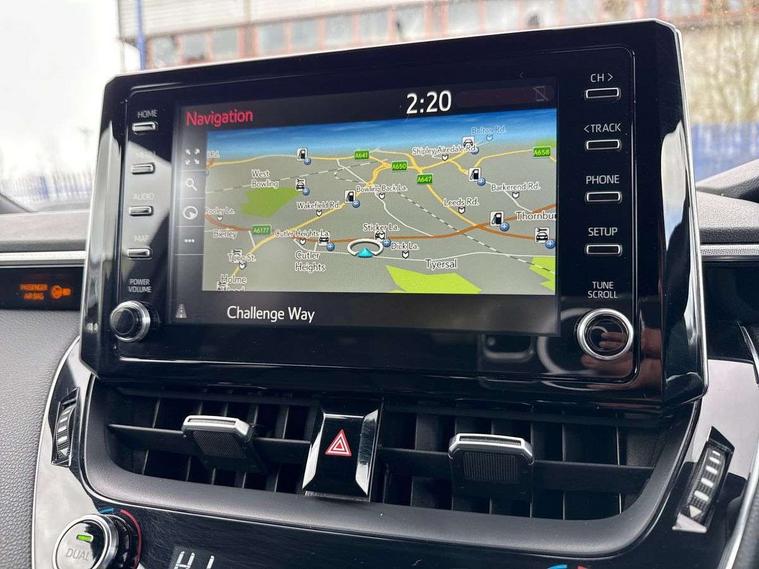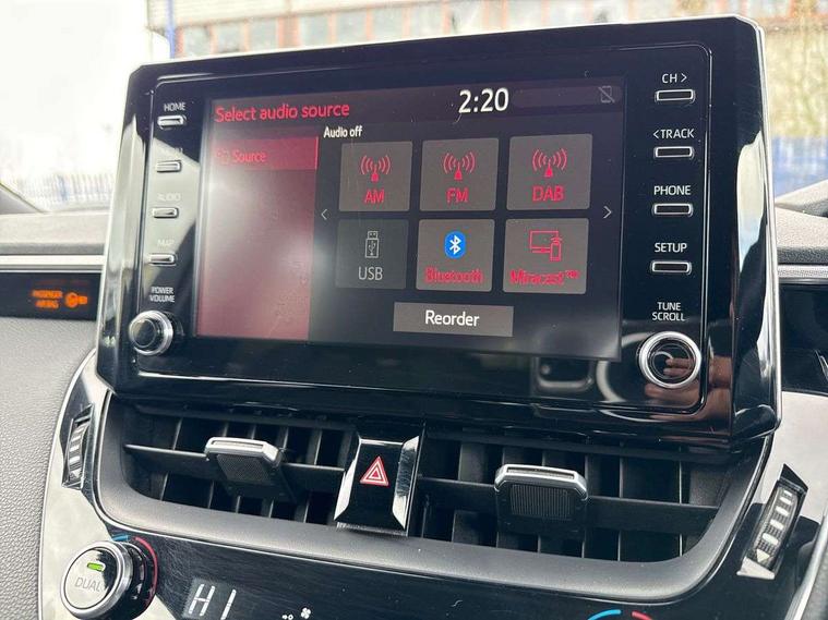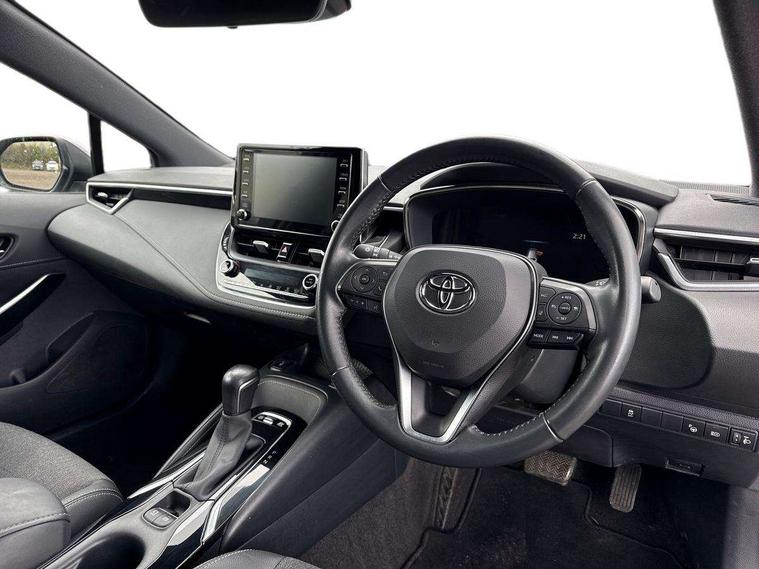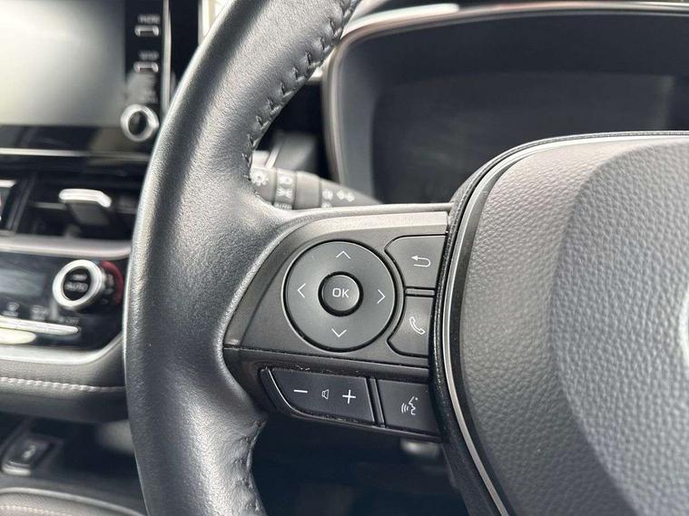7" Multi information display screen, Bluetooth telephone connectivity, Connected car functionality upgrade, tracker, remote status and e-care, Door trim and centre console material, Dynamic radar cruise control (with RSA) including switch on steering wheel, E-call, Electrically assisted power steering, EV drive indicator, Intelligent park assist, Lane Departure Alert (LDA) switch on steering wheel, Memory on adjustable speed limiter, Push button start, Reversing camera, Smartphone integration with Apple CarPlay and Android auto, Gasoline particulate filter, Vehicle Stability Control (VSC), 6 speakers, 8" Touchscreen with MM19 Multimedia system and voice recognition, AM/FM radio, DAB Digital radio, Toyota touch 2 with go navigation system, USB and Aux in connectors + 12V front outlet, USB charging port in centre storage box, Aluminium roof rails, Anti-jam protection on power windows, Auto dimming inside rear view mirror, Auto up and down function on all power windows, Automatic folding mirrors, Automatic headlights with high beam assist, Black metallic surround on lower front grille, Black toyota logo in front, Body colour rear spoiler, Body coloured bumpers, Body coloured door mirrors, Body coloured outside door handles, Follow me home headlights, LED daytime running lights, LED front fog lights, LED Headlights, LED High mounted stop light, LED rear combi lights with LED lightguide, Noise reduction layer on front windows, Power adjustable heated door mirrors, Power front windows, Power rear windows, Privacy glass, Rain sensing wipers, Rear window defogger, Rear window wiper, Reverse tilting door mirrors, Shark fin antenna, Time adjustment on intermittent wiper, Turning signal integrated indicators in door mirrors, Unique lower skirt, Unique side rocker with black insert, UV-filter on driver and passenger windows, 12v power outlet - luggage side, 3 rear headrests, 3 spoke leather steering wheel + gear knob, 60/40 split folding rear seat, Adjustable speed limiter switch on steering wheel, Audio, multimedia and telephone switches on steering wheel, Blue ambient interior illumination to centre tray, front cup holders and front door trim, Boot light, Boot underfloor storage, Clean air filter, Driver and front passenger personal light, Driver and passenger assist grip, Driver and passenger sun visor with mirror and light, Dual sided deck board in boot, Dual zone automatic air conditioning with ECO mode switch, Fabric/synthetic leather upholstery, Front and rear cup and bottle holders, Front and rear door pockets, Front head restraints, Heated driver and front passenger seats, Illuminated entry system in room lamp, ISOFIX seat fixing (2 fixings on rear outer seats), Leather gear shift with satin chrome on gear shift console, Leather style armrests, Manual height adjustable for driver and front passenger seat, Passenger seat back pocket, Pollen filter, Power adjustable lumbar support on driver seat, Power window switches with satin chrome inserts, Rear armrest with 2 cupholders, Rear passenger air vents, Rear passenger coat hooks (2), Rear passenger personal lights, Retractable tonneau cover with luggage partition net, Satin chrome inside door handles, Shopping bag hooks in luggage compartment, Side storage in boot, Sliding armrest on centre console box, Slow opening glovebox with lights, Tilt/telescopic steering column, Tonneau cover with under floor storage, Voice recognition switch on steering wheel, Whiplash Injury Lessening (WIL) feature (active headrest) for seats, Parking pack - Corolla, Toyota safety sense 2 pack - Corolla, 3x3 point rear seatbelts, Adjustable driver and front passenger seat belt extender to top anchor point, Anti lock braking system + Electronic brake force distribution, Brake assist function, Downhill Assist Control (DAC), Electronic parking brake, Emergency brake light signal (EBS), Front passenger airbag on/off switch, Front seatbelt reminder, HAC - Hill start assist control, Rear seat belt reminder, Seatbelt pretensioners and force limiters, Supplemental restraint system (SRS) 7 airbags - dual driver, dual side curtain, side impact and driver knee airbags, Traction control, Tyre pressure warning system, Acoustic vehicle alert system (AVAS), Alarm with motion sensor and immobilizer, Remote central locking + deadlocks, Smart entry, Satin chrome dash trim, Soft touch texture on upper dashboard, Stitching on lower dashboard, Tyre repair kit, Unique wheel finish with red wheel cap,