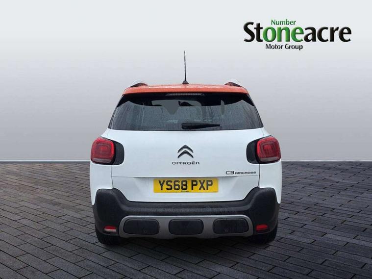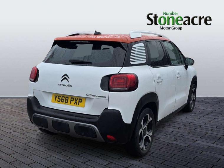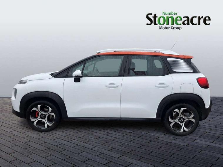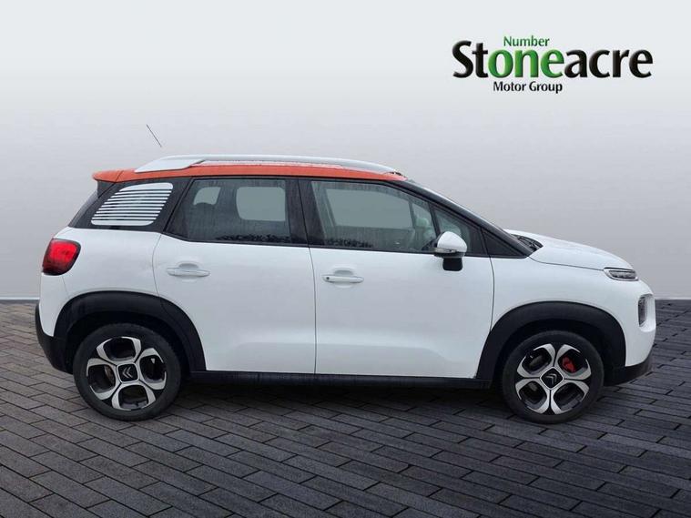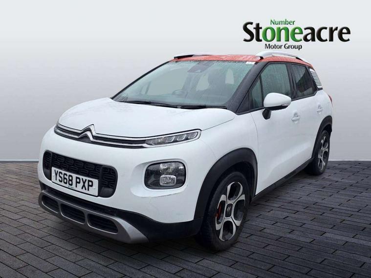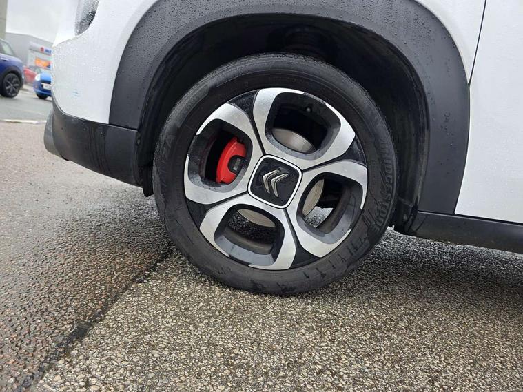 7" touch screen, Android Auto, Bluetooth with USB Box, Citroen connected nav with connect box and emergency assist system, Coffee Break Alert, Collision prevention assist, Cruise control + speed limiter, Lane departure warning system, Mirror screen with mirror link and car play, Multi function trip computer, Rear parking sensor, Speed limit recognition, Variable PAS, Auxiliary input socket, Bluetooth audio streaming, Citroen connected DAB radio, Steering wheel mounted audio controls, Automatic headlights, Body colour bumpers, Body colour door handles with chrome inserts, Cornering front fog lights, Dark tinted rear windows, Electric adjustable/heated/folding door mirrors, Electric front/rear windows with one touch/auto up/down, Front and rear aluminium effect bumper protectors, LED daytime running lights, Rear wiper, 12V Accessory socket, 12V power socket in rear, 60/40 split folding rear seat, Adjustable rear seats, Boot light, Driver/pass sunvisor/covered courtesy mirrors, Front courtesy lights, Front cupholders x 2, Front reading light, Front seat and rear pockets, Front/rear door stowage bins, Height adjustable driver's seat, Height adjustable front headrests, Height/reach adjust steering wheel, Lashing eyelets in boot, Leather gear knob, Leather steering wheel, Rear armrest with ski hatch, Rear cupholder, Removable boot floor, Satin chrome steering wheel inserts, Sliding rear seats, Three height adjustable rear head restraints, Two rear outer seat isofix location points, Automatic pack - C3 Aircross, 3 point inertia reel seatbelts on all 5 seats, ABS + EBD + EBA, Active brake assist, Curtain airbags, Driver seatbelt warning indicator, Driver/Front Passenger airbags, ESP, Front lateral airbags, Front seatbelt pretensioner, Hill start assist, Manual rear child locks, Passenger seatbelt warning indicator, Tyre pressure monitor, Alarm, Automatic boot locking, Automatic door locking, Immobiliser, Keyless entry and start, Locking wheel nuts, Remote central locking + deadlocks, 17" Diamond cut 4 ever alloy wheels, Space saver spare wheel,