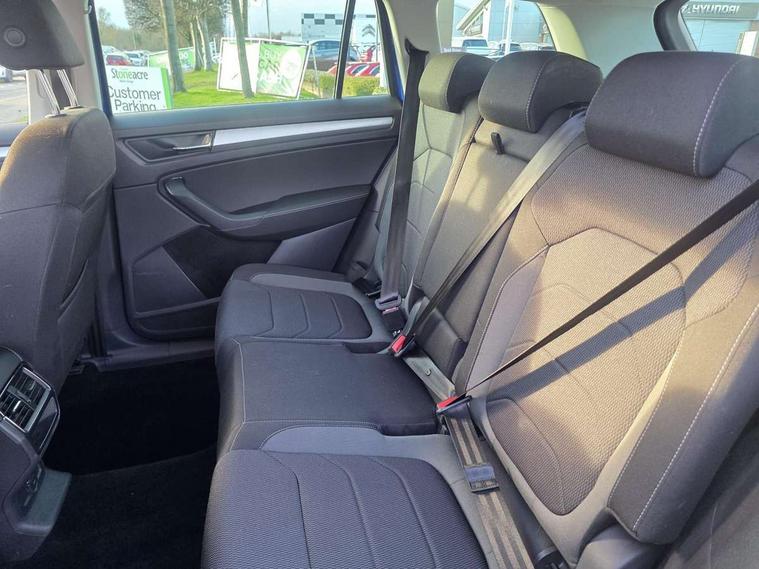 8" Digital display, Amundsen satellite navigation with 8" touchscreen, integrated Wi-Fi, web radio, Bluetooth system, Digital voice enhancement, E-call, ECO Stop/start function, Exterior temperature indicator, Power assist steering, Rear view camera, Smartlink wireless for apple carplay and wired for android auto, Speed limiter, Tailgate unlocking from outside, USB C Port x 2 in front centre console, 8 Speakers, DAB Digital radio, Aero front windscreen wipers with intermittent function, Aero rear window wiper, Auto dimming rear view mirror, Black wheel arch surrounds, Body colour bumpers, Body colour door mirrors and handles, Electric front and rear windows, Extended rear spoiler with finlets in gloss black, Front fog lights, Headlight washers, Heated rear window, Invisible tailpipe, LED rear fog light, LED third brake light in rear spoiler, Light assistant (coming/leaving home/tunnel light), Off-road style lower front bumper element, Privacy glass, Radiator grille frame in matt black with chrome strip, Rain and light sensors, Rear LED lights (high functionality) with welcome effect and dynamic indicators, Rear side wing doors, Safety reflectors on front and rear doors, Window control switches with black trim, 12V socket in boot, 2 rails with 2 hooks, 2 seat bench in 3rd row, 3 seat bench in 2nd row, 4 foldable roof handles with rear coat hooks, 60:40 foldable rear seat with sliding adjustment and backrest angle adjustment, Bottle holders in door panel in the 1.5 litre front and 1 litre rear, Cargo storage compartments, Chrome interior door handles, Cloth upholstery, Coat hooks on B pillar, Covered storage compartment on driver side, Dual zone automatic air conditioning with humidity sensor and control, Front centre armrest with storage compartment, cup holder and 12V socket, Gear shift lever with chrome frame and black gloss insert, Grey headlining, Grey stitching in front and rear armrests and door armrests + door inserts, Height adjustable front headrests, Height adjustable front seats, Illuminated and cooled glovebox, Illuminated luggage compartment, Isofix child seat fittings in outer rear seats with top tether, Manually adjustable steering column, Net programme in boot (1x horizontal Net, 2x vertical Nets), Overhead glasses storage compartment, Pollen filter, Rear centre armrest with cupholders, Single front passenger seat, Sliding trunk cover, Small Bags on the inner sides of the front backrests, Sunvisors with illuminated vanity mirrors, Three rear height adjustable headrests, Ticket holder on A Pillar, Umbrella in door panel, Variable boot floor, Auto door release and activation of warning lights in the event of an accident, Child locks on rear doors, Driver and front passenger airbag with knee airbag and front passenger airbag deactivation, Electronic parking brake with hill start assist, Emergency rear braking signal, ESC (incl. ABS+MSR+ASR+EDS+HBA+DSR+RBS+MKB), Front assist with autonomous emergency braking, Front side airbags with curtain airbags, Fuel cut off safety device, Height adjustable front 3 point seatbelts + pretensioners, Hill hold control, Rear disc brakes, Safety vest holder in door, Seat belt reminder for all seats, Three point rear seat belts, Two tone horn, Tyre pressure monitor, Alarm with interior monitoring and tilt sensor with safe function, Anti-theft wheel bolts, Immobiliser, Keyless entry and start system (KESSY), Remote central locking with 2 keys, Grey stitching in dashboard, Temporary spare wheel (space saver),