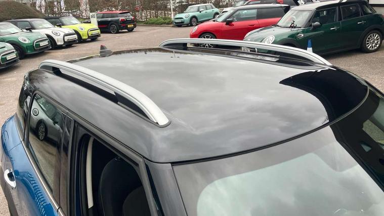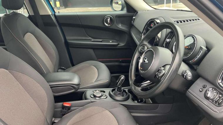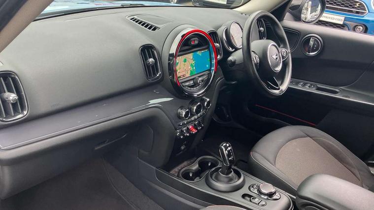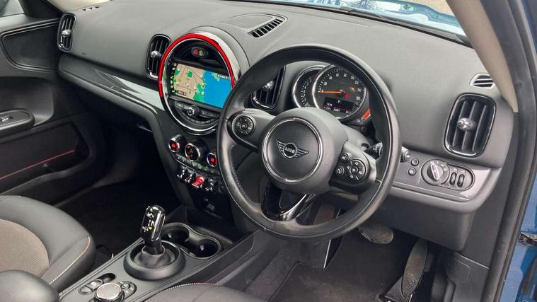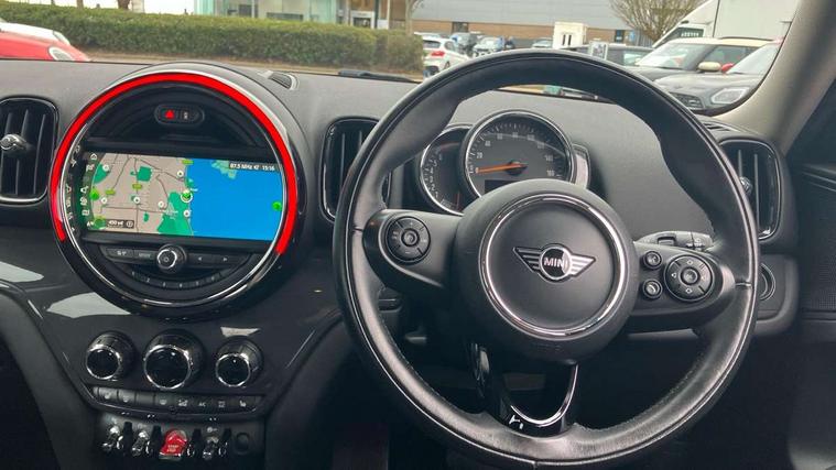 Active Guard incl speed limiting and lane departure functions with auto steering, and front collision warning with brake intervention, Automatic start/stop function with brake energy recuperation, Electro-mechanical speed dependant steering assistance, Instrument cluster, Mini E-call, MINI TeleServices, On board computer, Rear parking distance control, Double Vanos system, Fully variable valve control, High precision injection, Steptronic transmission with double clutch, FM tuner and DAB digital radio, Body colour fuel filler cap, Day time driving lights, Door sill strips, Dynamic brake lights, Electric windows, Heated rear window, Heated windscreen washer jets, Left exhaust tailpipe with chrome finisher, Model logo, Model logo on Tailgate, Radiator grille, Rain sensor with auto headlights, Rear fog lights, Rear window wiper, Side scuttle panel with integrated indicator, Split rear doors, Sun/heat protection glass, White indicator lenses, 12V Accessory socket in centre console, 360L luggage compartment capacity, 4 lashing eyes in luggage compartment, 40:20:40 split folding rear seats, Chrome interior highlights, Colour line - Carbon black, Cupholders, English handbook, Front headrests, Glove compartment, Headliner with grab handles and clothes hooks, Height and length steering column adjustment, Isofix rear child seat preparation, Leather gearshift lever and handbrake gaiters, LED reading lights, vanity mirror lights, front foot well light and spotlight on front seats, Manual air conditioning, Mechanical seat adjustment, driver seat height adjust, forward/back and front seats backrest, Multifunction steering wheel, Passenger seat height adjuster, Rear headrests, Storage compartments in doors, Sunvisors with vanity mirrors, Excitement pack - Countryman, Navigation pack - Countryman, 2 tone horn, 3 point seatbelts on all seats, 6 Airbags - front, side, head and seat belt tensioners, Anti-lock braking system (ABS), DSC - Dynamic Stability Control, Electronic handbrake, Front and rear disc brakes, Hill start assist, Tyre pressure monitoring system, Alarm system with tilt sensor, monitoring doors, bonnet interior and tailgate, Auto drive away locking, Deadlocking function, Electronic vehicle immobiliser, Locking wheel bolts, Start/stop toggle with keyless go, Tool kit,