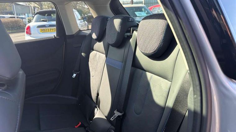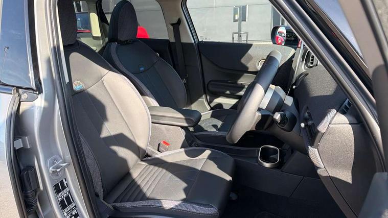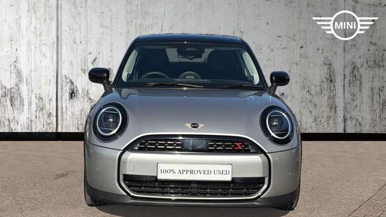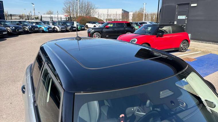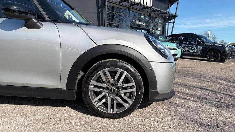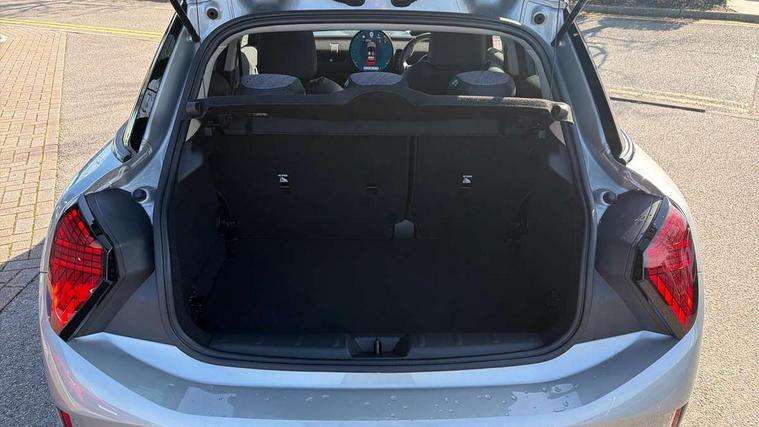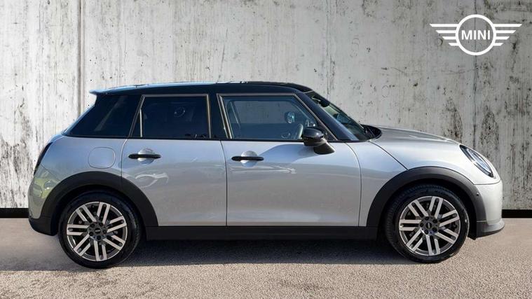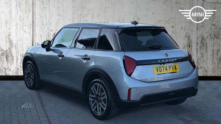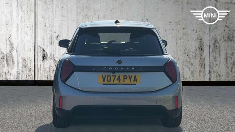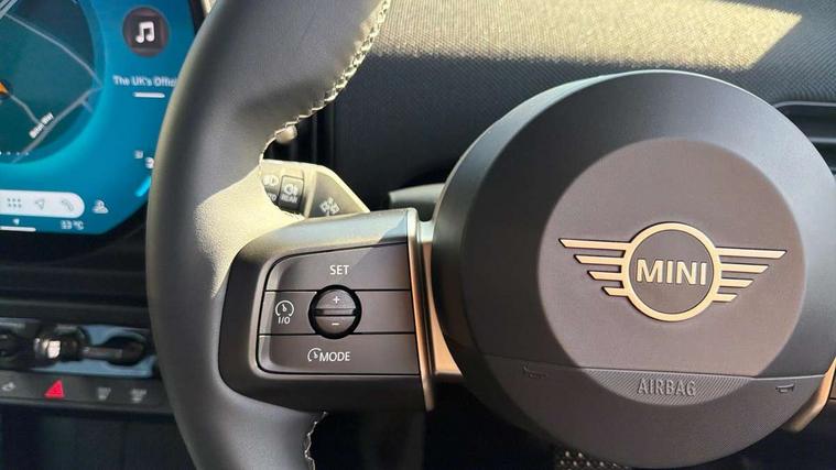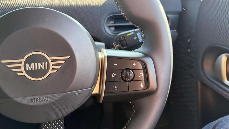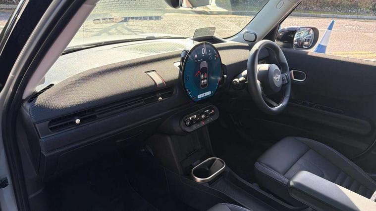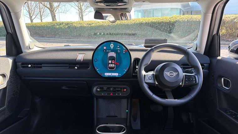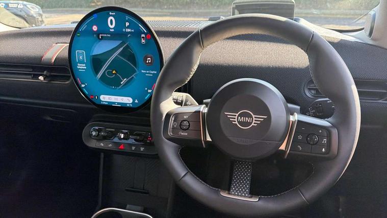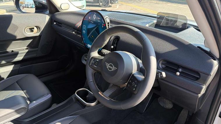 Central toggle bar, Circular OLED Screen, Compatible mobile phone bluetooth with audio streaming, Cruise control, Digital instrument cluster, Electro-mechanical speed dependant steering assistance, Emergency call service, MINI Experience Modes, Mini navigation system, On board computer, Service interval indicator, 7 speed steptronic transmission with double clutch, DAB Digital radio, Personal eSim, Adaptable light signatures, Auto headlights, Electric adjustable heated door mirrors, Electric front+rear windows, Heated rear window, Heated windscreen washer jets, LED daytime running lights, LED indicator lights, LED rear lights, Rain sensor window wipers, Rear fog lights, Rear side wing doors, Rear window wiper, 2 zone automatic air conditioning, 3 seat bench in 2nd row, 60/40 rear seat bench, Ambient lighting, Cupholders, Floor mats, Front and rear head restraints, Front compact armrest, Heated steering wheel, Height adjustable passenger seat, Light headliner, Luggage compartment lighting, Single front passenger seat, Sport Vescin Steering Wheel black with vibrant silver accents, Sunvisors with vanity mirrors, Vescin/Cloth upholstery, Driving assistant pack - Cooper Hatchback, Level 1 pack - Mini Hatchback, Park assistant pack - Cooper Hatchback, 3 point seatbelts on all five seats, 6 Airbags - front, side, head and seat belt tensioners, Acoustic pedestrian protection, Anti-lock braking system (ABS), Child locks on rear doors, DSC - Dynamic Stability Control, Electronic parking brake, Front and rear disc brakes, Front ISOFIX (iSize), Front passenger airbag deactivation, Traction control, Tyre pressure monitoring system, Alarm, Immobiliser, Remote central locking, Black/Blue dashboard knit, Tyre repair kit,