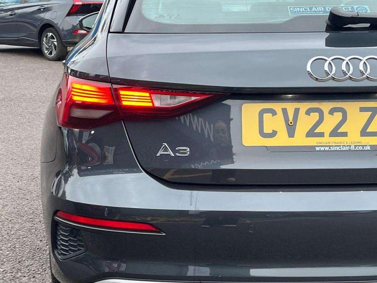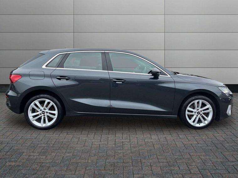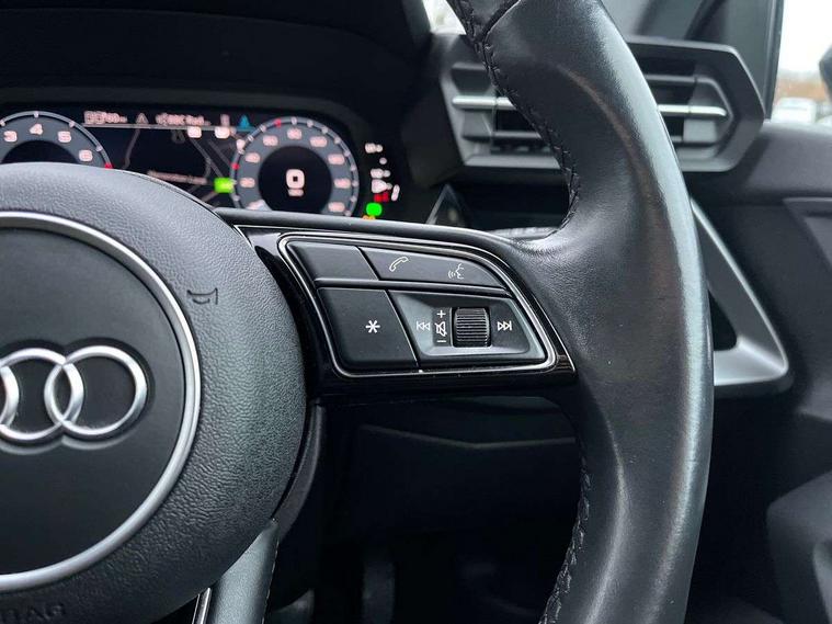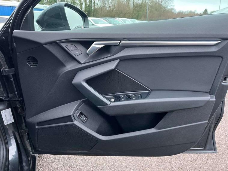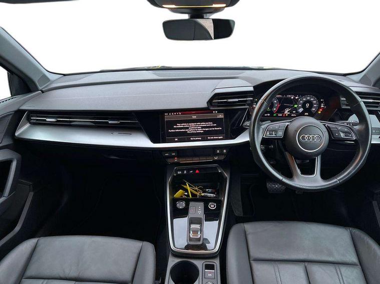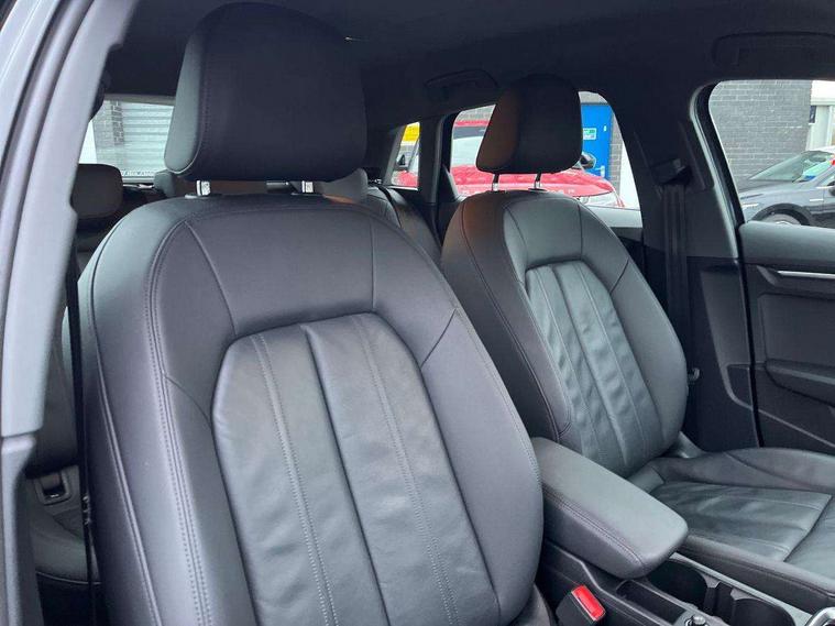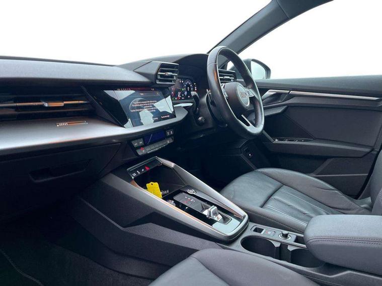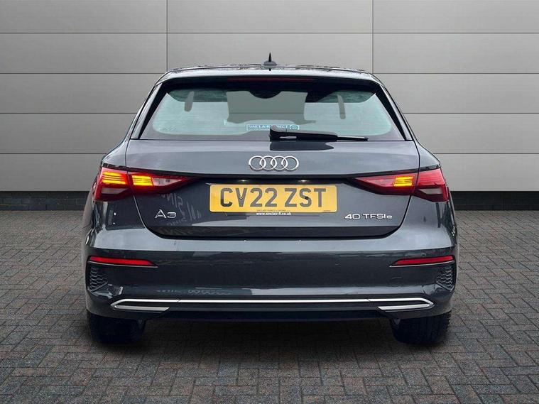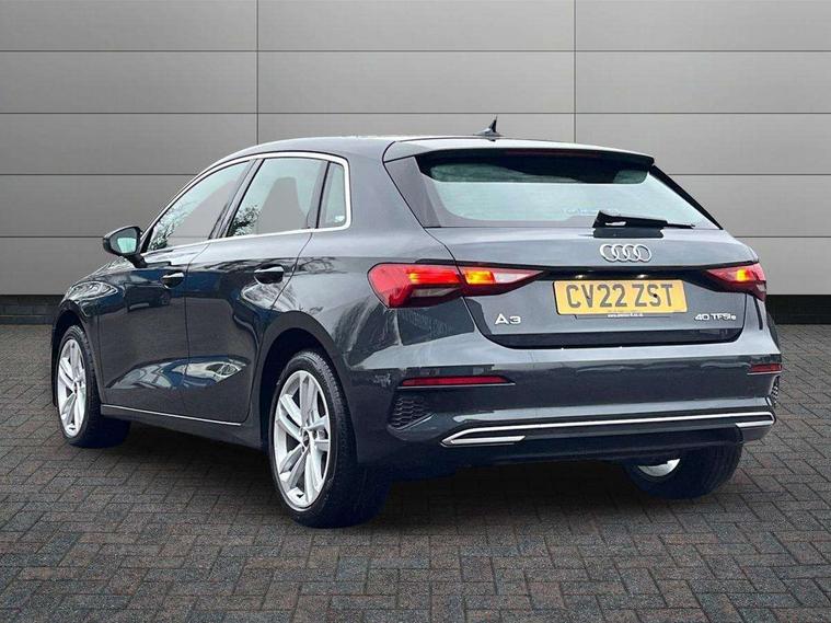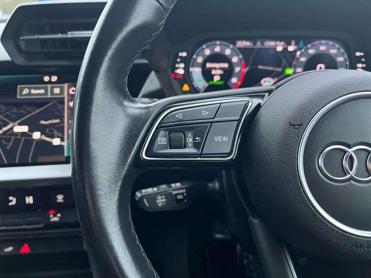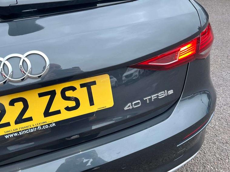 Audi drive select (Auto, Comfort, Dynamic, Efficiency and Individual), Audi smartphone interface, Audi Virtual Cockpit - 10.25" digital and colour instrument cluster, Automatic start/stop system with recuperation, Bluetooth interface, Collision avoidance assistant, e-Call (emergency call), Electromechanical power speed sensitive steering, Lane departure warning system, MMI Navigation Plus with high resolution 10.1" colour touch screen display, Service indicator, Trip computer, Voice control system with natural language interaction, 3 pin 10 amp domestic charging cable, 3.6 kw On-board charger, Standard suspension, Type 2 mode 3 32 amp charging cable, Type 2 socket for AC charging, 2xUSB-C connection with data and charging functions, 6 passive loudspeakers, DAB Digital radio, 3rd brake light, Acoustic glass windscreen, Aluminium window trim, Auto dimming frameless rear view mirror, Body colour exterior mirrors, Body colour roof spoiler, Electrically adjustable/heated/folding/auto dimming door mirrors with integrated LED indications + kerb view function for passenger side, Front electric windows, LED daytime running lights, LED headlights and halogen rear lights, Light and rain sensors, Rear electric windows, Rear side wing doors, Rear window, rear door windows and rear side windows in clear glass, Rear wiper, 12V socket and storage compartment in front centre console, 3 seat bench in 2nd row, 40/20/40 split folding rear seat bench with cupholder, Dual zone electronic climate control, Front and rear centre armrest, Front and rear headrests, Front door sill trims with aluminium inlay, Front/rear floor mats, Height and reach adjustable steering wheel, Interior lighting - Front and rear roof module including reading lights, glove compartment light and right hand side, Luggage compartment floor covering, Manual boot compartment lid, Manually adjustable front seats, Seat side bolsters, Single front passenger seat, Steel grey cloth headlining, Twin leather upholstery, Aluminium interior elements pack - A3 Sportback, Sport styling pack - A3 Sportback, 3x3 point rear seat belts, Audi pre sense front, Driver and front passenger airbag with passenger airbag deactivation, Electronic Stabilisation Control (ESC) including ABS, ASR and EDL, First aid kit with warning triangle and 2 safety vests, Front side airbags with head airbags and interaction airbag, Pre-sense front with pedestrian and cyclist detection, Seatbelt monitoring, Tyre pressure loss indicator, Anti theft alarm, Anti-theft wheel bolts, Immobiliser, Manual child locks, Remote control central locking, Inlays with silk effect paint in platinum grey, Tool kit, Tyre repair kit,