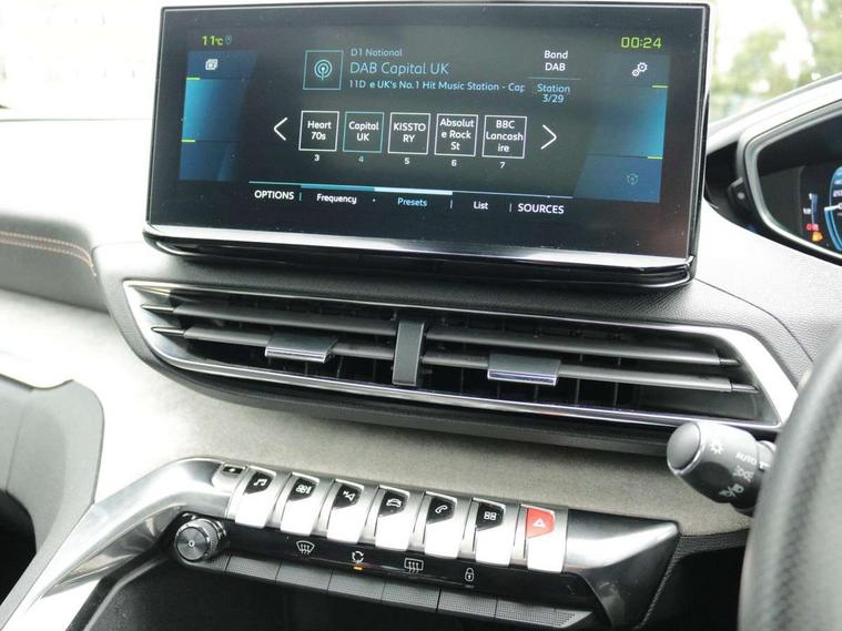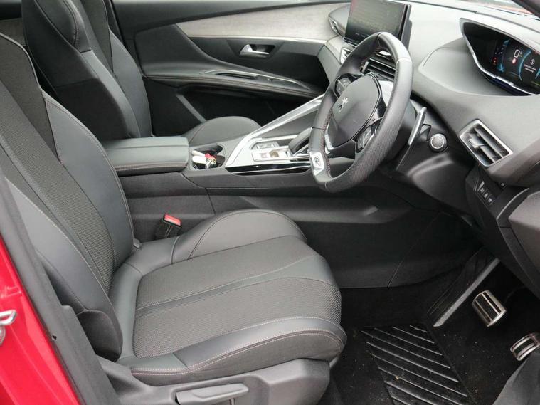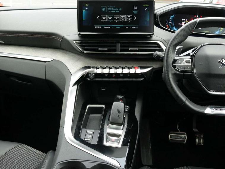 'Lights On' Reminder warning buzzer, 3D connected navigation + voice control + Peugeot connect SOS and assistance, Bluetooth telephone facility, Charge management - Control, plan, launch and check the vehicle charge remotely, Climate preset - Remotely plan and control the heating or air conditioning, Digital clock, Electric impulse automatic gearbox control, Exterior temperature indicator with ice warning, Front and rear parking sensors, Lane departure warning system, Mirror screen with mirror link, apple carplay and android auto, Mode selector - Electric, hybrid, sport and 4WD with hill assist descent control, Multi function trip computer, PEUGEOT i-Cockpit with 8.0" capacitive touchscreen in centre console, PEUGEOT i-Cockpit with compact sports steering wheel, PEUGEOT i-Cockpit with configurable 12.3" Head-up digital instrument panel, Smartphone charging plate, Speed limit + road sign recognition and recommendation, Sports button, Dynamic stability control and electronic anti-skid system, Mode 3 type 2 cable for wallbox charging, DAB Digital radio, Steering wheel mounted controls, USB socket, 2 X Rear number plate lights, Aluminium longitudinal roof bars, Auto self levelling headlights, Automatic hazard light activation upon heavy brake application, Automatic triggered rear windscreen wiper in reverse gear, Black front wing trim with chrome detail, Body colour door handles, Body colour rear spoiler with stainless steel edging trim, Body coloured bumpers, Body protectors (bottom of front and rear bumpers + wheel arches + protection at bottom of doors) in black, Chrome front fog light trim, Chrome rear bumper facia, Chrome side window trim, Dark tinted rear side windows + tailgate window, Door mirror mounted LED courtesy approach lights, Electric operated/heated door mirrors, Frameless rear view mirror with electric mode light, Front windscreen wiper with magic wash cleaning system, Full LED headlights with LED fog lights with static cornering function, sports front bumper and grille, Gloss black B and C pillar and aerodynamic deflector trim, Gloss black rear cluster connecting strip, Gloss black windscreen surround, Headlights left on audible warning, Heated rear windscreen with integrated antenna, HYBRID4 emblem on front wings and tailgate, LED daytime running lights, LED sequential scrolling front indicators, LED side indicator lights integrated into door mirrors, Lion grey front bumper scuff plate, Nera black door mirrors, One touch electric front/rear windows with pinch protection, Power folding door mirrors with blind spot detection indicator and auto dipping function in reverse gear, Radiator grille in chrome edge trim with chequered design and black 'PEUGEOT' lettering, Rear LED Peugeot signature 'Claw Effect' lights, Stainless steel roof arches, Twin exhaust tailpipe, 12V Sockets in dashboard, rear cabin and load area, 2 cupholders in front centre console, 2 rear reading spotlights, 2x Rear coat hooks, 3x Isofix child seat fittings in the front passenger and outer rear seats, 4 Grab handles retractable and damped, Aikinite stitching in armrest, gear lever and dashboard facia, Automatic gear lever in satin chrome, Blue ambient lighting for connecting zone, Blue ambient lighting to front door panels, central storage and cupholders, Blue ambient lighting to head up instrument panel, Centre front armrest with butterfly wing opening and illuminated storage compartment, Dual zone automatic climate control, Electric power steering with reach and rake adjustable steering column, Fixed boot floor with access to the charging cable storage box, Fixing rings 4 in load compartment, Flocked front door pocket interior with blue ambient lighting, Flocked glovebox interior, Fold flat front passenger seat with picnic table, Footwell illumination, Front interior light with 2 reading spotlights and rear interior light with timer, Front passenger seat manual adjustments, Front seat back map pockets, Gear shift indicator, Illuminated glovebox, Illuminated vanity mirrors, LED interior lighting in storage spaces and load area, Mistral floor mats with Aikinite contrast stitching, Mistral full grain perforated leather steering wheel with aikinite stitch detail and satin chrome 'GT Line' emblem, Rear armrest with ski flap and two cup holders, Rear centre console ventilation system, Reclining front seats, Roof LED interior lighting, Roof lining - Mistral black, Satin chrome dashboard trim, Satin chrome digital instrument panel and touchscreen trim, Satin chrome front door panel recess trim, Satin chrome interior door handles, Satin chrome scorpion's tail and toggle switch trim, Seatbelt not fastened audible and visual alert for front seats, Seatbelt unfastened on the move audible and visual alert for front and rear seats, Driver sport pack - 3008 Auto, Safety pack - 3008, Safety Plus Pack - 3008, Visibility pack - 3008, 3x Rear three-point retractable seatbelts with force limiters in the outer rear seats, Acoustic vehicle alerting system, Adaptive driver and front passenger airbags with passenger airbag deactivation function, Anti lock braking system + Electronic brake force distribution, Driver and front passenger side airbags, Electric child locking functionality on rear windows and doors, Electric parking brake, Front and rear curtain airbags, Front optimised safety headrests and 3 x rear retractable headrests with height adjustable, Front three point retractable seatbelts with pre tensioners and force limiters, Front ventilated disc brakes and rear disc brakes, Height adjustable front seatbelts, Hill start assist, Tyre pressure sensor, Automatic door locking when moving off, Central locking button on dash, Deadlocks, Electronic immobiliser, Locking wheel bolts, Perimetric and volumetric alarm with lift and tilt sensor, Remote control central locking with two plip keys, Brumeo fabric Dashboard, front and rear door panel finish, Tyre repair kit,
