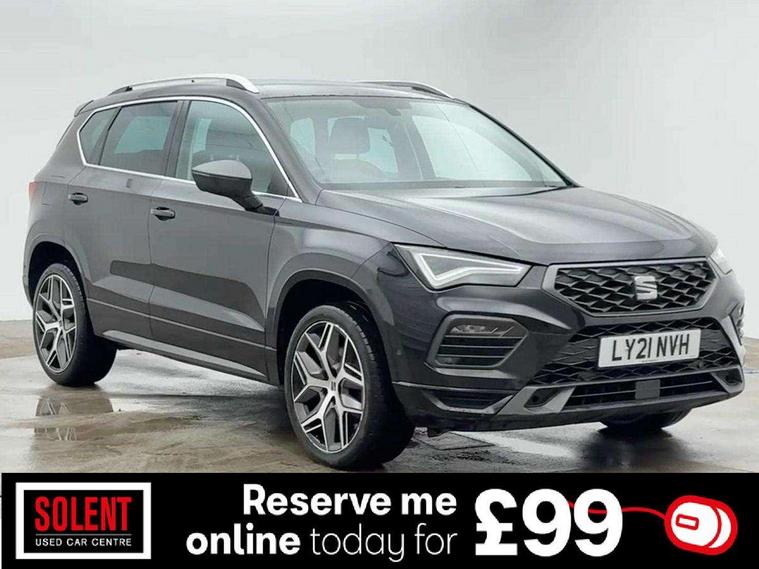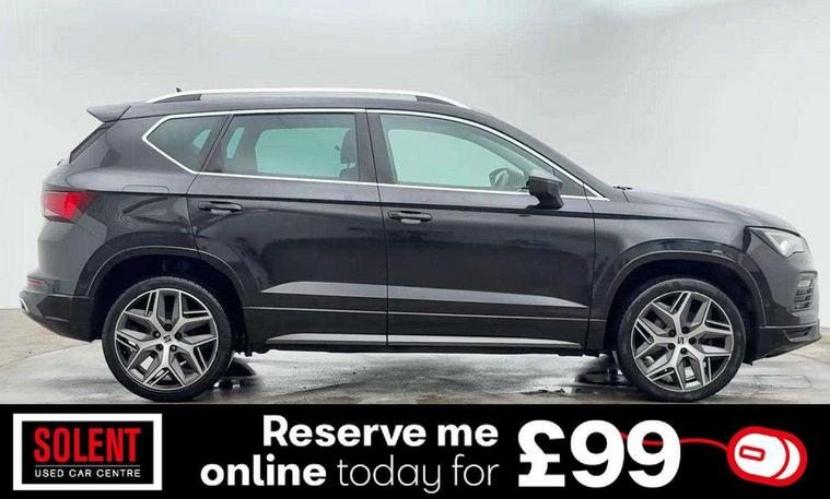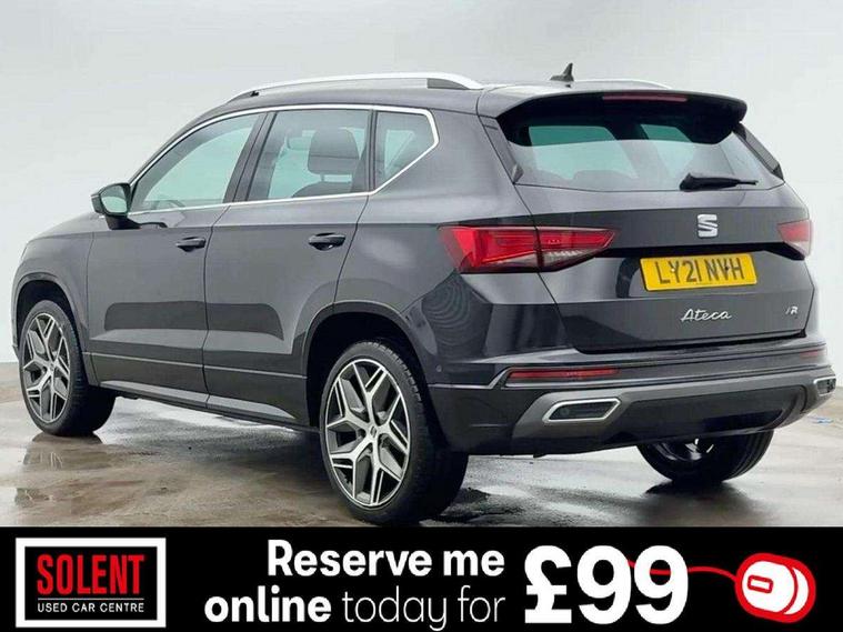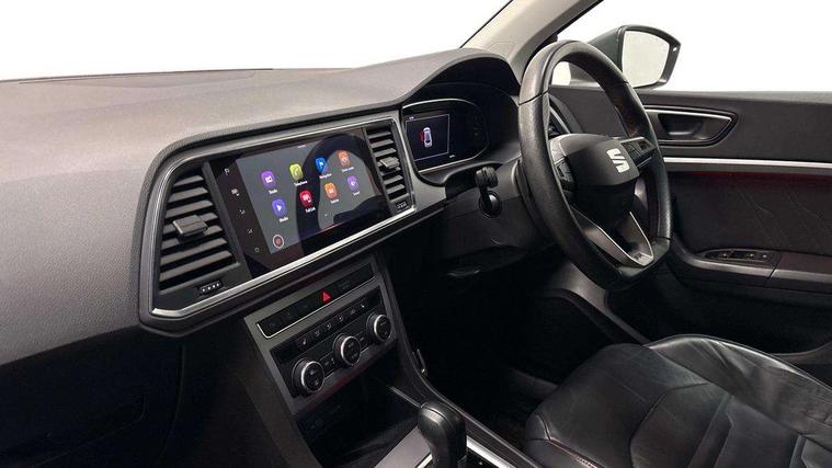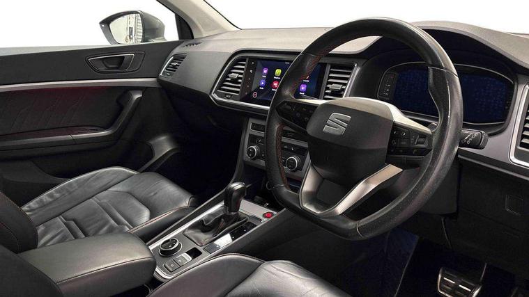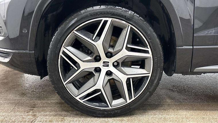 Cruise control system with speed limiter, Digital cockpit, Outside temperature gauge, Progressive power assisted steering, SEAT drive profile with driving experience button - Normal, Sport, Eco and Individual mode, gearshift, steering and throttle response, Self parking functionality (includes front and rear parking sensors), Trip computer, Wireless full link smartphone integration, Wireless phone charger, Steering wheel mounted audio/phone controls, Body colour bumpers, Body coloured wheel arch surrounds, Chrome roof rails, Chrome side window trim, Cosmo grey front grille frame, Dark tinted rear windows, Daytime running lights, Door mirrors with welcome light silhouette, Dynamic headlight range control with self adjusting whilst driving, Electric adjustable/heated/folding door mirrors, Front and rear electric windows, Full LED headlamps with lens and LED front fog lamps with cornering function, Illuminated aluminium front door sill, LED rear tail lights with dynamic indicators, Rear fog lights, Rear spoiler, Rear wash/wipe, Simulated exhaust pipes in chrome frame, 12V socket in front, 60/40 split folding rear seat, Aluminium pedals, Dual zone climate control, Electric adjustable driver seat with lumbar adjustment, Front and rear head restraints, Front centre armrest, Front seat back storage pockets, Heated front seats, Height adjustable passenger seats with lumbar adjustment, ISOFIX points in outer rear seats with top tether anchorage points, Leather steering wheel and gear knob, Leather upholstery with front sports seats, Multicoloured ambient lighting with LED interior illumination, Rear armrest and easy back seat release mechanism from boot, Steering wheel mounted gearshift paddles, Storage compartment in roof console for sunglass, Convenience pack - Ateca, Interior lighting pack - Ateca, Navigation system pack with DAB - Ateca, 3x3 point rear seatbelts, ABS, Traction control system (TCS), Electronic stability control (ESC) and Electronic differential lock system (XDS), Airbags - Driver and front passenger airbag with deactivation, front side, two curtain and driver's knee airbags, Electric parking brake with auto hold function, Front and rear seatbelt reminder, Front assist with autonomous emergency braking, Hill hold control, Tiredness recognition system, Traction control, Tyre pressure monitoring system, Alarm, Keyless entry, Locking wheel bolts, Chrome interior detailing, 19" Exclusive machined alloy wheels with decorative inserts 36/7 in cosmo grey,