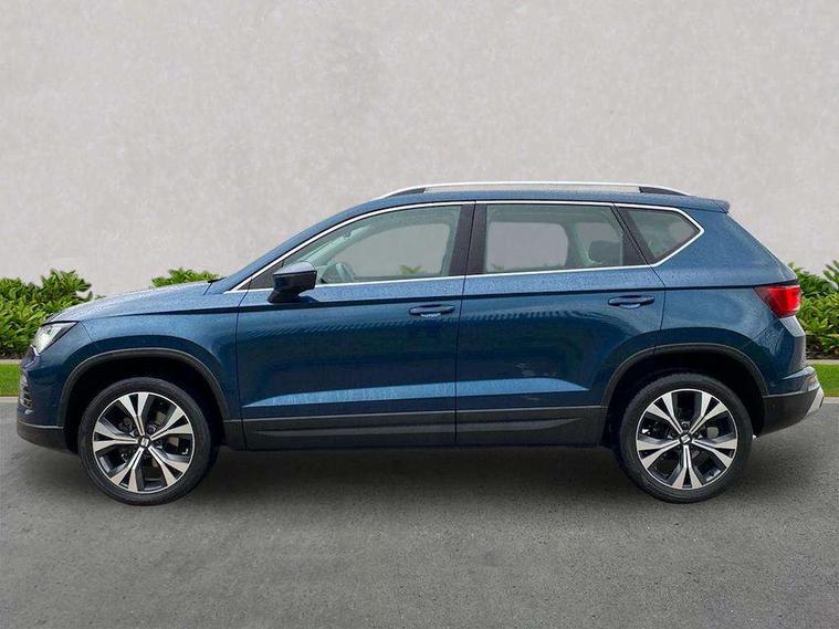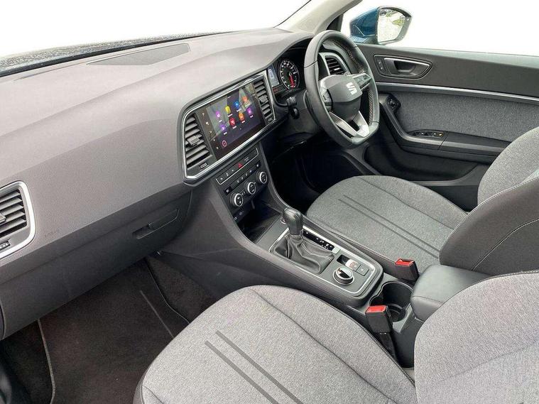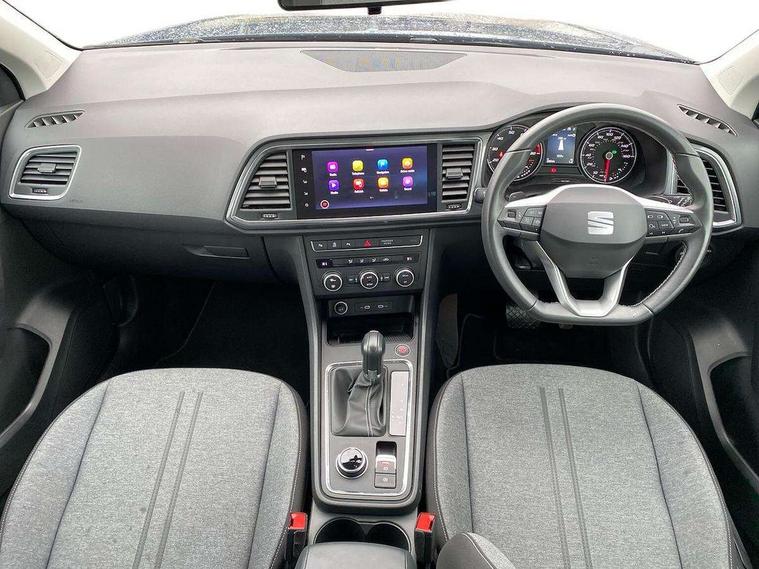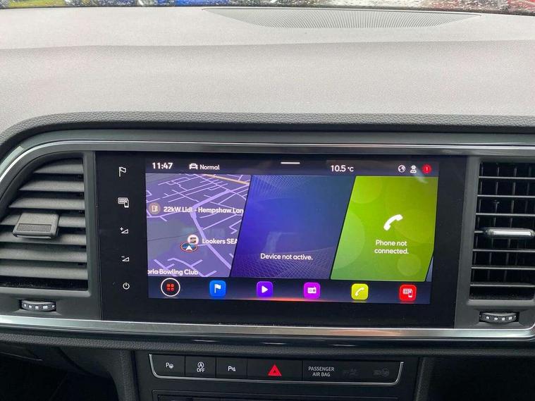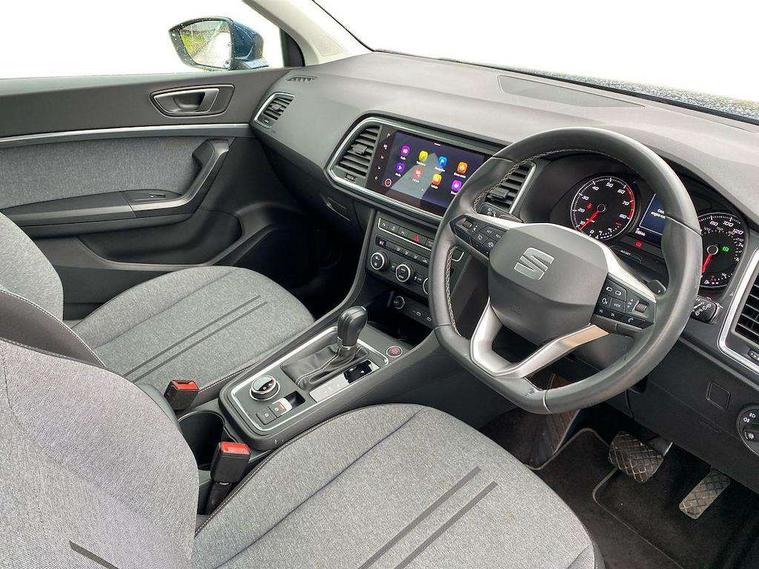 Cruise control system with speed limiter, E-call, Outside temperature gauge, PAS, SEAT drive profile with driving experience button - Normal, Sport, Eco and Individual mode, gearshift, steering and throttle response, Self parking functionality (includes front and rear parking sensors), Trip computer, Wireless full link smartphone integration, Wireless phone charger, Steering wheel mounted audio/phone controls, Black wheel arch surrounds, Body colour bumpers, Chrome front grille frame, Chrome roof rails, Chrome side window trim, Daytime running lights, Door mirrors with welcome light silhouette, Dynamic headlight range control with self adjusting whilst driving, Electric adjustable/heated/folding door mirrors, Front and rear electric windows, Full LED headlamps with lens and LED front fog lamps with cornering function, LED rear tail lights with dynamic indicators, Rear fog lights, Rear side wing doors, Rear wash/wipe, Simulated exhaust pipes, 12V socket in front, 3 seat bench in 2nd row, 60/40 split folding rear seat, Cloth upholstery with front comfort seats, Dual zone climate control, Front and rear head restraints, Front centre armrest, Front seat back storage pockets, Height adjustable driver and passenger seat with lumbar adjustment, ISOFIX points in outer rear seats with top tether anchorage points, Leather steering wheel and gear knob, Rear armrest and easy back seat release mechanism from boot, Single front passenger seat, Storage compartment under driver's seat, Interior lighting pack - Ateca, Navigation system pack with DAB - Ateca, 3x3 point rear seatbelts, ABS, Traction control system (TCS), Electronic stability control (ESC) and Electronic differential lock system (XDS), Airbags - Driver and front passenger airbag with deactivation, front side, two curtain and driver's knee airbags, Electric parking brake with auto hold function, Front and rear seatbelt reminder, Front assist with autonomous emergency braking, Hill hold control, Manual rear child locks, Tiredness recognition system, Traction control, Tyre pressure monitoring system, Alarm, Keyless entry, Locking wheel bolts, Chrome interior detailing, 18" Performance machined alloy wheels 36/2 in nuclear grey,