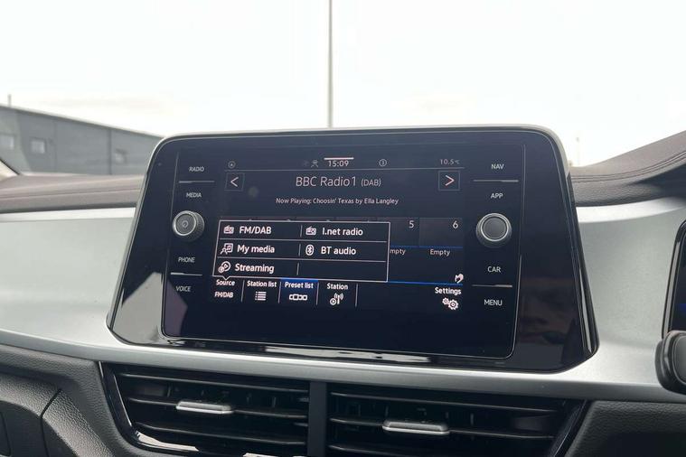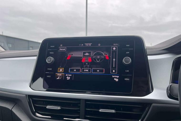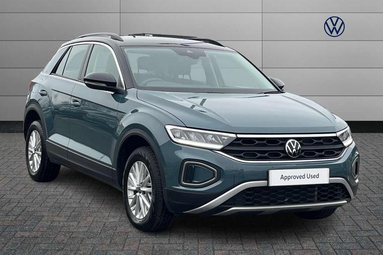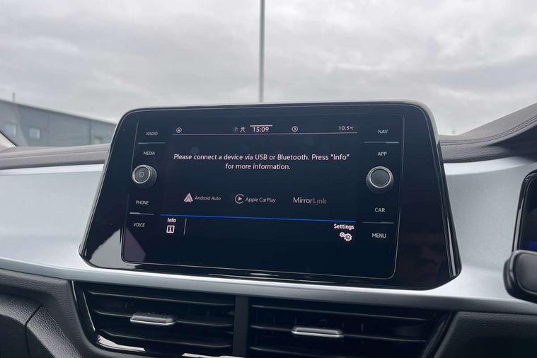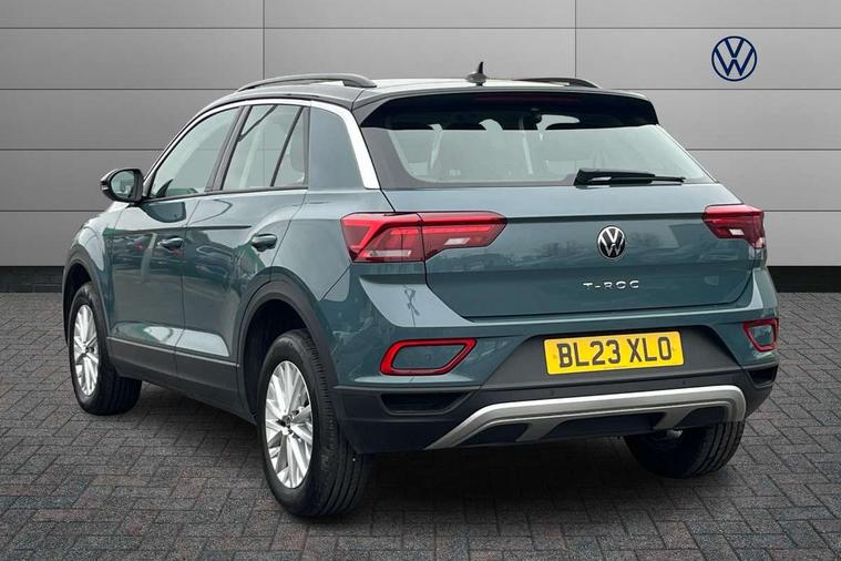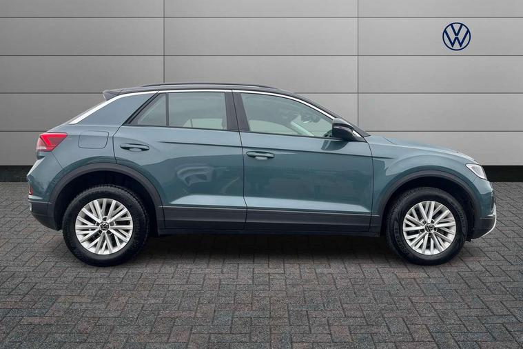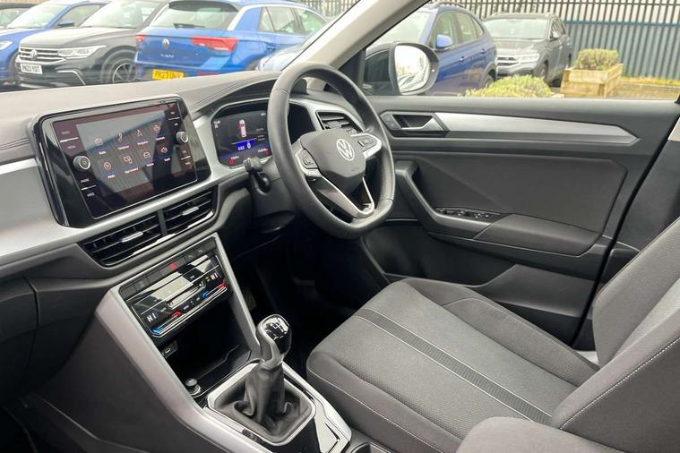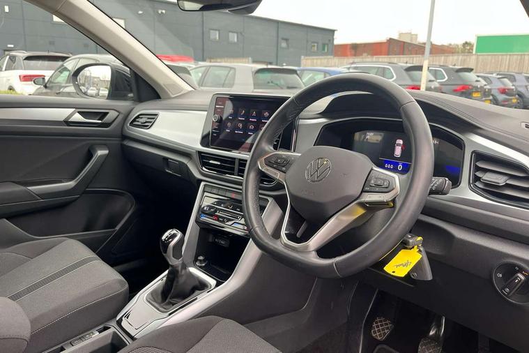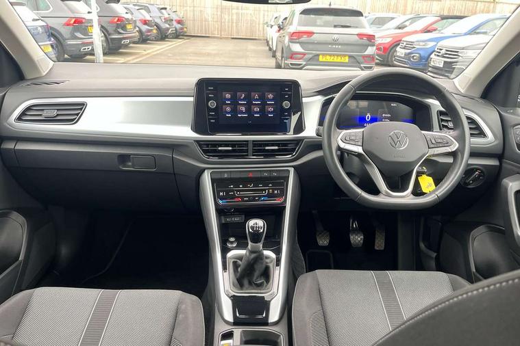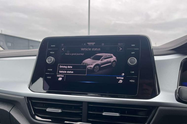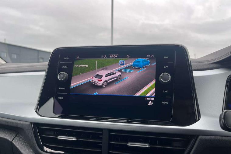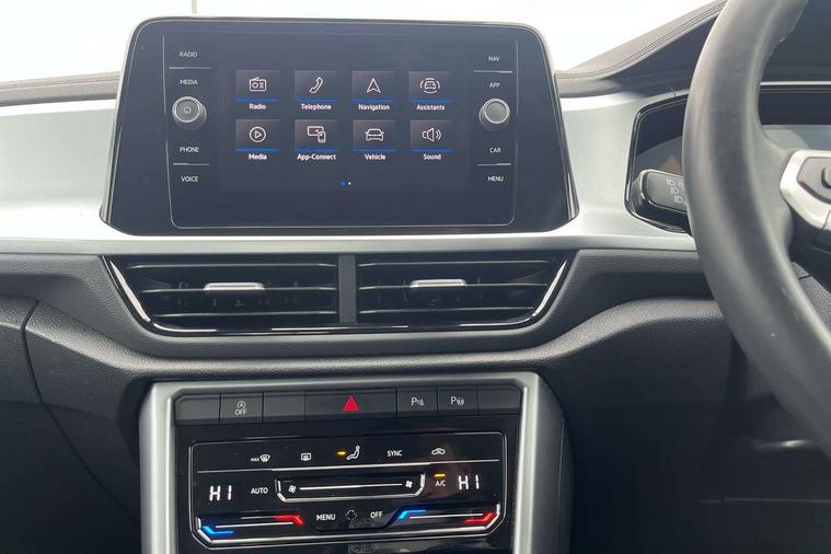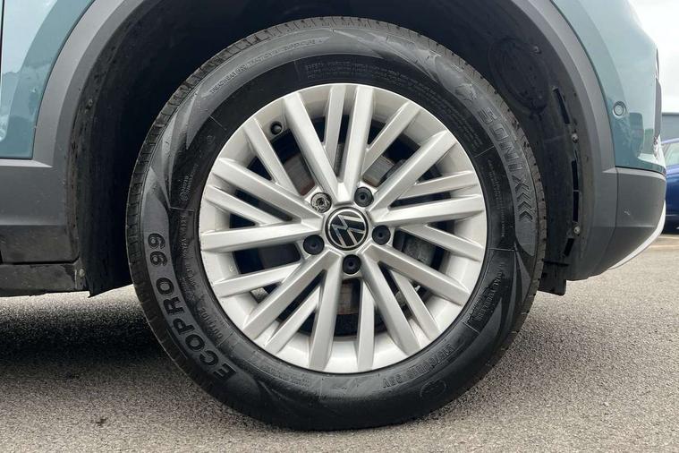 Bluetooth mobile phone interface, Driver alert system with fatigue detection, Driver tips and journey analysis, Emergency call service, Lane keeping system Lane Assist, Modified key software - reduce switch off time for key status change to Long no motion, Online services, Park assist including front and rear parking sensors, Power assisted speed sensitive steering, Service interval indicator, Tailgate/trunk lid release from outside, Think blue trainer driver tips and journey analysis, Warning sound and light for front seatbelts unfastened, Wireless app connect, Battery regeneration during braking, Front shock absorption, Rear shock absorption chassis with increased ride height, Start/stop function with battery regeneration, DAB Digital radio, Diversity antenna for FM reception, Music playback - MP3, WMA and AAC files, Premium USB cable in choice of either Apple or Android smartphone compatibility, SD card slot, Simultaneous pairing of 2 compatible mobile devices, Title and cover art display, We Connect and We Connect Plus functionality, 3rd brake light, Auto dimming interior rear view mirror, Automatic hazard lights activation under emergency braking, Automatic headlight control with LED separate daytime running lights with coming/leaving home function, Black roof rails, Body coloured bumpers and radiator grille with chrome trim and front fog lamps with chrome bezel, Body coloured exterior mirror housings and door handles, Extended roof spoiler, Exterior mirrors aspherical on driver side, convex on front passenger side, External USB type C socket and charging sockets, Front windscreen wiper with intermittent wipe and 4 position delay, Heated rear window, LED rear combination lamps, LED rear number plate lights, LED tail lamp rear comination lamps, Power windows with comfort operation and circuit breaker, Rain sensor, Rear exhaust tailpipe, Rear fog light on one side and reversing lights on both sides, Rear side wing doors, Rear wash/wipe with intermittent wipe setting, Remote electrically foldable door mirrors, puddle lights and reverse activated passenger's door mirror, 12V power socket in centre console, 3 rear head restraints, 3 seat bench in 2nd row, 4 load lashing points in luggage compartment, Air care climatronic air conditoning system with active combination filter and 2-zone temperature control, Ambient lighting with mirror logo projection, Cloth upholstery, Door and side trim panel in cloth, Drawer under drivers seat, Driver/front passenger seat height adjustment, Front centre armrest, Front comfort sports seats, Front cupholders x 2, Front reading light, Instrument lighting, white adjustable panel illumination, Interior light delay, Isofix child seat preparation, Leather gearshift handle, Load-through provision with cup holder when folded down ('Unsplit rear seat bench, split folding backrest, with centre armrest), Luggage compartment lighting, Lumbar support for driver's and front passengers seat, Non-folding front passenger seat backrest, Single front passenger seat, Storage compartment in left and right luggage area, Storage compartment in rear doors, Storage compartments in driver and front passenger doors, Sunvisors with illuminated vanity mirrors, Variable boot floor, height adjustable and removable, Driver assistance pack without proactive passenger protection - T-Roc, 3 point height adj front seatbelts + pretensioners, 3 point seatbelts in outer rear with ECE label, ABS, Child locks on rear doors, Driver and front passenger airbag with front passenger airbag deactivation, Driver and front passenger safety-optimised head restraints, Drivers seatbelt reminder, Electronic parking brake, Electronic Stability Control (ESC) inc EDL (Electronic Differential Lock) and ASR (Traction Control), Front and rear passengers curtain airbag system including front side airbags, Front assist with city emergency braking and pedestrian monitoring, Front disc brakes, Front seat side impact airbags, Hill start assist, Predictive pedestrian protection, Rear disc brakes, Single tone horn, Tyre pressure loss indicator, Volkswagen roadside assistance, Alarm with interior protection, Anti-theft alarm system with interior monitoring, backup horn, and towing protection, Remote central locking with SAFELOCK, radio remote control with 2 remote control folding keys, Pewter matt decorative inserts for intrument panel, centre console and door panels at the front, Trims for alloy wheels,