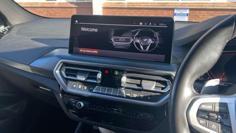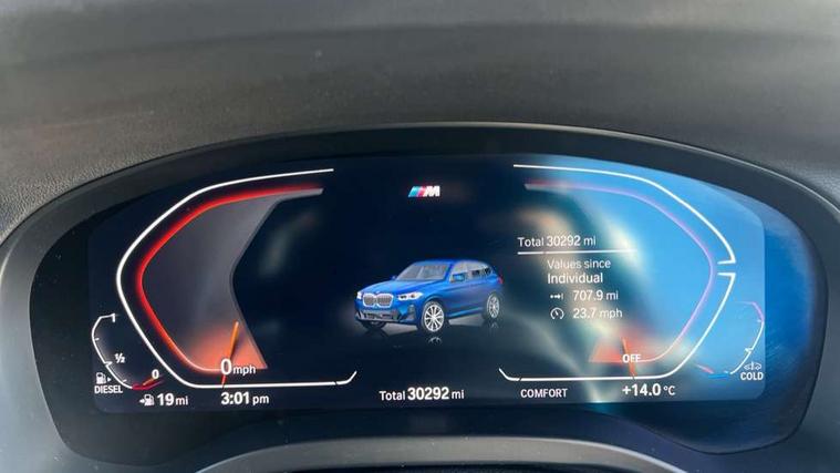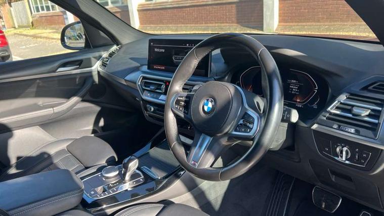 Active Guard, Attentiveness assist, BMW Live Cockpit Professional nav system including 12.3" instrument display + 12.3 high resolution control display, BMW Online services, BMW Teleservices, Brake pad wear indicator in front and rear, Check Control warning system for monitoring of lights and door/luggage compartment open warning, Condition based service - BMW service history, electronic service booklet, integrated owner's handbook, Connected drive services, Cruise control with brake function + speed limiter, Electric boot lid, Front/rear Parking distance control, iDrive touch controller with 8 favourite buttons, Instrument cluster with speedometer with mph readout, tachometer, fuel gauge and oil temperature gauge, Lights on warning by audio warning signal when ignition is switched off, Oil sensor for level and grade, warning by check control system, On board computer - average speed+fuel consumption, service interval, clock/date, odometer/trip meter, outside temperature display and ice warning, Optimum shift indicator, Personal Profile - automatic lock when driving away selectable, Run flat indicator, Stop/start system, Variable sports power steering with drive performance control Sport+ mode, Automatic transmission with gearshift paddles, Diesel particulate filter, Incorrect fuelling protection, Larger capacity fuel tank, M sport suspension, Multi-link rear suspension, BMW professional radio/CD/MP3, DAB tuner, Acoustic glazing, Automatic windscreen wipers and automatic headlight, Black finish on B pillars, Body colour door handles, Body colour electric adjust heated aspherical door mirrors, Body colour roof mouldings, Body coloured bumpers, Direction indicator, side repeaters, integrated in exterior mirrors, Dynamic brake lights, Exhaust tailpipes - dual, round, split left and right with chrome finisher, Fingertip control / anti-trap function on electric window, Folding wing mirrors with auto dimming, Follow me home headlights, Front and rear bumper system with replaceable deformation elements, Front and rear electric windows, Gloss chrome tailpipes finishers, Green tinted heat insulating glass, Heated windscreen washer jets, High beam assistant, High gloss black shadow line roof rails, High gloss shadowline exterior trim in decorative moulding side frame/recess cover/guide rail/B, C pillars/mirror frame and triangle with mirror base, High level 3rd brake light incorporating LED Technology, Interior rear view electrochromatic mirror with automatic anti dazzle function, LED tail lights, Lightweight engineering, M aerodynamic bodystyling, M Sport entry door sill strips, Model designation, Rain sensor, Rear side wing doors, Rear wing door, Rear wiper, Shark fin antenna, Side exterior M designation badges, Visible VIN plate, Welcome lighting, Windscreen wipers with adjustable interval, 12V power point in luggage area, 12V power socket in front centre console, 2 x USB Type C ports for charging and data transmission (front centre console) and 2 x USB Type C ports for charging (rear centre console), 3 rear headrests, 3 seat bench in 2nd row, 3 zone automatic air conditioning, 4 lashing points to secure luggage, 40:20:40 split folding rear seat with loading system, Ambient lighting, Anthracite headlining, Automatic interior light when door is opened/ignition switched off or via remote key, Floor mats in velour, Foldable storage floor with compartment, Four grab handles integrated in roof lining, Front and rear bottle holders integrated into door trim storage compartments, Front and rear side armrests integrated into door trim, Front centre armrest with storage compartment, Front footwell lights, Front head restraints, Front passenger seat, Front sports seats, Front/rear courtesy lights with soft on/off dimming, Front/rear reading lights, Heated front seats, Isofix rear child seat preparation, Leather gear knob, Lockable glove compartment, Luggage area underfloor compartment, Luggage compartment lighting, M sport leather steering wheel, Multifunction steering wheel, Parcel shelf removeable and storable under boot floor, Reach and rake adjustable steering column, Rear centre armrest with 2 cupholders, Removable / retractable luggage cover, Slope adjustable rear seats, Storage compartment in rear centre console and front/rear door trims, Sun visors with vanity mirrors and ticket pocket, Toolkit located in luggage compartment, Two front cupholders with removable oddments tray/lid, Connected pro pack - X3, Driving assistant pack - X3, ADB - Automatic Differential Brake, Anti-lock braking system (ABS) with brake assist, Automatic Stability Control (ASC), Battery safety cut-off, BMW emergency call, Brake drying, Brake energy regeneration, Braking pre-tensioning, Child locks on rear doors, Cornering brake control (CBC), Crash Sensor - activation of central locking release, hazard warning light and interior lighting, Deactivation of fuel pump in the event of a crash, Driver and front passenger front and side airbags with passenger deactivation and ITS front and rear head airbags, Driver and front passenger knee airbag, DSC+, Dynamic brake control, Dynamic Traction Control - DTC, Electromechanical parking brake, Hill descent control, Hill start assist, Seatbelt security check for front seats, Side impact protection, Three point seatbelts to all seats with front and outer rear pyrotechnic belt tensioners and seat belt force limiters, Two tone horn, Tyre pressure sensor, Ventilated front and rear disc brakes, Warning triangle and first aid kit, Central locking switch for all doors, fuel filler cap and luggage compartment, Electronic engine immobiliser, Locking wheel nuts, Remote control including two integrated key - one button for open/close all lockable content, windows and separate button for open luggage compartment, Remote control Thatcham category 1 alarm, Start/stop button with Comfort Go keyless engine start and auto Start/stop deactivation button, Low rolling resistance tyres,