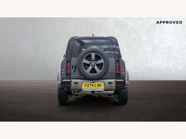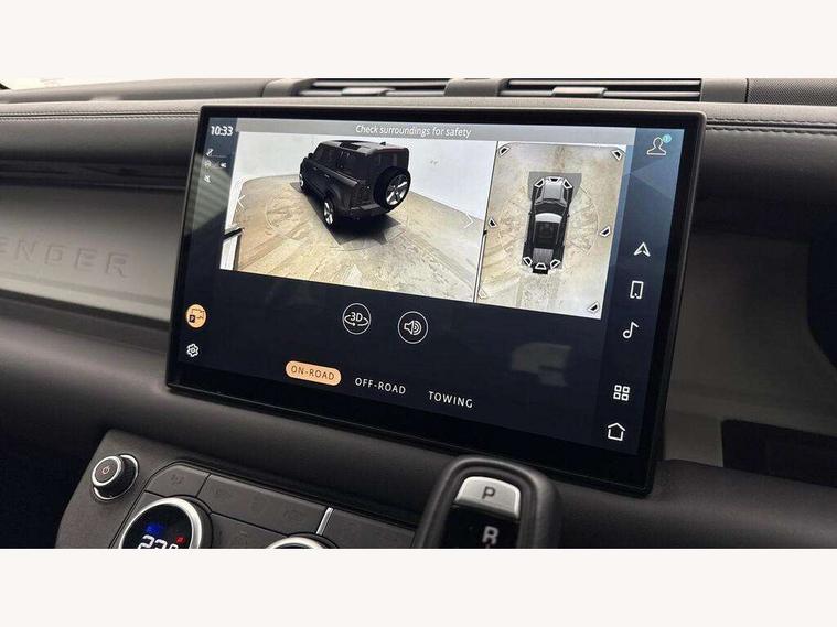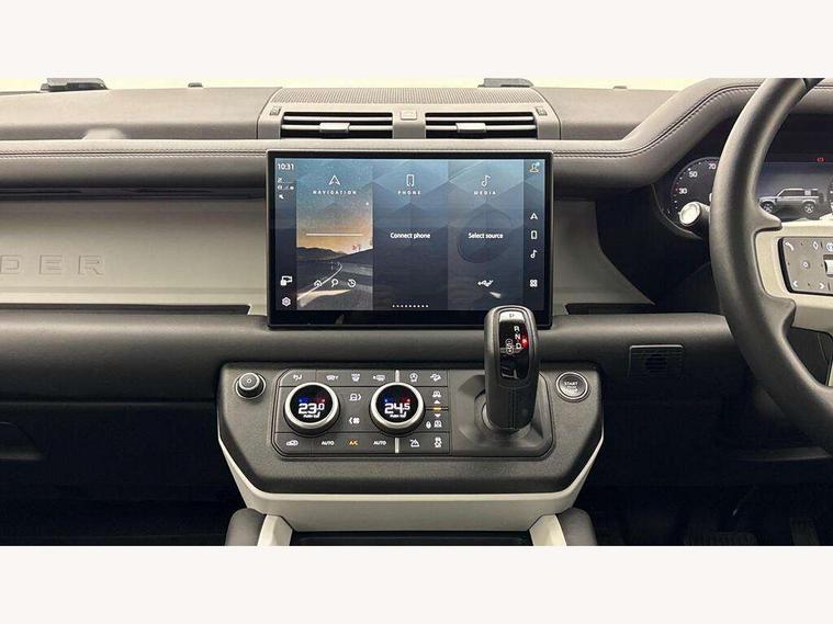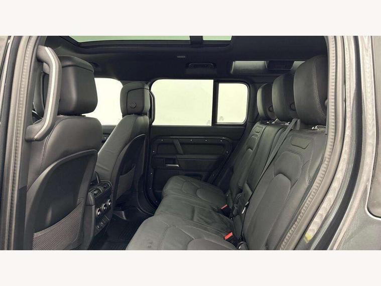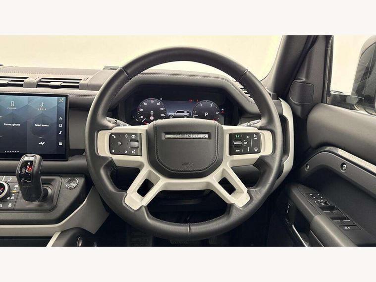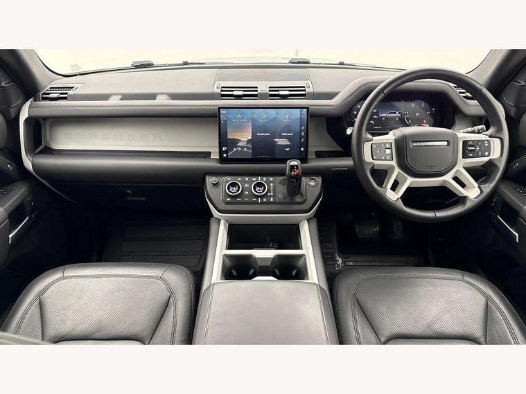 1 x USB-C (power only) & 1 x USB-C (power & data) in Row 1, 2 x USB-C in Row 2, 11.4" touchscreen, 2 x USB-C in Row 3, 360 degree parking aid, 3D Surround Camera with 360 View, 180 Rear View, Front Traffic Detection, Forward Vehicle Guidance, Tow Hitch Assist and clear sight Ground View, Adaptive cruise control, Android Auto, Apple CarPlay, Blind spot assist, Bluetooth system, Brake pad wear indicator, Clear exit monitor, Connected navigation pro, Driver condition monitor, Electric power assisted steering (EPAS), Interactive driver display, Lane keep assist, Push button start, Rear collision monitor, Rear traffic monitor, Traffic sign recognition with adaptive speed limiter, Trip computer, Wireless device charging, 8 speed automatic transmission, All wheel drive system, Twin speed transfer box, DAB Radio (Digital Audio Broadcasting), Meridian 700w surround sound audio system with 15 speakers, Pivi pro connected, Automatic headlight levelling, Automatic headlights, Black exposed rear recovery eyes, Body coloured bonnet, Centre high mounted stop light, Electric heated/power fold door mirrors with approach lights and auto dimming driver side, Electric windows with one touch open/close and anti-trap, Follow me home lighting, Front fog lights, Heated rear window with timer, Heated windscreen, Illuminated metal treadplates with brand name script, LED tail lights, Matrix LED headlights with signature DRL, Privacy glass, Puddle lights, Rain sensing windscreen wipers, Rear fog lights, Rear side wing doors, Rear wiper, Side hinged tailgate, Sliding panoramic roof, Standard tail door, Trailer stability assist, X-Dynamic badge, 12V power socket in loadspace, 2 seat bench in 3rd row, 3 seat bench in 2nd row, Alpine lights, Configurable cabin lighting, Durable rubber cabin flooring, Durable rubber loadspace flooring, Electric reach + rake adjustable steering column, Electrically adjustable steering column, Extended leather upgrade, Footwell lights, Front head restraints, Front passenger isofix child seat attachment, Heated steering wheel, Loadspace cover, Loadspace Hook, Multifunction steering wheel, No flat load floor storage, Overhead stowage for sunglasses, Rear headrests, Rear ISOFIX, Rear reading lights, Single front passenger seat, Soft close tail door, Storage glovebox, Sunvisors with illuminated vanity mirrors, Twin front cupholders, Air suspension pack - Defender SE/HSE/X-Dynamic SE/X-Dynamic HSE, Non-smoker package, Online pack with data plan - Defender, 7 three point seatbelts, ABS, Brake hold function, Cornering brake control (CBC), Customer configurable autolock, Driver and passenger airbags, DSC - Dynamic Stability Control, EBD - Electronic brakeforce distribution, Electric parking brake (EPB), Emergency brake assist, Emergency braking, ESP + traction control, Front airbags with passenger seat occupant detector, HDC - Hill descent control, Hill launch assist, Low traction launch, Power operated child locks, Remote for (e-Call, Optimised assistance call, InControl app, Climate, beep and flash and door), RSC - Roll stability control, Seat belt reminder, TPMS (Tyre pressure monitoring system), Alarm, Immobiliser, Intrusion sensor, Keyless entry, Locking wheel nuts, Secure tracker pro,