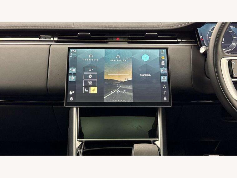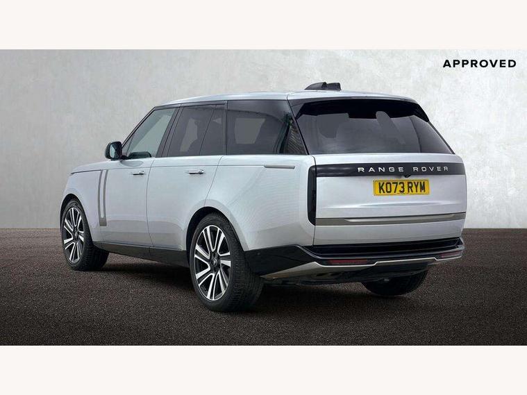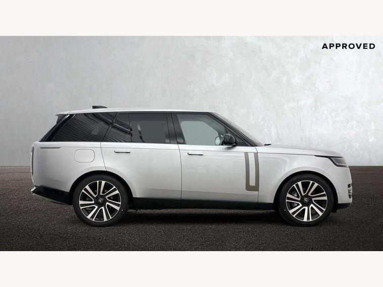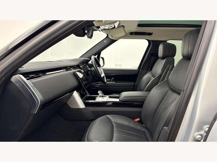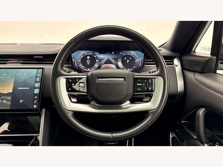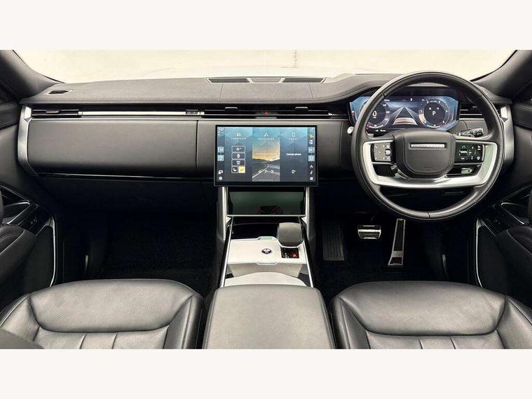 13.1" Touchscreen, 3D surround camera inc frwd traffic detection, vehicle clearance guidance, 3D view, clearsight ground view, manoevure light, 360 parking aid, wade sensing, All Terrain Info Centre, All wheel steering, Android Auto, Apple car play, Blind spot assist, Bluetooth connectivity streaming, Driver condition response, Eco mode, Electric power assisted steering (EPAS), Emergency call service, Front and rear parking aid, Head up Display, Interactive driver display, Lane keep assist, Rear collision monitor, Rear traffic monitor, Remote, Traffic sign recognition with adaptive speed limiter, Wi-Fi Enabled with data plan, Wireless device charging with phone signal booster, 8 speed automatic transmission, Active damper technology system, Adaptive dynamics, All terrain progress control, All Wheel Drive (AWD), Automatic access height, Terrain Response 2 Auto, Twin speed transfer box, Digital Audio Broadcast radio-DAB, Pivi pro including smart settings, Connected navigation pro, nuance speech, USB socket, Acoustic laminated windscreen, Animated directional indicators, Automatic headlights, Automatic levelling headlights, Centre high mounted stop light, ClearSight interior rear view mirror, Electric windows with one touch open/close and anti trap, Engine cover, Flush deployable exterior door handles, Front and rear recovery eyes, Front fog lights, Headlamp power wash, Heated rear window, Heated washer jets, LED tail lights, No badges, Power fold, auto-dimming, heated door mirrors with approach lights, Rain sensing windscreen wipers, Rear boot, Rear fog lights, Rear side wing doors, Side repeater indicators in mirror, Trailer stability assist, Winter wiper park position, 12V power sockets, 3 seat bench in 2nd row, Air quality sensor, Bright metal pedals, Cabin air purification pro, Cabin lighting, Customer configurable single point entry, Driver and passenger front seat armrests, Easy boot loading, Ebony Carpet, Front and rear cupholders, Front and rear grab handles, Front head restraints, Gearshift paddles, Heated steering wheel, Hook in load space, Loadspace light, Luggage tie down in loadspace, Multifunction steering wheel, Rear centre armrest, Rear head restraints, Rear ISOFIX, Single front passenger seat, Soft close doors, Twin blade sunvisors with Illuminated vanity mirrors, Upper and lower glovebox, Online pack with data plan - Range Rover, 3x3 point rear seat belts, Anti-lock braking system (ABS), Brake hold function, Cornering brake control (CBC), Customer configurable autolock, DSC - Dynamic Stability Control, Electronic brake force distribution, Electronic parking brake, Electronic traction control, Emergency brake assist, Emergency braking, Front airbags with passenger seat occupant detector, Front side airbags, Hill descent control, Hill launch assist, Illuminated seat belt buckles, Low traction launch, Occupant protection assist, Power operated child locks, Roll stability control, Tyre pressure monitoring system (TPMS), Immobiliser, Intrusion sensor and alarm, Keyless entry, Locking wheel nuts, Remote central locking, Noble chrome controls,