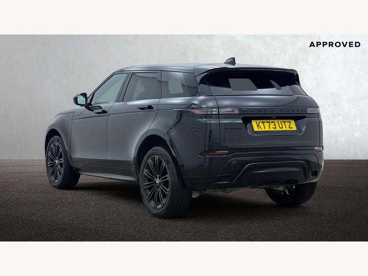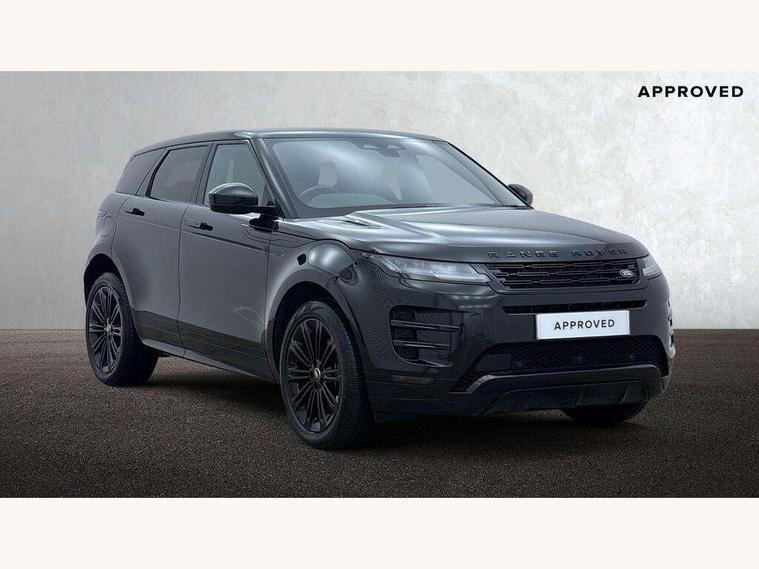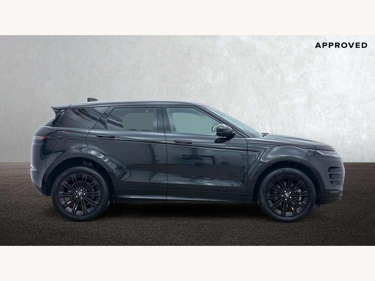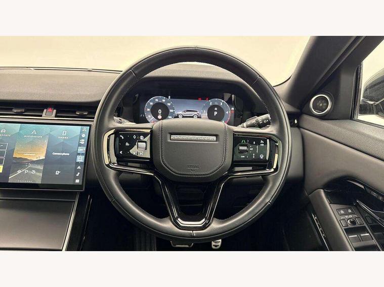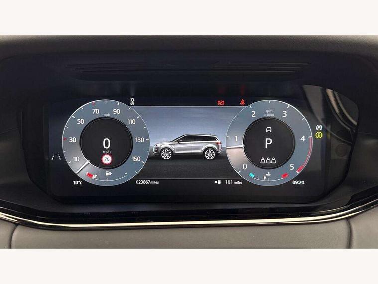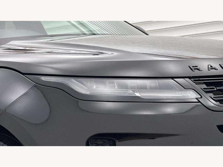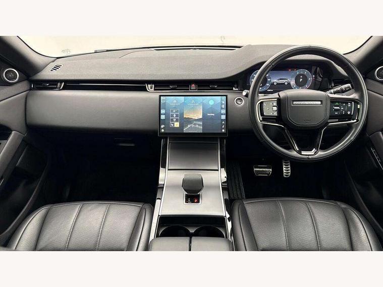 11.4" touch screen, Adaptive cruise control, Android Auto, Apple car play, Blind spot assist, Bluetooth connectivity, Brake pad wear indicator warning light, Driver condition monitor, eCall emergency system, Eco mode, Electronic power assisted steering (EPAS), Front and rear parking aid, InControl remote, Interactive driver display, Land Rover InControl apps, Lane keep assist, Pivi pro connected includes diamond pivi variant, smart settings, connected navigation pro, nuance speech licence, Powered tailgate/boot lid, Rear collision monitor, Rear traffic monitor, Traffic sign recognition with adaptive speed limiter, Voice control system, Wireless device charging, All terrain progress control, Diesel exhaust fluid (DEF) large tank, Efficient Driveline, Large fuel tank, Passive suspension, Terrain Response 2, Digital Audio Broadcast radio-DAB, Steering wheel mounted controls, Acoustic laminated windscreen, Auto headlights, Automatic headlight levelling, Electric windows with one touch open/close and anti trap, Flush deployable exterior door handles, Front and rear recovery eyes, Front fog lights, Heated rear window with timer, Heated washer jets, Heated windscreen, Pixel LED headlights with signature DRL and LED tail Lights, Power fold, auto-dimming, heated door mirrors with approach lights and auto dimming driver side, Rain sensing windscreen wipers, Rear animated directional indicators, Rear fog lights, Rear side wing doors, Rear wiper, Side repeater indicators in mirror, Tailgate spoiler, Third brake light, Winter wiper park position, 14 way driver memory electric front seats with 2 way manual headrests + 4 way lumbar support, bolsters, 40:20:40 split folding rear seats with centre headrest and armrest, Ambient interior lighting, Bright metal pedals, Carpet mats, Chrome tread plates with range rover branding Includes stainless steel loadspace scuff plate with etched graphic, Customer configurable single point entry, Electrically adjustable steering column with memory function and easy entry/exit, Front and rear cupholders, Heated steering wheel, Isofix system on outer rear seats, Overhead lighting console, Overhead stowage for sunglasses, Passive front head restraints, Rear air vents, Rear head restraints, Satin chrome gearshift paddles, Single passenger seat, Sunvisors with illuminated vanity mirrors, Twin sliding front centre armrest, Online pack with data plan - Evoque, Power socket pack 2 - Evoque, 3 rear 3 point seatbelts, Anti-lock braking system (ABS), Brake hold function, Customer configurable autolock, DSC - Dynamic Stability Control, Electronic brake force distribution, Electronic parking brake, Electronic traction control, Emergency braking, Front and rear seatbelt reminder, Hill descent control, Hill launch assist, Low traction launch, Occupant protection assist, Passenger seat occupant detector, Power operated child locks, Roll stability control, Six airbags - Driver and passenger airbags/driver knee airbag/front side airbag and curtain airbags, Torque vectoring brake, Tyre pressure monitoring system, Alarm, Immobiliser, Intrusion sensor, Keyless entry, Locking wheel nuts,