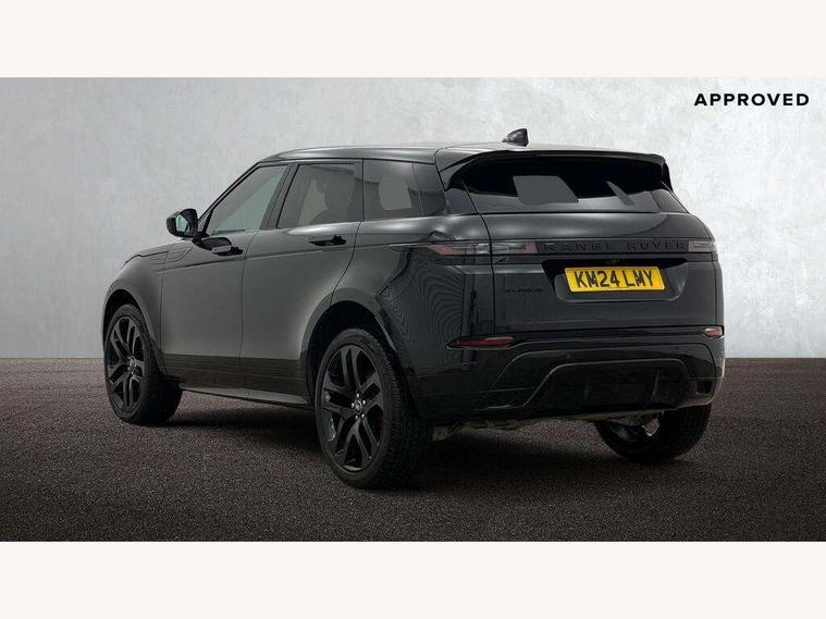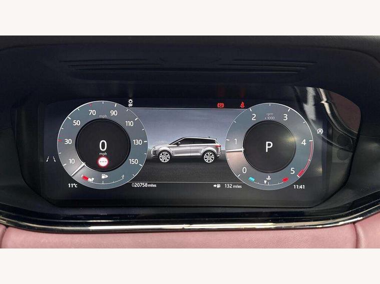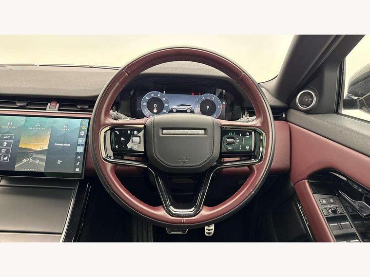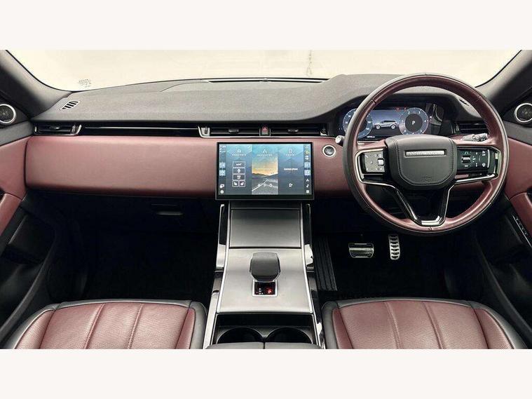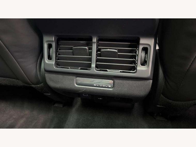 11.4" touch screen, Adaptive cruise control, Android Auto, Apple car play, Blind spot assist, Bluetooth connectivity, Brake pad wear indicator warning light, Driver condition monitor, eCall emergency system, Eco mode, Electronic power assisted steering (EPAS), Front and rear parking aid, InControl remote, Interactive driver display, Land Rover InControl apps, Lane keep assist, Pivi pro connected includes diamond pivi variant, smart settings, connected navigation pro, nuance speech licence, Powered tailgate/boot lid, Rear collision monitor, Rear traffic monitor, Traffic sign recognition with adaptive speed limiter, Voice control system, Wireless device charging, All terrain progress control, Diesel exhaust fluid (DEF) large tank, Efficient Driveline, Large fuel tank, Passive suspension, Terrain Response 2, Digital Audio Broadcast radio-DAB, Steering wheel mounted controls, Acoustic laminated windscreen, Auto headlights, Automatic headlight levelling, Electric windows with one touch open/close and anti trap, Flush deployable exterior door handles, Front and rear recovery eyes, Front fog lights, Heated rear window with timer, Heated washer jets, Heated windscreen, Pixel LED headlights with signature DRL and LED tail Lights, Power fold, auto-dimming, heated door mirrors with approach lights and auto dimming driver side, Rain sensing windscreen wipers, Rear animated directional indicators, Rear fog lights, Rear side wing doors, Rear wiper, Side repeater indicators in mirror, Tailgate spoiler, Third brake light, Winter wiper park position, 14 way driver memory electric front seats with 2 way manual headrests + 4 way lumbar support, bolsters, 40:20:40 split folding rear seats with centre headrest and armrest, Ambient interior lighting, Bright metal pedals, Carpet mats, Chrome tread plates with range rover branding Includes stainless steel loadspace scuff plate with etched graphic, Customer configurable single point entry, Electrically adjustable steering column with memory function and easy entry/exit, Front and rear cupholders, Heated steering wheel, Isofix system on outer rear seats, Overhead lighting console, Overhead stowage for sunglasses, Passive front head restraints, Rear air vents, Rear head restraints, Satin chrome gearshift paddles, Single passenger seat, Sunvisors with illuminated vanity mirrors, Twin sliding front centre armrest, Online pack with data plan - Evoque, Power socket pack 2 - Evoque, 3 rear 3 point seatbelts, Anti-lock braking system (ABS), Brake hold function, Customer configurable autolock, DSC - Dynamic Stability Control, Electronic brake force distribution, Electronic parking brake, Electronic traction control, Emergency braking, Front and rear seatbelt reminder, Hill descent control, Hill launch assist, Low traction launch, Occupant protection assist, Passenger seat occupant detector, Power operated child locks, Roll stability control, Six airbags - Driver and passenger airbags/driver knee airbag/front side airbag and curtain airbags, Torque vectoring brake, Tyre pressure monitoring system, Alarm, Immobiliser, Intrusion sensor, Keyless entry, Locking wheel nuts,