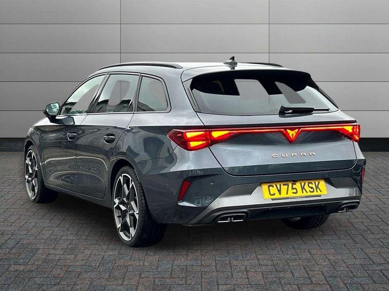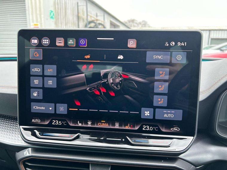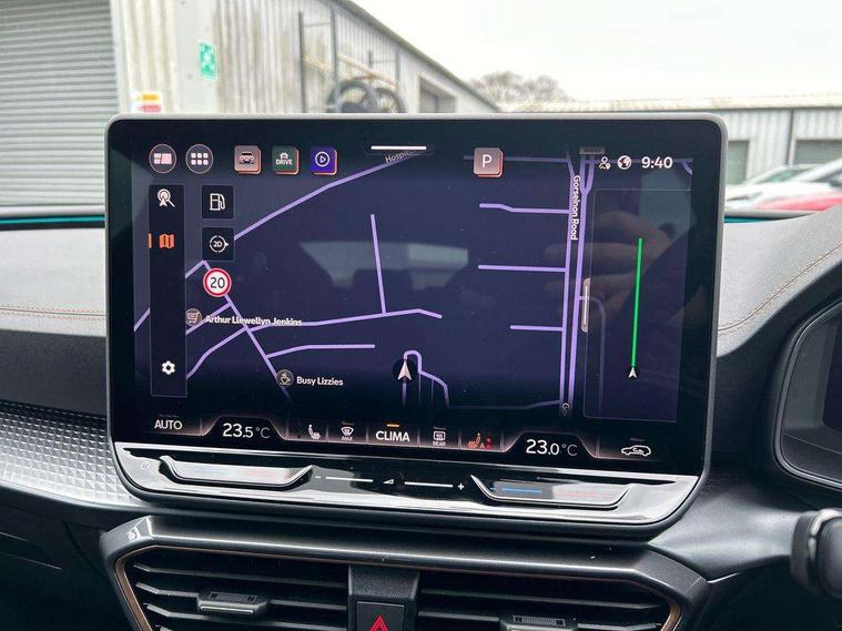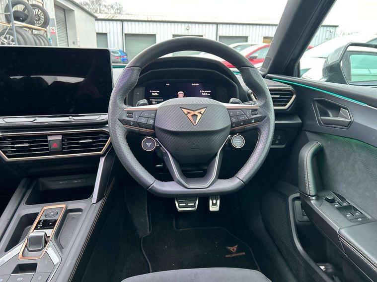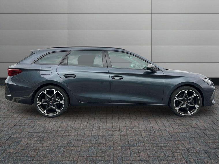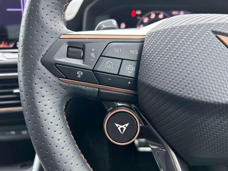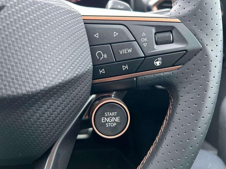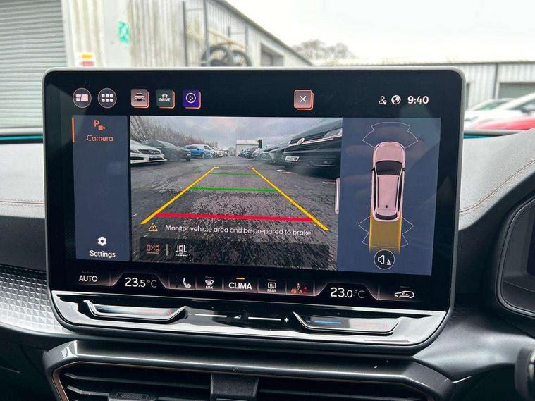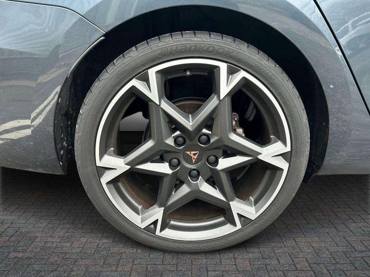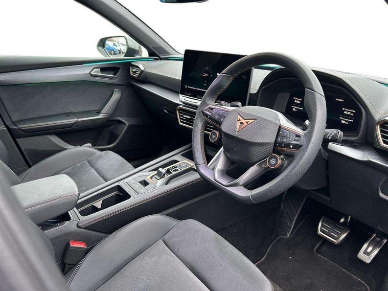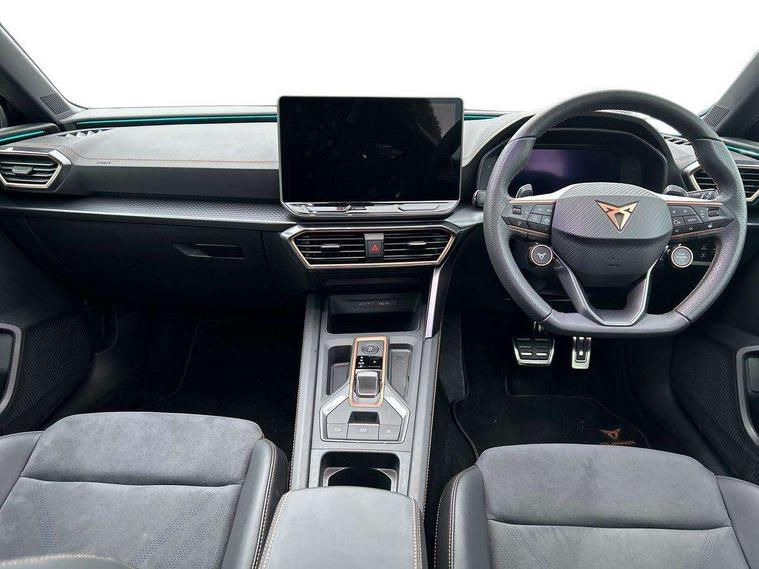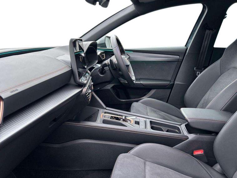 Adaptive cruise control with follow-to-stop and speed limiter, CUPRA drive profile selection with (Comfort/Sport/Individual), throttle response and gearshift mode, Digital cockpit, Dynamic road sign display, E-call, Front and rear parking sensors, Front assist with forward collision warning braking reaction to vehicles, pedestrians and cyclists, Full link smartphone integration with Mirror Link, wireless Apple CarPlay and wired Google Android Auto, Lane assist, Lockable tailgate, Rear view camera, RPM, trip computer, outside temp gauge, instrument light brightness, low fuel warning light, lights on reminder, gearshift indicator, Service interval indicator, Start/stop system with regenerative braking, Virtual pedal with electric tailgate, Wireless phone charger, Auxiliary input socket, Auto dimming rear view mirror, Body colour door handles, Body coloured bumpers, Cupra sports bumpers, Dark tinted rear windows, Electric front/rear windows, Electrically adjustable, heated and folding door mirrors, Gloss black roof rails, High beam assist, LED front fog lamps with cornering function, LED headlights with dynamic turn signals, tail lights, rear fog lights with rear coast to coast lighting, LED rear fog lamp, Rain sensing wipers, Rear side wing doors, Rear wash/wipe, Separate daytime running light with automatic headlight control and coming home feature, Third brake light, Welcome light with logo projector in door mirrors, 12v power supply in centre console, 3 seat bench in 2nd row, 5 headrests, 60/40 split rear bench seat with armrest, Ambient lighting (glovebox, footwell, ambient lighting multicoloured), Black headlining, Cupra sports pedals, CUPRA Supersports, heated steering wheel with satellite buttons, Dinamica cloth upholstery, Electrically adjustable driver seat and lumbar support with memory function + manually adjustable passenger seat, Four x USB Type C ports (2 in front and 2 in rear), Front and rear reading lights X 4, Front centre armrest, Heated front seats, Height/reach adjust steering wheel, Illuminated interior front door sills, Interior wraparound lighting, ISOFIX points in outer rear seats with top tether anchorage points, Single front passenger seat, Sliding boot cover, Storage pockets on rear of front seats, Sunvisors with illuminated mirror, Three zone climate control, Dynamic and comfort pack - Leon Cupra, Media system plus with 12.9" display + navigation pack - Leon Cupra, 3 point seatbelts on all rear seats, ABS, Brake control system - ESC and brake booster, Child proof door locks, Cupra black brake calipers, Driver and front passenger airbags with front passenger airbag de-activation, front side and curtain airbags, Electronic parking brake, Hill hold control, Rear disc brakes, Seat belt reminder for front and rear seats, Tiredness recognition system, Tyre pressure monitoring system, Anti theft alarm system with interior monitoring in cab, backup horn and towing protection, KESSY Advanced - Keyless start, keyless entry, Locking wheel bolts, Chrome and copper interior detailing, 19" Polar machined sport black and silver alloy wheel with 91Y tyres, Tool kit,