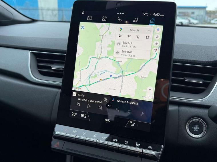 10.25" digital driver display, 10.4" OpenR link touchscreen with with built in Google Automotive Services and navigation, 2 front USB-C ports, 2 rear USB-C ports, Cruise control + speed limiter, Driver attention alert system, Driver drowsiness alert system, e-Call automatic emergency assist, Emergency lane keep assist including solid line, oncoming traffic and road edge detection, Engine start button, Front and rear parking distance sensors, Front safe stopping distance warning, Gear change indicator, Intelligent speed assistance include traffic sign recognition with speed alert, Lane departure warning system, Multisense with 4 driving modes and upto 48 ambient lighting colours, Navigation system with built in google maps, Outside temperature display, Performance mode selector - multisense 4 driving modes (sport, comfort, perso and eco), Power assisted steering, QR code fireman access for technical information, Rear view camera, Service interval indicator, Side parking sensors, Trip computer, Voice control for navigation system with built in google assistant, Wifi smartphone integration compatible with Apple CarPlay and Android Auto, Wireless phone charger, Speed limiter 111mph, 6 speakers inc 2 boomer + 2 tweeter + 2 bicone, DAB radio with Bluetooth, 2 reversing lights, Auto dimming rear view mirror with light and rain sensor - black, Automatic front wipers with rain sensors, Automatic headlights, Automatic high/low beam, Body colour door handles, Body colour F1 blade, Body coloured bumpers, Body coloured door mirrors, Chrome around front air deflectors, on front wing deco element and window lining, Dark tinted glass in rear windows and tailgate, Drivers one touch window with anti-pinch feature, Electrically folding door mirrors, Flush and longitudinal roof bars, Front and rear electric windows, Full LED front and signature rear lights, Heated door mirrors, Heated rear windscreen, LED daytime running lights, LED high level brake lights, LED rear fog lights, LED turn indicators on door mirrors, Radiator grille with 3D graphic black upper part with body tone graphics, Rear side wing doors, Rear wiper, Shark fin antenna, 12v power outlet - front, 2 front roof LED lights and central rear roof light with 3 reading LED lights, 3 bench rear seats in 2nd row, Automatic air conditioning with one touch demist function and air quality regulator, Flying console with central storage, sliding armrest and 2 rear air vents, Front head restraints, Glovebox, Heating system with pollen filter, Height adjustable driver's seat, Height adjustable passenger seat, Height/reach adjust steering wheel, ISOFIX child seat fixing points on rear outermost seats, Marled fabric upholstery, Modular boot floor, Multifunctional steering wheel, Rear head restraints, Rear seats - 1/3:2/3 foldable sliding bench, Single front passenger seat, Sunvisor with mirror and light, Synthetic leather steering wheel, 3 rear seatbelts, ABS+EBA, Active emergency braking system - Urban, pedestrian/cyclist with junction function, Collision avoidance braking, Distance warning alert, Driver and front passenger airbags, Driver and front passenger and 3 rear passengers seatbelt reminder, Driver height adjustable seat belt, Electric parking brake with auto hold function, Electronic stability control, Front dash warning indicator in case of heavy braking, Front driver and passenger side airbag deactivation, Hill start assist, Manual passenger airbag deactivation function, My safety shield - ability to personalise ADAS features at press of a button, Outer rear safety seat belts, Rear door and window child locking function for rear door, Side airbags, Tyre pressure warning light, Alarm, Hands free keycard with Keyless access and start, Immobiliser, Locking fuel cap, Locking wheel nuts, RAID (Renault Anti-Intruder Device) automatic door locking, Remote central locking, Superlocking, Black soft touch dashboard, Granite grey decorative upper strip, 18" Black hole alloy wheels,