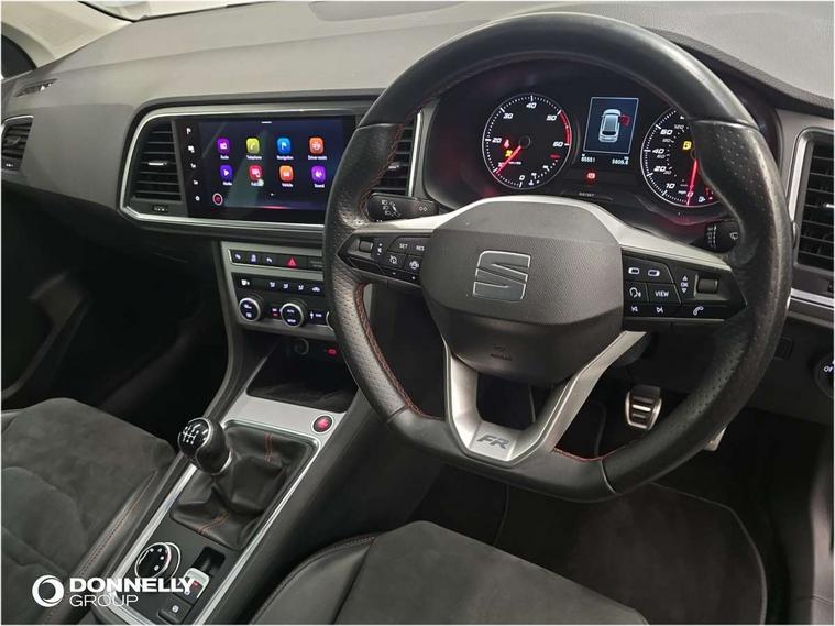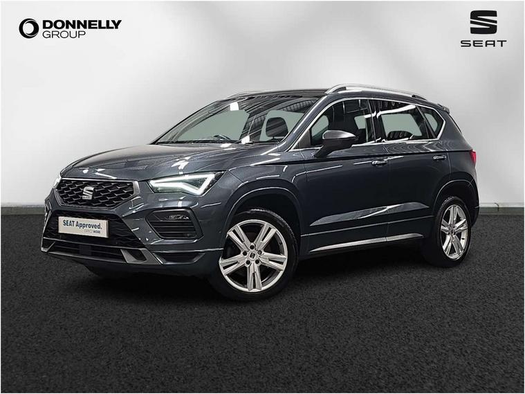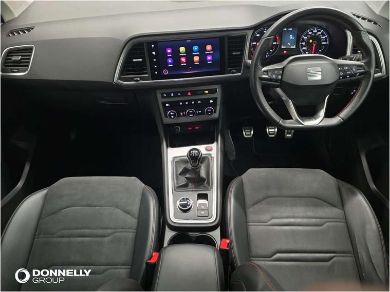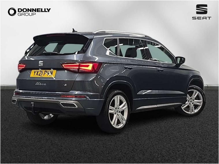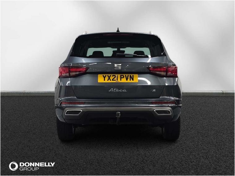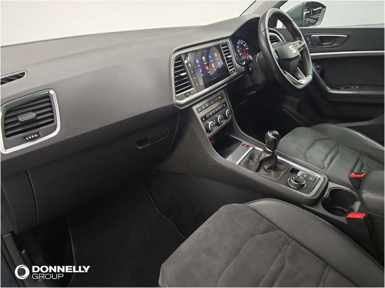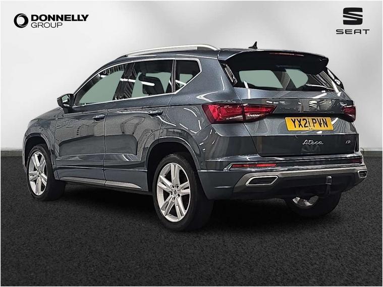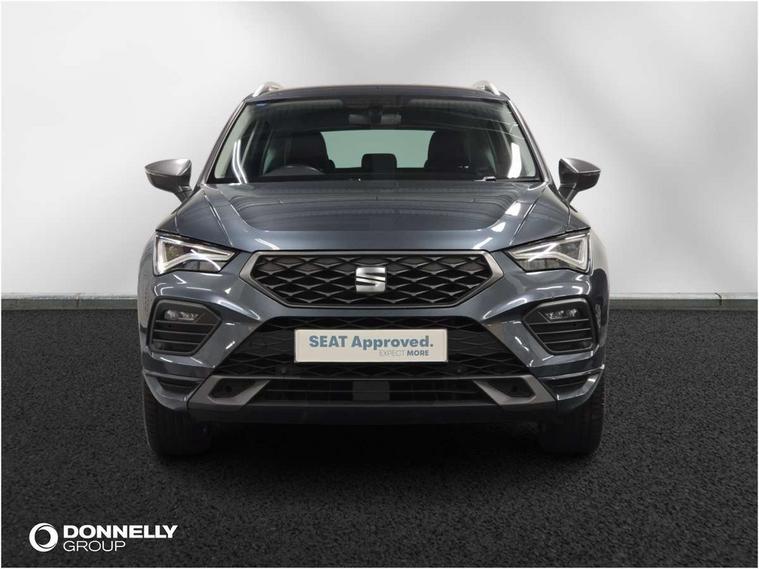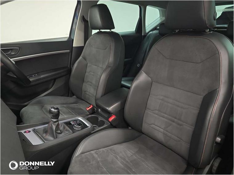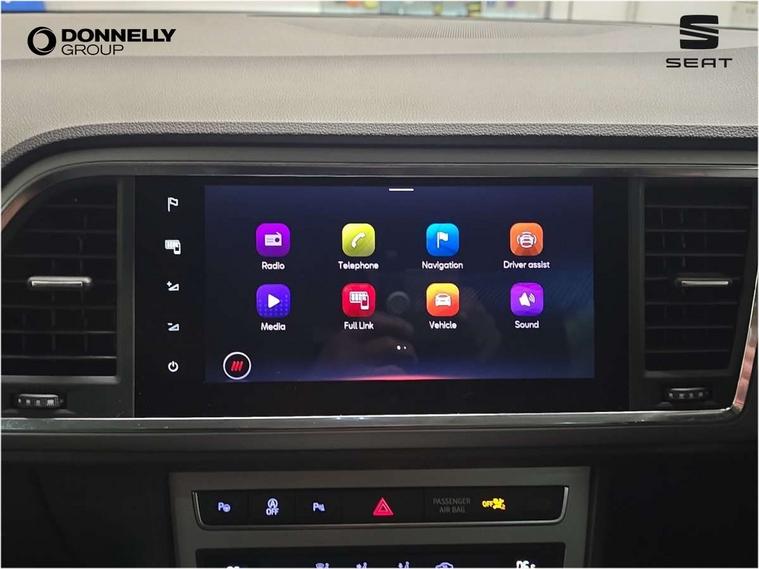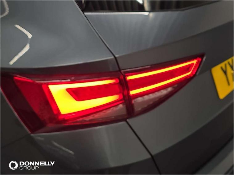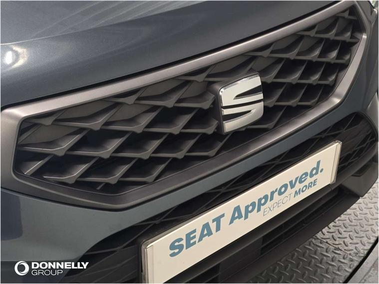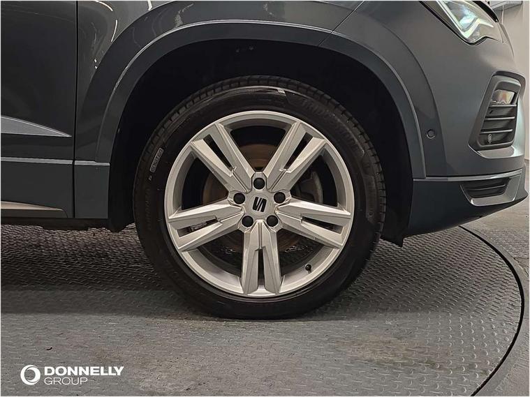 Cruise control system with speed limiter, Outside temperature gauge, Progressive power assisted steering, SEAT drive profile with driving experience button - Normal, Sport, Eco and Individual mode, steering and throttle response, Self parking functionality (includes front and rear parking sensors), Trip computer, Wireless full link smartphone integration, Wireless phone charger, Steering wheel mounted audio/phone controls, Body colour bumpers, Body coloured wheel arch surrounds, Chrome roof rails, Chrome side window trim, Cosmo grey front grille frame, Dark tinted rear windows, Daytime running lights, Door mirrors with welcome light silhouette, Dynamic headlight range control with self adjusting whilst driving, Electric adjustable/heated/folding door mirrors, Front and rear electric windows, Full LED headlamps with lens and LED front fog lamps with cornering function, Illuminated aluminium front door sill, LED rear tail lights with dynamic indicators, Rear fog lights, Rear spoiler, Rear wash/wipe, Simulated exhaust pipes in chrome frame, 12V socket in front, 60/40 split folding rear seat, Aluminium pedals, Dual zone climate control, Front and rear head restraints, Front centre armrest, Front seat back storage pockets, Height adjustable driver and passenger seat with lumbar adjustment, ISOFIX points in outer rear seats with top tether anchorage points, Leather steering wheel and gear knob, Microsuede upholstery with front sports seats, Multicoloured ambient lighting with LED interior illumination, Rear armrest and easy back seat release mechanism from boot, Storage compartment in roof console for sunglass, Storage compartment under driver's seat, Convenience pack - Ateca, Interior lighting pack - Ateca, Navigation system pack with DAB - Ateca, 3x3 point rear seatbelts, ABS, Traction control system (TCS), Electronic stability control (ESC) and Electronic differential lock system (XDS), Airbags - Driver and front passenger airbag with deactivation, front side, two curtain and driver's knee airbags, Electric parking brake with auto hold function, Front and rear seatbelt reminder, Front assist with autonomous emergency braking, Hill hold control, Tiredness recognition system, Traction control, Tyre pressure monitoring system, Alarm, Keyless entry, Locking wheel bolts, Chrome interior detailing, 18" Brillaint silver alloy wheels,