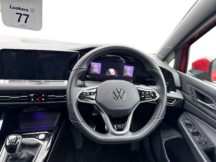 Adaptive cruise control (ACC) with speed limiter and front assist (reacting to vehicles pedestrians and cyclists), Car2X communication, Digital cockpit pro - 10.25" high resolution TFT dash display screen with customizable menus and information, Driver alert system, Dynamic road sign display, eCall - Emergency call service for SOS calls to emergency response, Lane assist, Mobile phone interface with wireless inductive charging function, Multifunction camera for distance control, PAS, Speedo, rev counter, electronic odometer, trip, service interval display, exterior temperature and fuel gauge, Start/Stop function, USB-C ports in the front and rear centre console with increased charging performance, Warning buzzer and light for front seatbelts unfastened, Wireless app connect, Petrol Particulate Filter, XDS electronic differential lock for improved traction and handling, Premium USB cable in choice of either Apple or Android smartphone compatibility, Ambient lighting, exterior illuminated styling elements at the sides, Auto dimming rear view mirror, Automatic headlamp activation with Coming home and Leaving home feature, Automatic headlights, Body colour door handles, Body colour door mirrors with integrated indicators, Body colour rear roof spoiler, Electrically heated and adjustable door mirrors with memory feature, Front and rear electric windows, Heat insulating glass windscreen, Heated rear windscreen, High level 3rd brake light, Highway light, LED License plate illumination, R Line body coloured bumpers, Rain sensor, Rear fog light on one side and reversing lights on both sides, Rear lights incorporating LED technology, Rear side wing doors, Rear tinted glass 65% light absorbing from B pillar backwards, Rear windscreen washer and wiper with interval delay, Welcome light, 12V socket in front centre console, 12V socket in luggage compartment, 3 rear head restraints, 3 seat bench in 2nd row, Ambient lighting - Customisable 30 colour ambient lighting, Black roof lining, Brushed stainless steel pedals, Chrome plated surround to electric mirror button, window switch and air vent surrounds, Drivers and front passengers sun visors with vanity mirrors, Front + rear carpet mats, Front centre armrest with storage compartment, Front cupholders x 2, Front passenger seat, Front reading lights x 2 incorporating LED technology, Front seat lumbar support adjuster, Front sports seats, Glovebox, Height adjustable front seats, Height and reach adjustable steering wheel, Isofix child seat preparation for 2 rear child seats and front passenger seat, Luggage compartment lighting, R Line door and side trim panel, R Line front seats integrated head restraints, R-Line leather wrapped multi function sports heated steering wheel, Removable luggage compartment cover, Sardegna cloth upholstery with front and outer rear seats Art Velour inner sides of bolsters, Split folding backrest with centre armrest and unsplit rear seat bench, Titanium black instrument panel, Woven fabric storage compartments in front and rear doors, 3 point height adj front seatbelts + pretensioners, 3 rear three point seatbelts, ABS, Child locks on rear doors, Driver and front passenger airbag with front passenger airbag deactivation, Drivers and front passengers safety optimised head restraints, Electronic parking brake with auto hold, ESC (Electronic Stability Control), Extended pedestrian protection measures, Front and rear passengers curtain airbag system including front side airbags, Front centre airbag, Front disc brakes, Front side airbags with curtain airbags, Rear disc brakes, Two tone horn, Tyre pressure monitoring system, Alarm with interior protection and deactivation via infotainment system, Electronic engine immobiliser, Carbon grey decorative inserts in dash and front door trim panels, High gloss black centre console, Space and weight saver spare wheel,