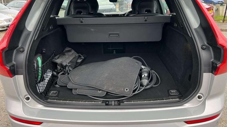 12.3" Progressive Driver Display, 360 degree surround view parking camera with side proximity sensors, 9" centre console touch screen, Adjustable steering wheel force, Apple carplay (wired), Bluetooth handsfree system, Drive mode settings, Driver alert control with lane keeping aid, Driver assistance (pilot assist and adaptive cruise control), Driver awareness - Blind spot information system with steer assist, cross traffic alert with autobrake and rear collision warning and mitigation, Emergency services call system, Front and rear park assist, Google Automotive Services, Oncoming Lane Mitigation, PAS, Service interval indicator, Speed limiter, Speed sensitive steering, Trip computer, Volvo on call with App, Wireless/Inductive Mobile Phone Charging, 3.7 kW monophase on board charger, 7m 10amp Charge Cable with 3 Pin Plug and 7m 1-Phase 16amp Type 2 / Mode 3 Charge Cable, 8 speed automatic transmission with start/stop + manual change functions, Dynamic chassis, Electric rear axle drive, Recharging port located in nearside front wing, DAB Digital radio, Low speed exterior sound speaker, Premium Sound by Harman Kardon, dirac unison, dolby pro logic II surround sound, 13 speakers/600W output and fresh air subwoofer, Steering wheel remote infotainment controls, Adaptive brake lights with high level LED brake lights, Auto dimming interior + exterior mirrors, Automatic headlight levelling system, Automatic LED Headlights + Active high beam incorporating daytime running lights, Electric adjustable/heated/auto power folding door mirrors, Electric front+rear windows, Heated front windscreen, High gloss black door mirrors and window surround, High gloss black front and rear bumper decoratives, High gloss black mesh front grille with high gloss black surround, Home safe and approach lighting, Integrated roof rails in high gloss black, Power glass tilt and slide panoramic sunroof with sun curtain, Puddle lights, Rain sensor with automatic windscreen wiper activation, Rear side wing doors, Rear wiper, Roof antenna, Roof spoiler, Tinted windscreen, Visible VIN plate, 12V socket in front tunnel console and luggage compartment, 2 zone electronic climate control with Clean zone air quality system and pollen filter, 3 seat bench in 2nd row, A-pillar parking ticket holder, Air purifier particulate matter (PM) 2.5 filter, B Pillar ventilation, Bright metal luggage threshold, Centre console cupholders and storage, Charcoal floor mats, Front and rear courtesy lights, Front and rear door pocket illumination, Front cupholder illumination, Front footwell illumination, Front reading lights, Front seat cushion extensions, Glovebox compartment with illumination, Head restraints for all seats, Heated front seats, Heated steering wheel, Height/reach adjustable steering column, Illuminated luggage compartment, Illuminated vanity mirrors + ticket holder, ISOFIX attachment on outer rear seats, Load cover, Load protection net, Multi directional lumbar support, Power driver seat with memory + exterior mirrors memory, Power height adjustable passenger seat, Rear armrest with cupholder, Rear footwell and front and rear side step illumination, Rear seat concealed storage, Recharge aluminium tread plates, Single front passenger seat, Tailgate illumination and ambient door lighting, Underfloor stowage compartment, Versatile split folding rear seat - 60/40, 5 three point seatbelts, City safety with steering support with Pedestrian + cyclist + front collision warning with full auto brake and rear auto brake, Drivers knee airbag, Dual stage driver/passenger airbags, Electronic parking brake with auto hold, First aid kit, Front seats SIPS airbags, Hill descent control - Off-road drive mode, Hill start assist, IC (Inflatable Curtains) - Full Length, Passenger airbag cut-off device, Power child locks on rear doors, Road sign information display, Run off Road Mitigation, Run off Road Protection, Seatbelt reminder and pretensioners, SIPS (Side Impact Protection System), Slippery road and hazard light alert, Stability and Traction Control with Spin control, Engine Drag Control and Corner Traction Control, Tyre pressure monitoring system, Vehicle deceleration control with Anti-lock Brake System, Electronic Brake Distribution and Emergency Brake Assist, Warning triangle, WHIPS whiplash protection system - front, Anti-theft alarm including immobiliser/volume sensor + level sensor, Care key with user defined top speed, Key integrated remote control central locking + fuel flap with deadlocking system and auto open/close power windows, Keyless Drive (includes Keyless Entry and Keyless Start) with Handsfree Tailgate Opening/Closing, Locking wheel nuts, Private locking for tailgate, Tyre sealant kit + 12v compressor,