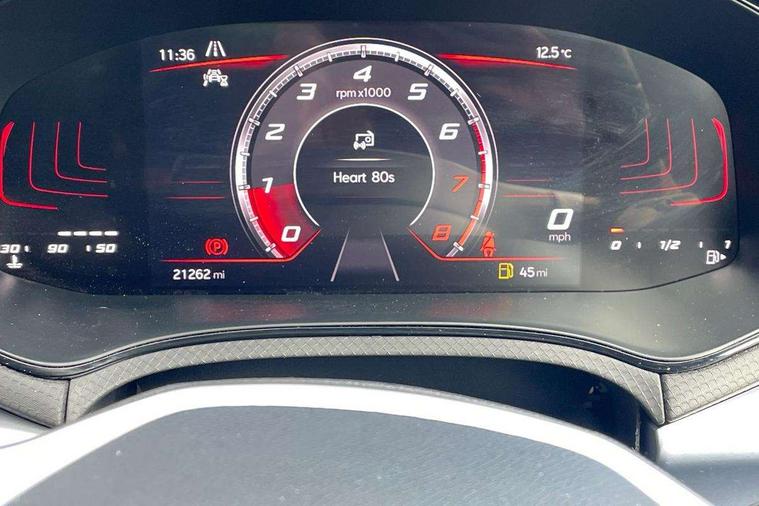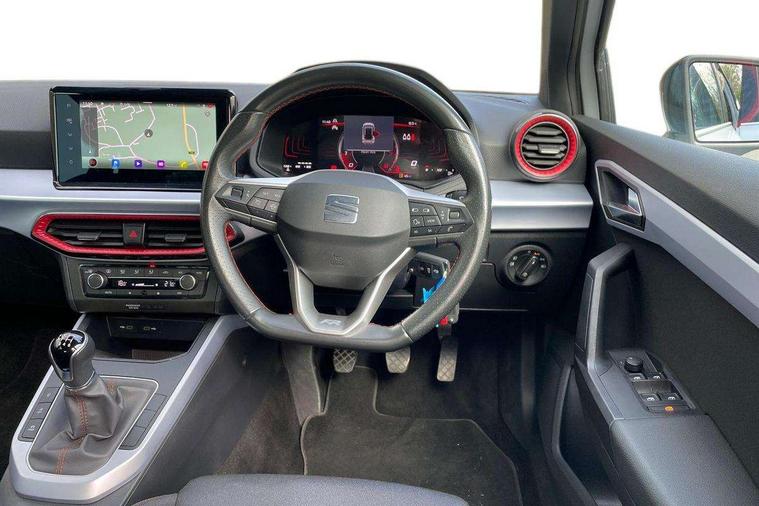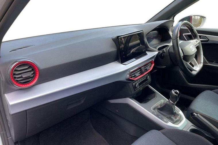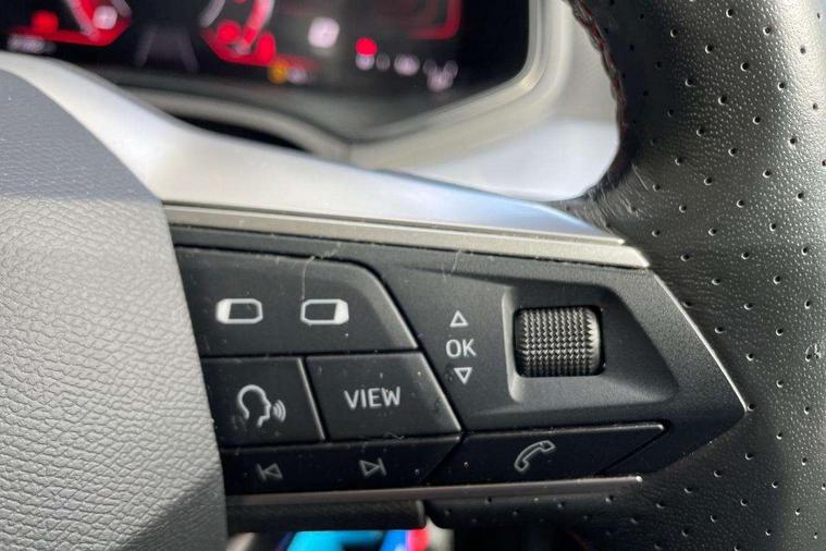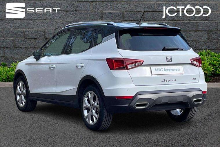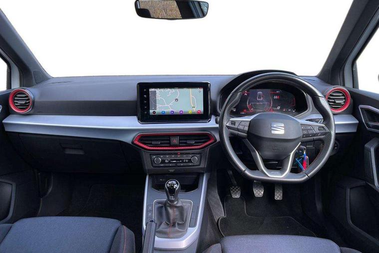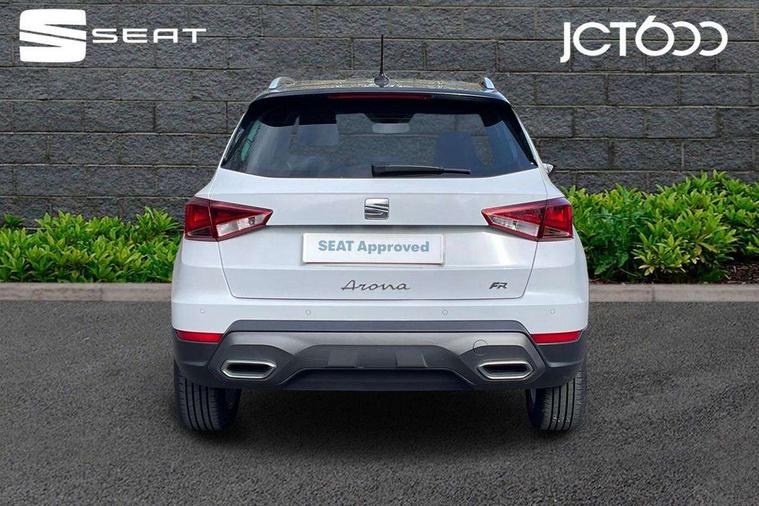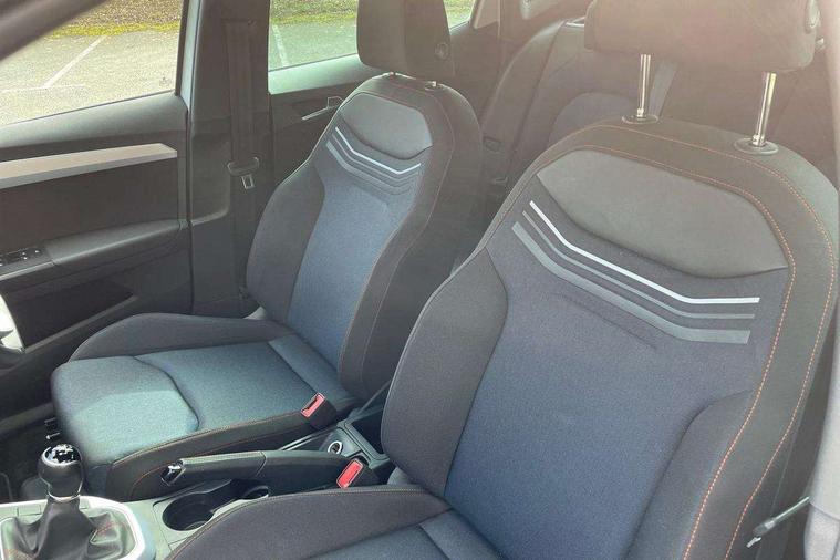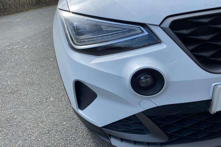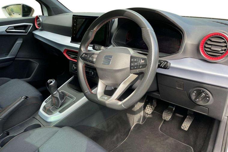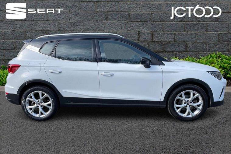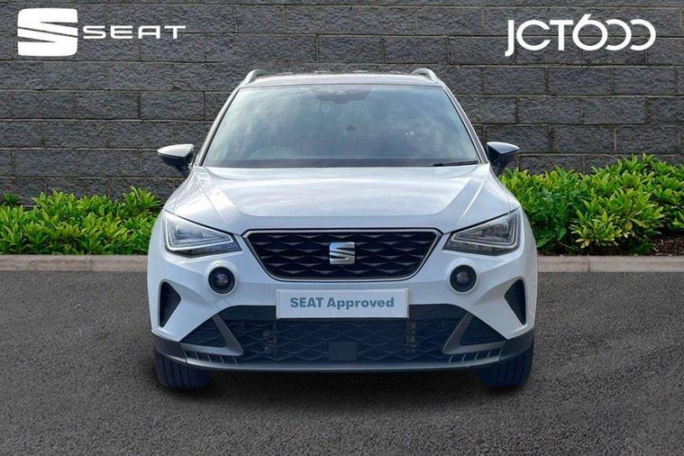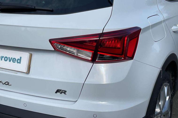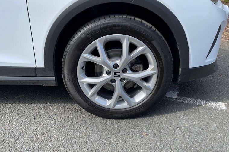 'Lights On' Reminder warning buzzer, 8" Digital cockpit, Digital clock, E-call, Electric speed sensitive power steering, Full Link Smartphone Integration with Mirror Link, Apple Car Play, Google Android Auto with USB Type C cable for Apple and Android compatibility, Lane keeping system, Low fuel warning light, Outside temperature display, Rear parking sensor, RPM counter, Seat connect with safety, service, remote and online, SEAT Drive profile - Four different models normal-sport-eco-individual, steering response, throttle response, Trip computer, Wireless phone charger, 9.2" colour touchscreen with navigation system, voice control and USB port (type c), Bluetooth interface for hands free and audio streaming, DAB digital radio and AM/FM radio, Steering wheel mounted audio controls, Anti theft roof antenna, Auto dimming interior rear view mirror, Automatic activation of hazard warning lights, Body coloured bumpers, Body coloured door handle inserts, Chrome roof rails and window surrounds, Dark tinted rear windows, Electric front/rear windows, Electrically adjustable, heated and folding door mirrors, Front fog lights with cornering function and rear fog light, FULL LED automatic headlights with dynamic headlight range control, coming and leaving home, LED daytime running lights, LED rear tail lights and licence plate lights, Protective side mouldings, Rain sensing wipers, Rear side wing doors, Rear spoiler, Rear window wash/wipe, Roof colour door mirrors, Third brake light, Twin exhaust pipe styling hidden exhaust pipe, Visible VIN plate, Windshield wiper with intermittent control and potentiometer, 2 cupholders, 3 seat bench in 2nd row, 60/40 split folding rear seat, Aircare filter, Black interior roof, Cloth upholstery, Double boot floor, Driver sunvisor with covered mirror + card holder, Dual zone climate control, Front courtesy light with 2x front and 2x rear reading lights, Front sport seats, Gear shift indicator, Height adjustable front seats, Height/reach adjustable steering column, Illuminated boot, Instrument lighting with brightness control, Interior ambient lighting, Interior light in footwell, central console and door panel, ISOFIX points in outer rear seats with top tether anchorage points, Passenger sunvisor with vanity mirror, Perforated flat bottomed leather steering wheel/gear knob/handbrake with red stitching and FR logo, Single front passenger seat, Two front and three rear height adjustable headrests, Interior chrome pack - Arona, 3 point seatbelts on all rear seats, ABS, Active front headrests, Child locks on rear doors, Driver and front passenger airbags with front passenger airbag de activation, front side and curtain airbags, Electronic stability control, Emergency Brake Assist (EBA) and front assist, Front and rear seatbelt reminder, Hill hold control, Multi-Collision braking, Tiredness recognition system, Traction control, Tyre pressure monitoring system, Alarm with back-up horn, Electronic engine immobiliser, Locking wheel bolts, Remote central locking + deadlocks, Tow away protection, Titan black dashboard, 17" Dynamic alloy wheels,
